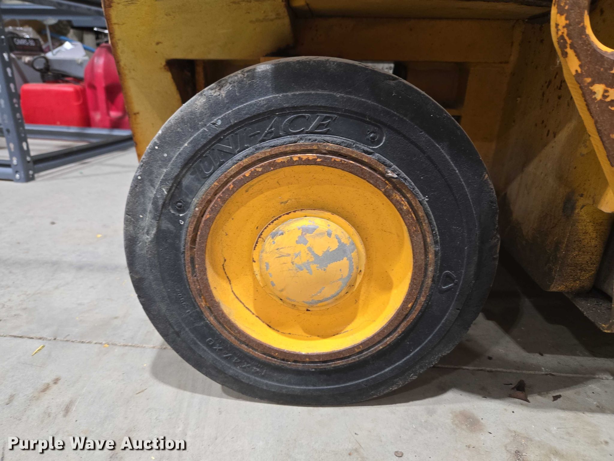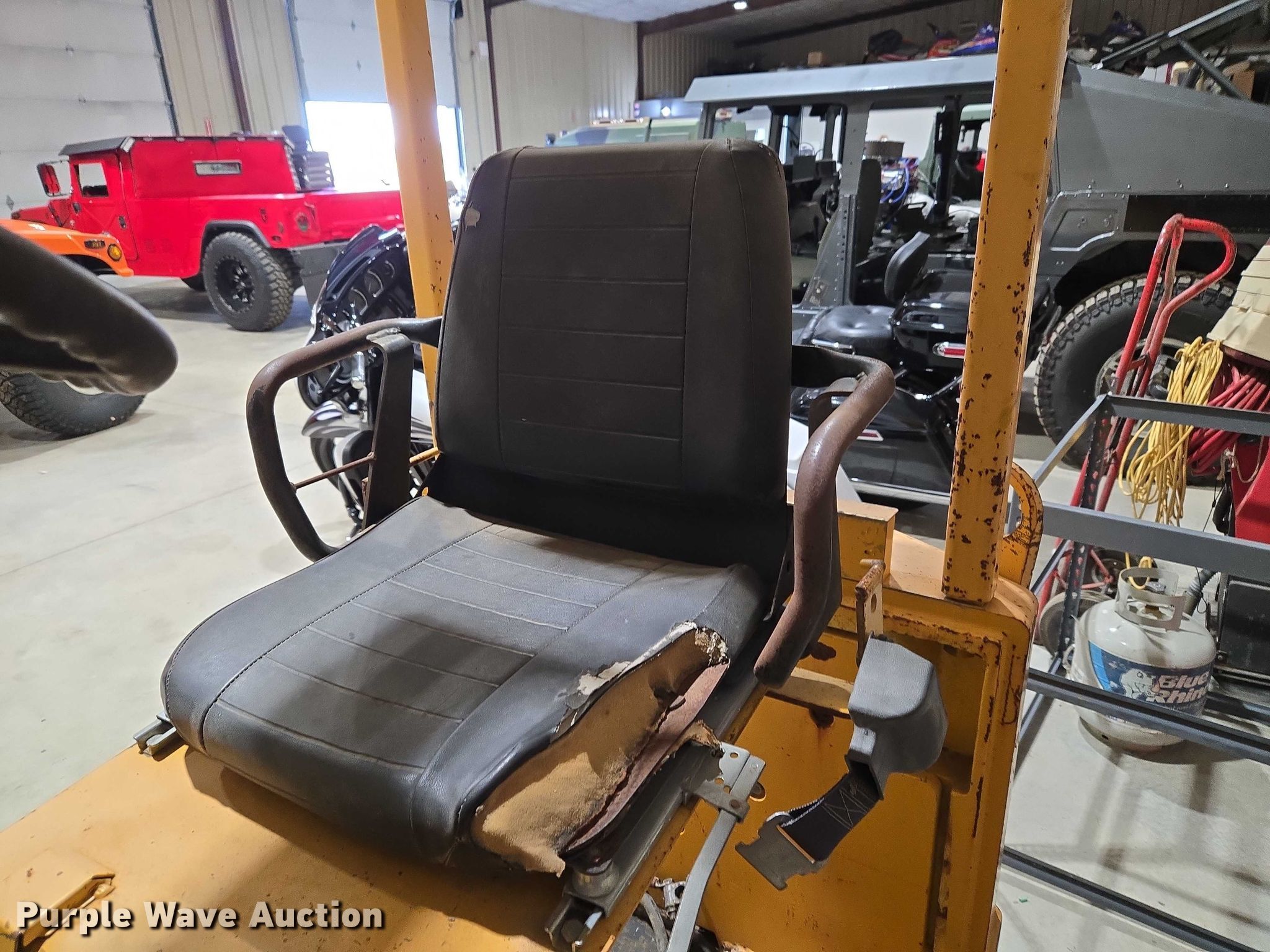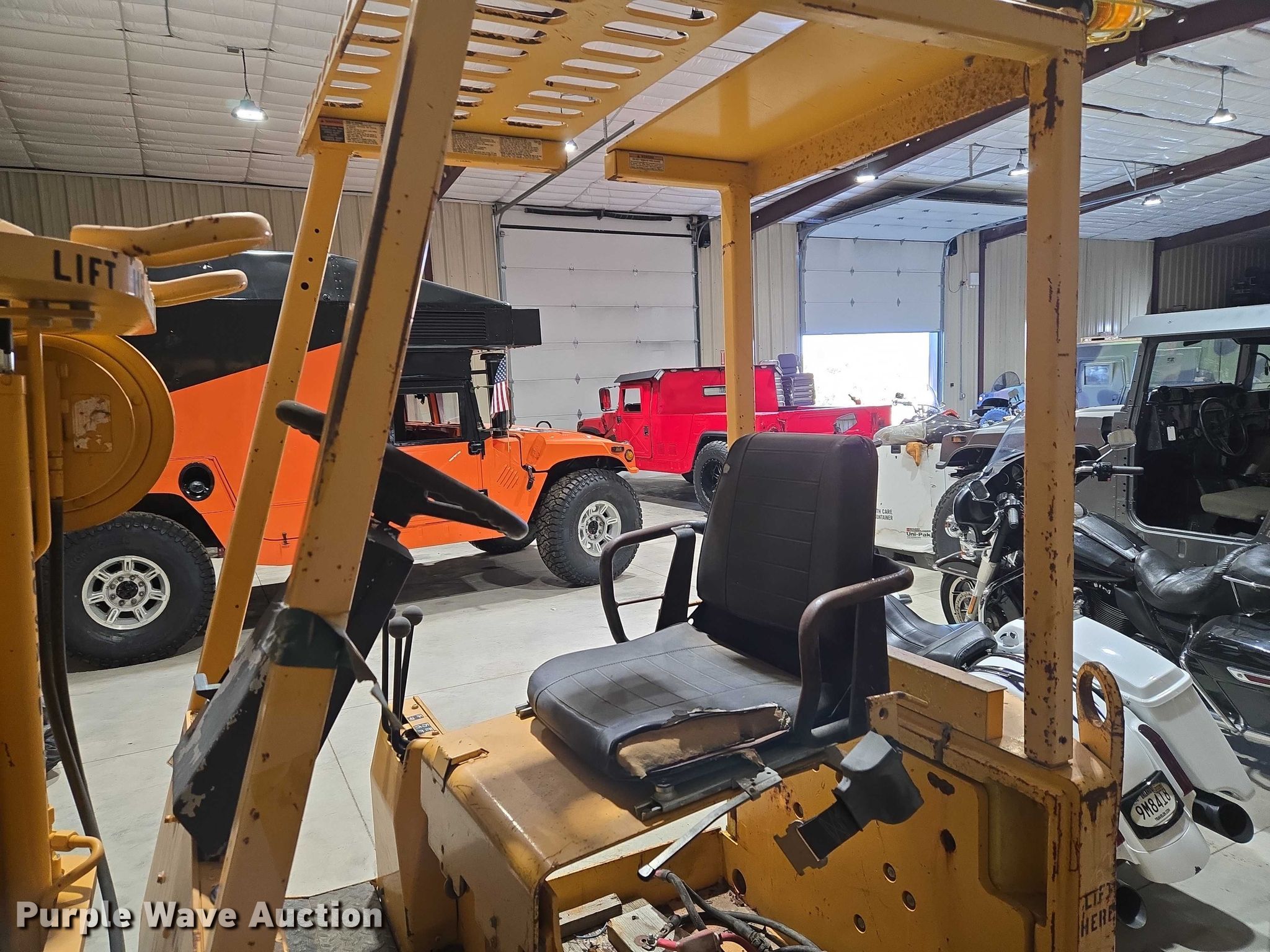 2016 Hyster E25XL-MIL forklift. Hours: 5,326 on meter, Serial: C114G06490P. Transmission Hydrostatic. Operators station OROPS, Canopy. Features Maximum lift capacity: 2,000 lbs, Collapsed mast height: 68", Mast stages: 2, Side shift, Mast tilt, Fork length: 35". Tires Front: 18/6/12.125, Rear: 14/4.25/8, Solid. Notes Batteries missing, Unknown operating condition. Sundance Equipment & Truck Sales. Catoosa, OK 74015