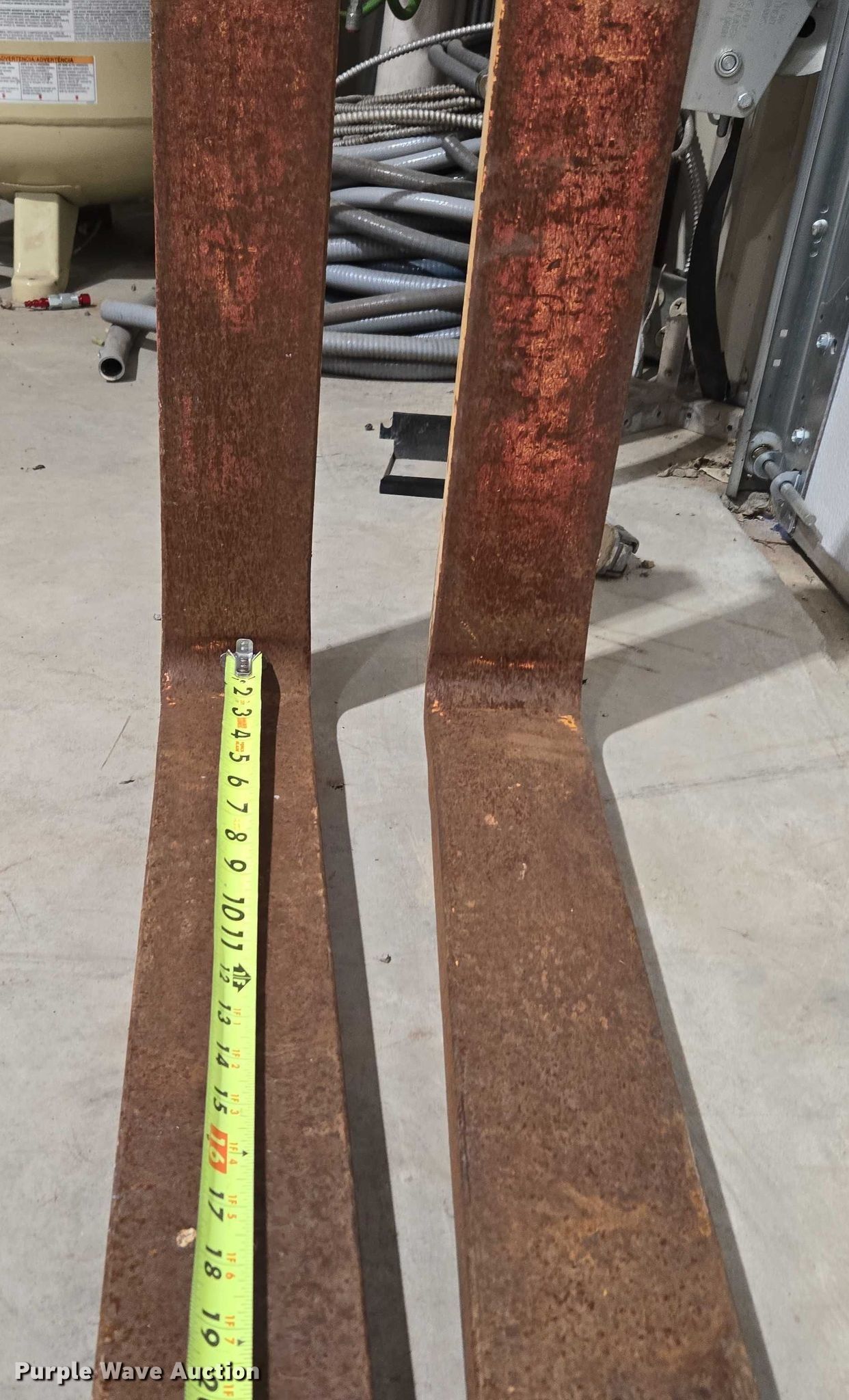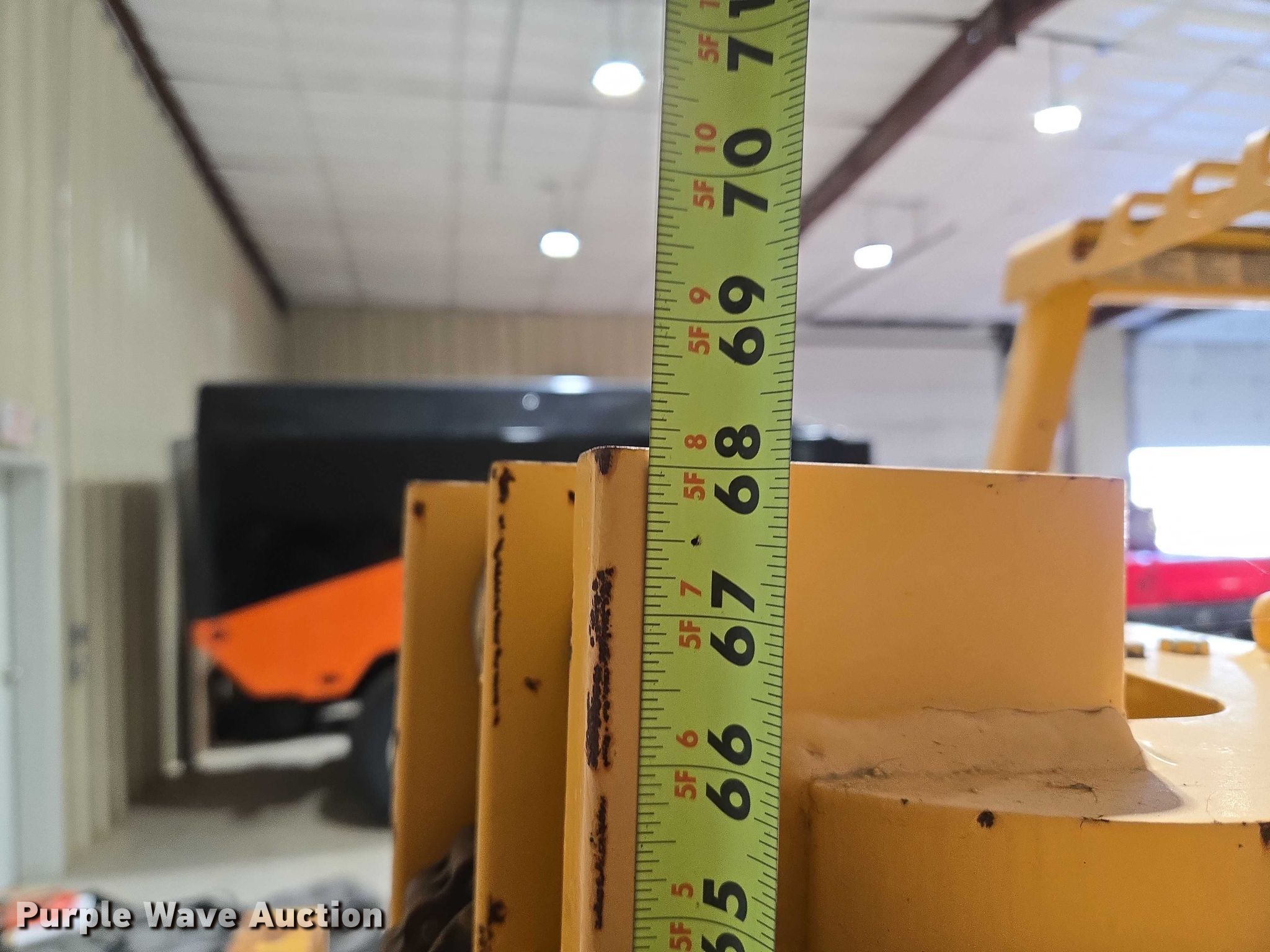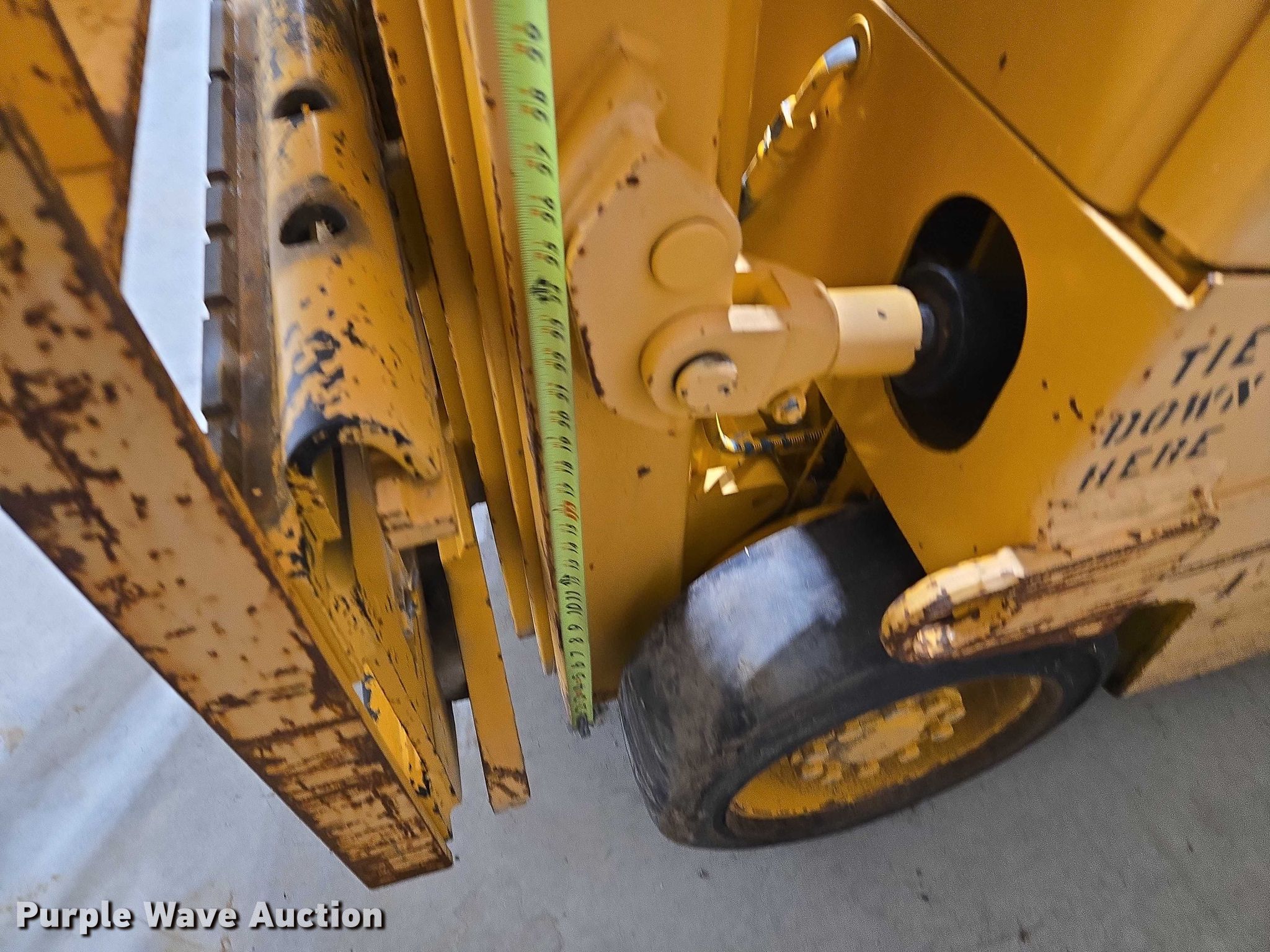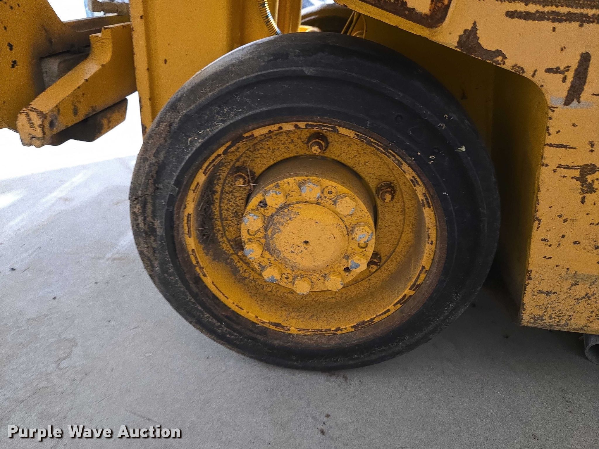 2016 Hyster E25XL-MIL forklift. Hours: 5,326 on meter, Serial: C114G06490P. Transmission Hydrostatic. Operators station OROPS, Canopy. Features Maximum lift capacity: 2,000 lbs, Collapsed mast height: 68", Mast stages: 2, Side shift, Mast tilt, Fork length: 35". Tires Front: 18/6/12.125, Rear: 14/4.25/8, Solid. Notes Batteries missing, Unknown operating condition. Sundance Equipment & Truck Sales. Catoosa, OK 74015