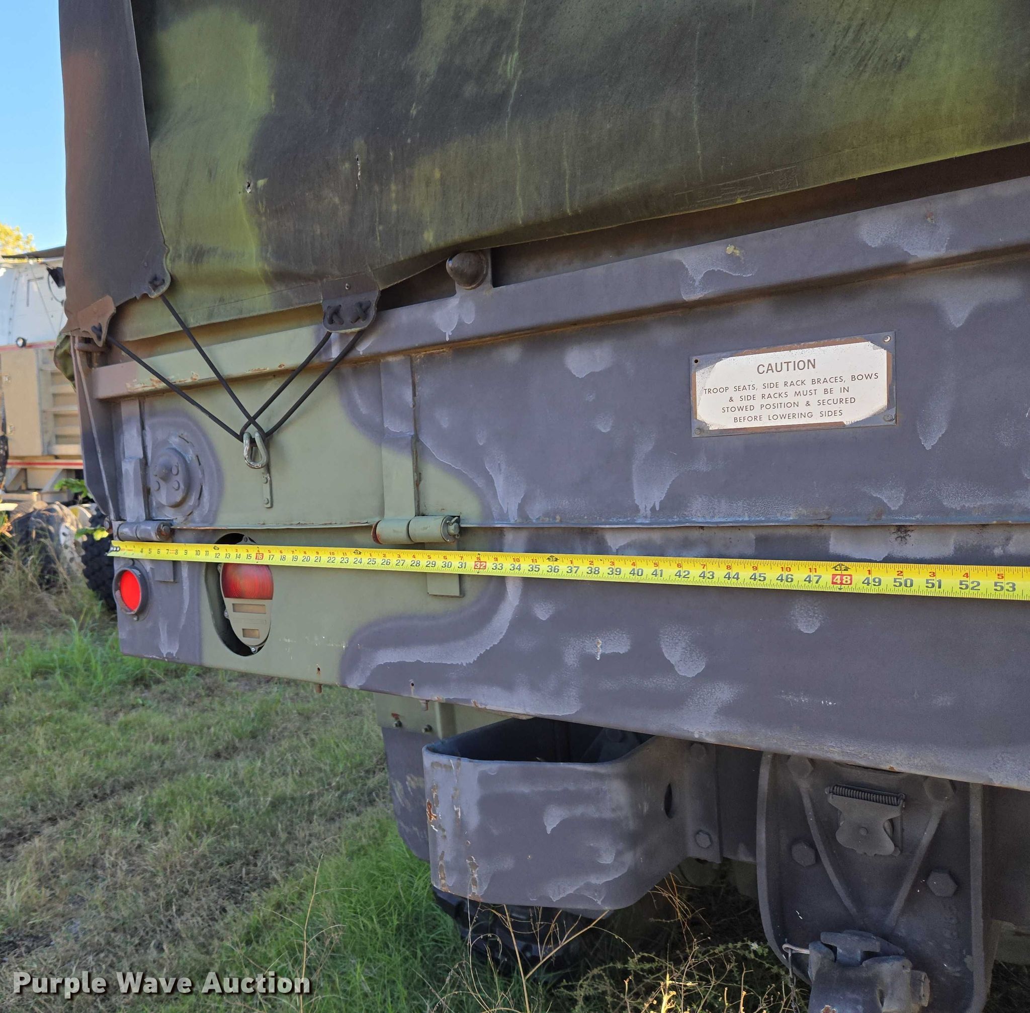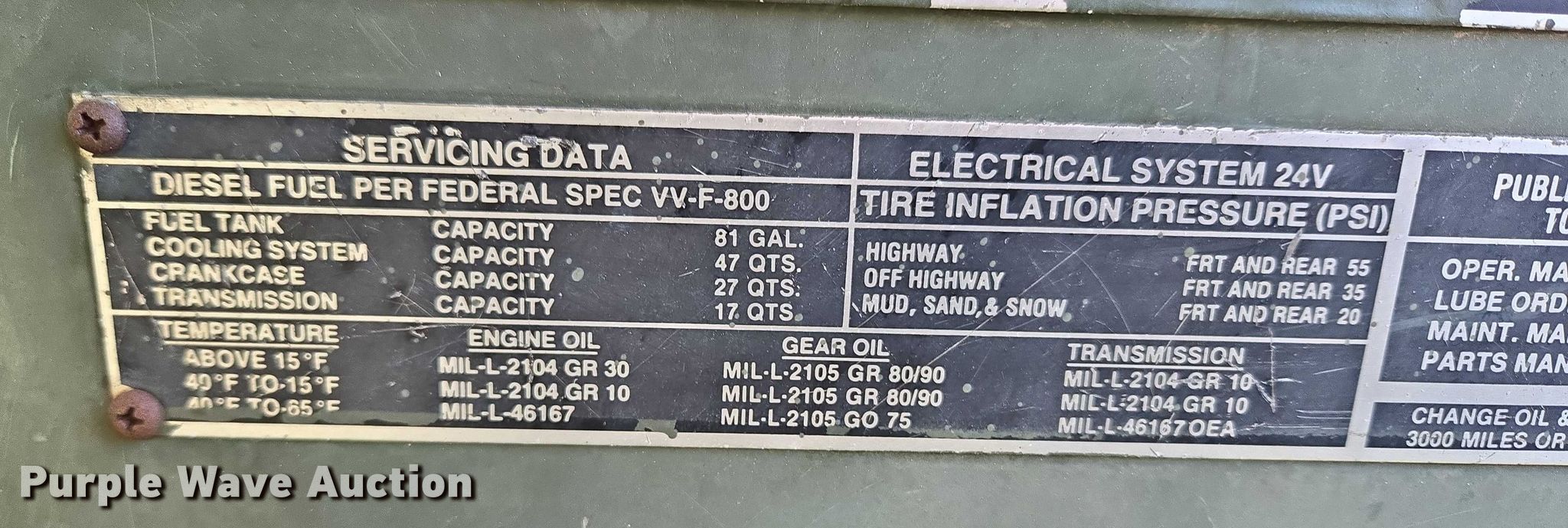 1986 AM General M934 flatbed truck. Miles: 18,654 on odometer, VIN: NLOMQNC52308699. Engine Cummins NHC-250, Serial: 11322030, Displacement: 855 C.I.D, Cylinders: 6, Fuel type: Diesel. Transmission Automatic. Chassis Six wheel drive, Axles: Tandem, Suspension: Spring, Camelback, Brakes: Air, GVWR: 32,175 lbs. Features Bed Flatbed, Length: 13' 11", Width: 7' 8" Removable sides.. Tires Size: 16.00R20. Notes Non-operational engine, Non-operational unit, Unit must be towed or hauled. Oklahoma classic title. Seller is an Oklahoma licensed motor vehicle dealer. Buyers may be required to provide identification to the licensed dealer to comply with state laws. Title will be assigned and distributed by the dealer. Please contact the seller for distribution questions. Title distribution may be delayed up to 14 days from verification of funds. Sundance Equipment & Truck Sales. Catoosa, OK 74015