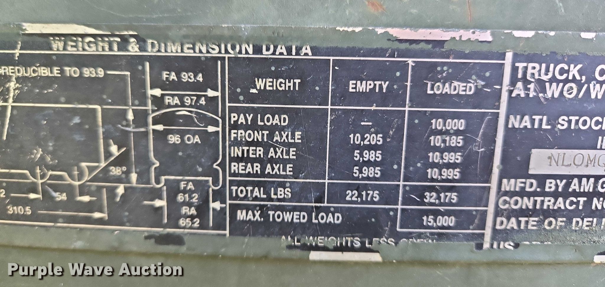 Take a look at this used 1986 AM General M934 flatbed truck being sold on December 3rd, 2025 in the Wednesday December 03 Vehicles and Equipment Auction made by AM General. Take a look at all of the item information below or take a look at similar auctions for Trucks.