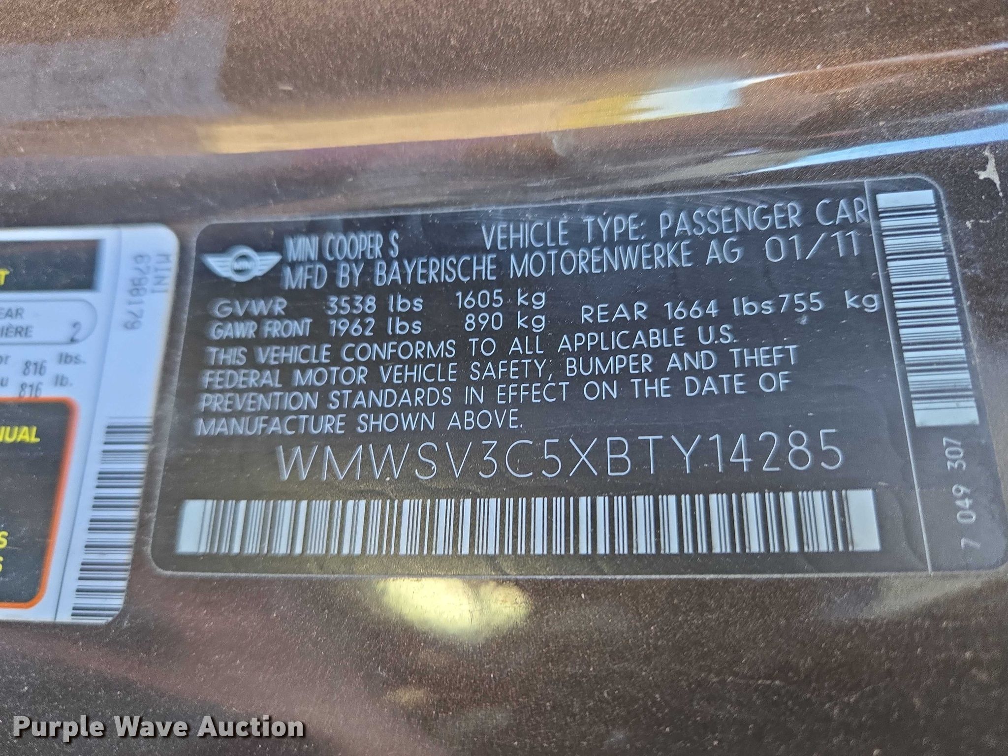 Purple Wave is selling a used Passenger Vehicle in Oklahoma. This item is a 2011 Mini Cooper S with the following: Miles: 111,481 on odometer, VIN: WMWSV3C5XBTY14285