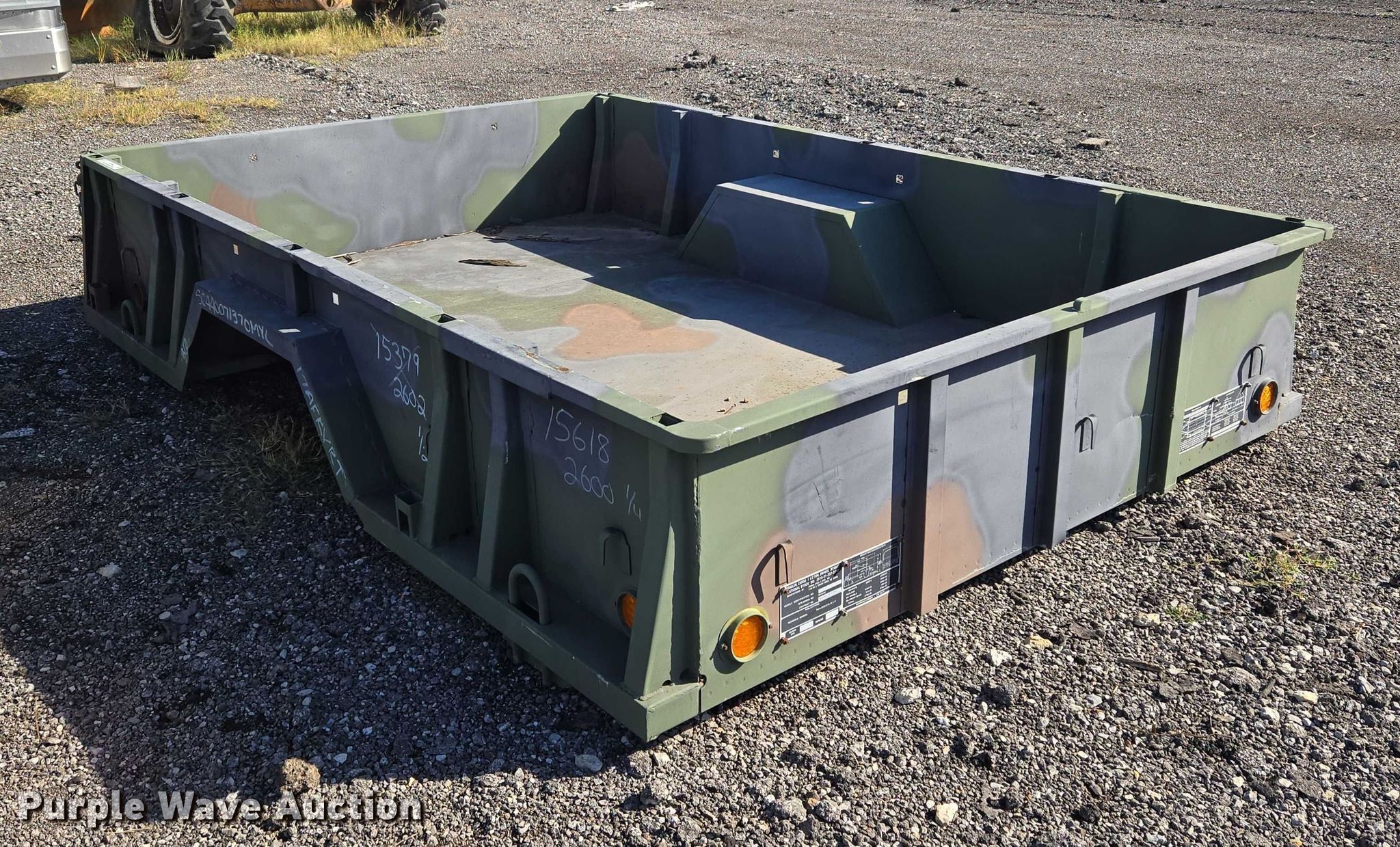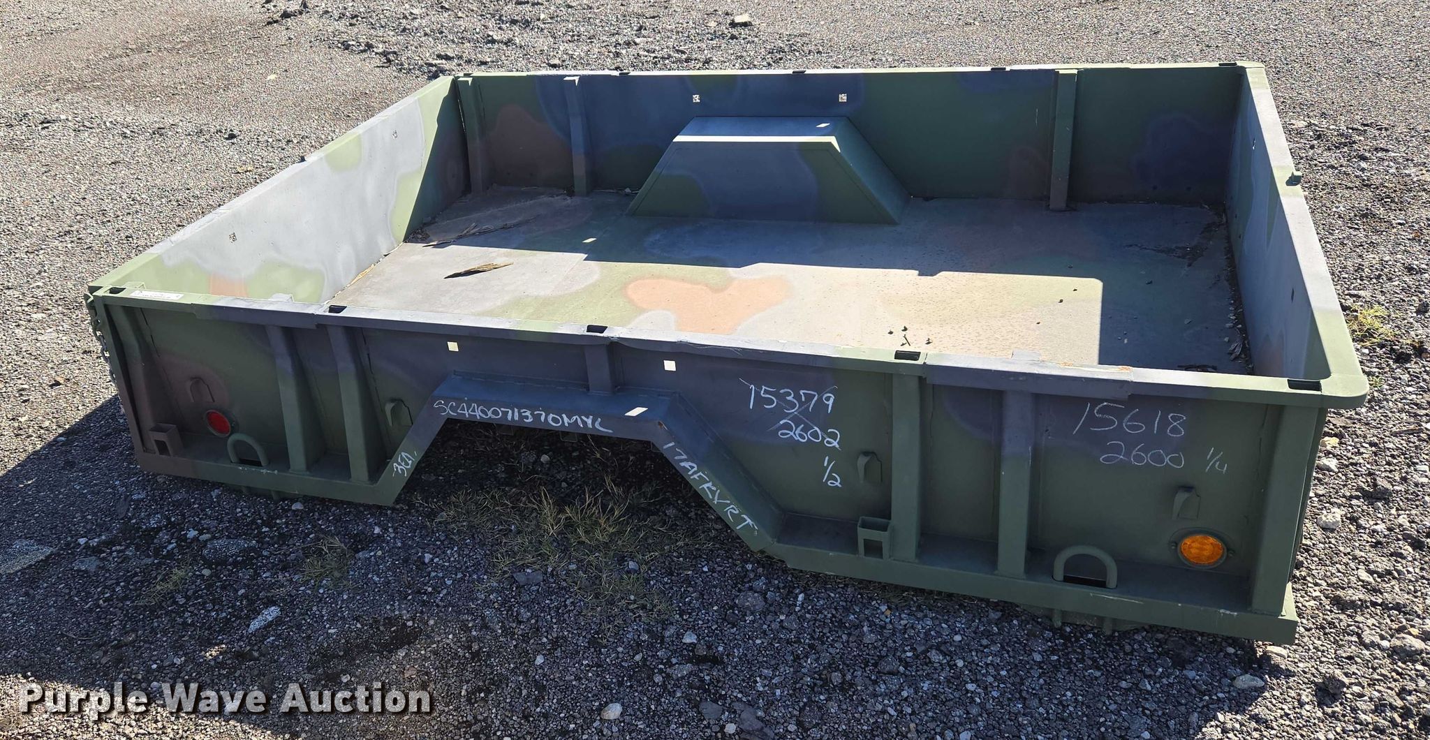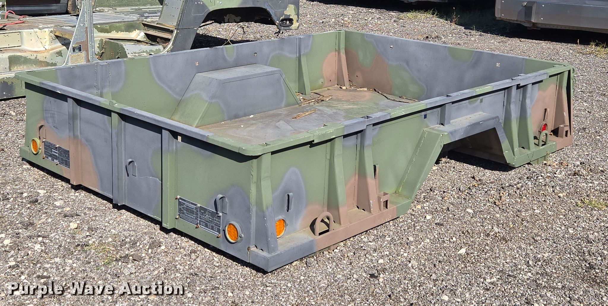 Purple Wave is selling a used Automotive Parts or Acces. in Oklahoma. This item is a AM General M105A2 cargo bed with the following: Bed, Flatbed, Length: 9' 6", Width: 6' 6", Height: 1' 8"