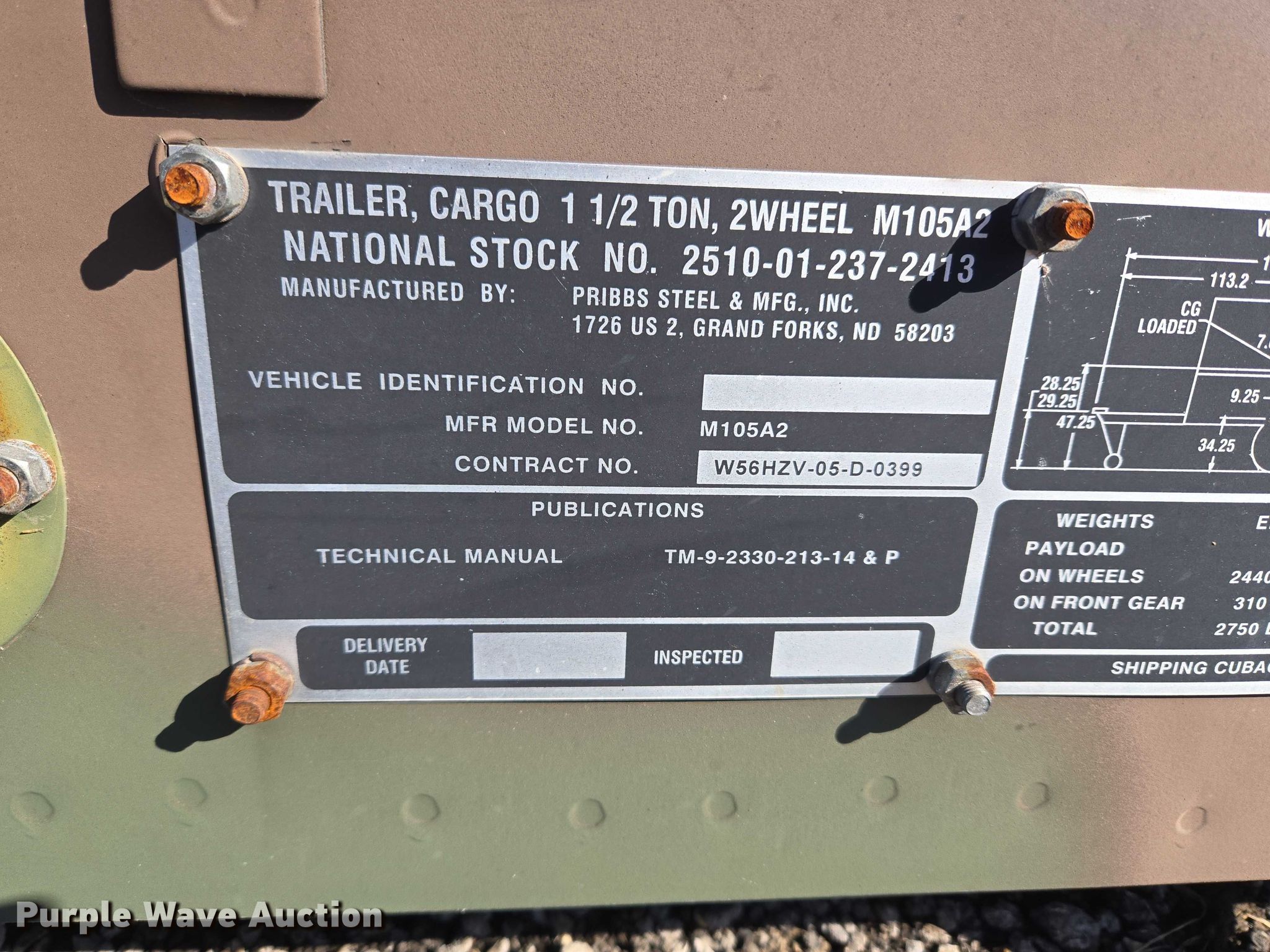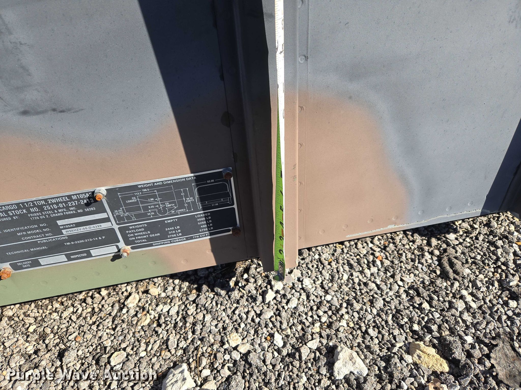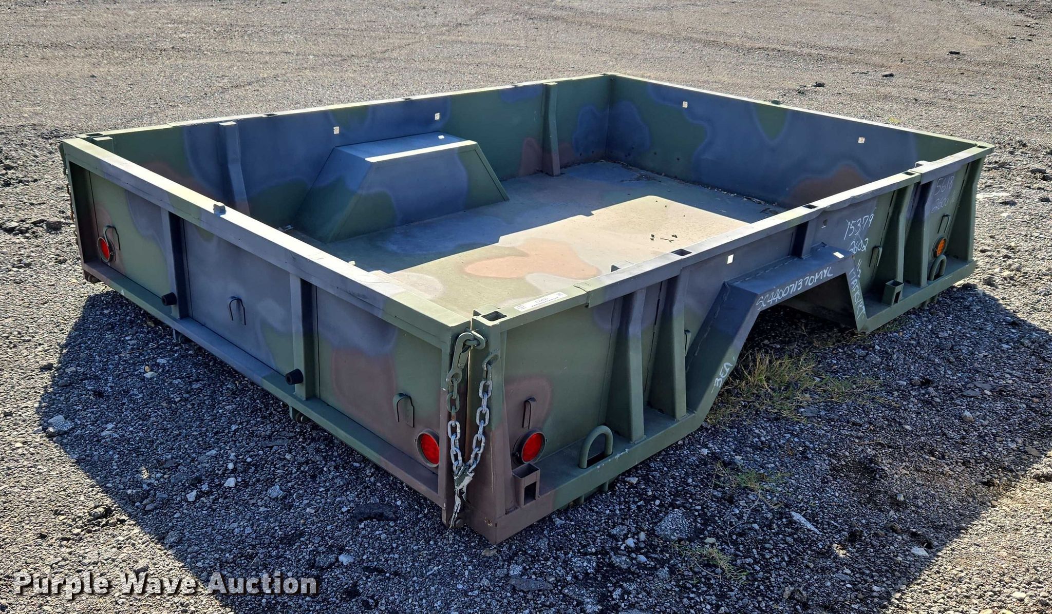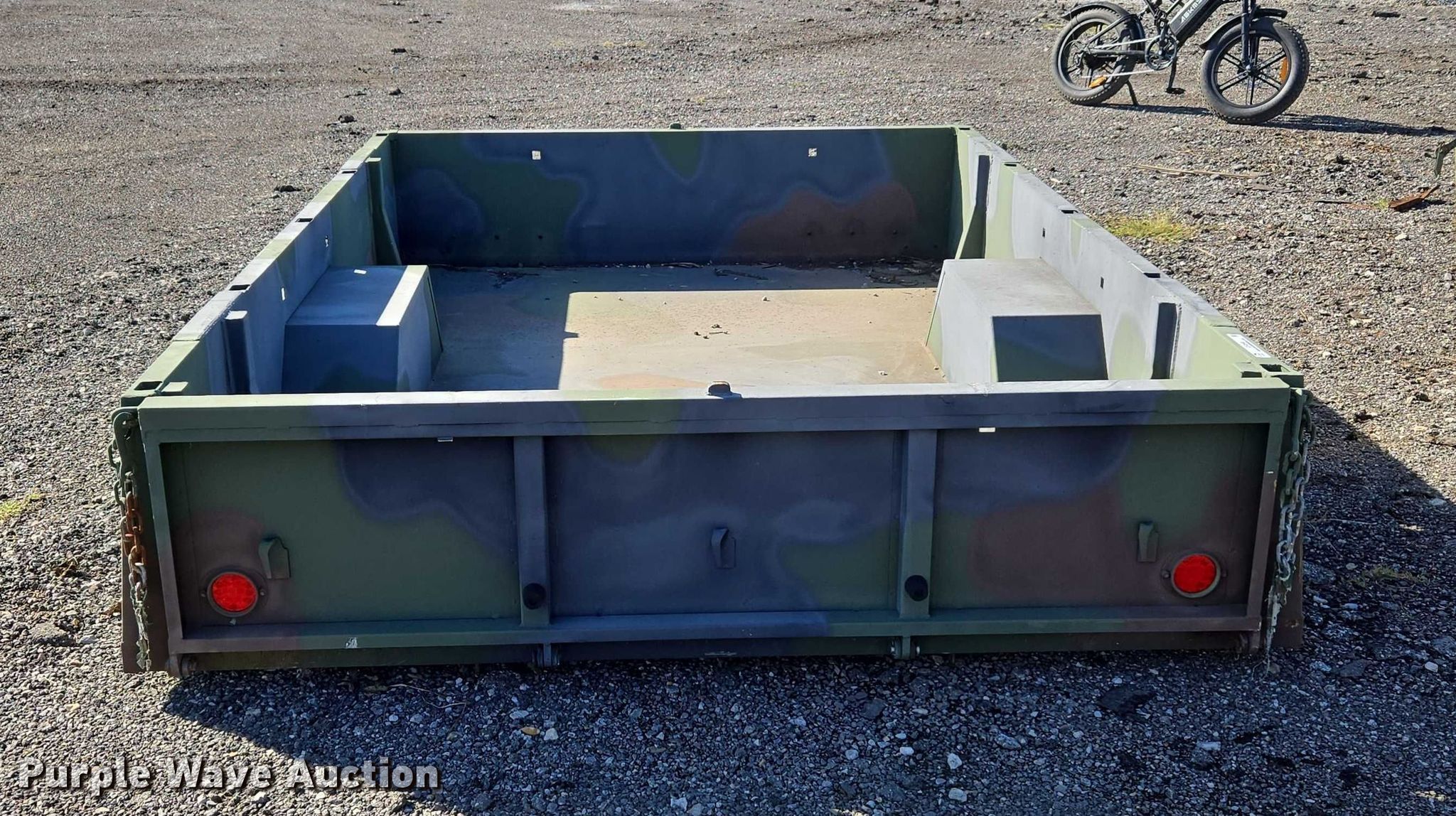 Purple Wave is selling a used Automotive Parts or Acces. in Oklahoma. This item is a AM General M105A2 cargo bed with the following: Bed, Flatbed, Length: 9' 6", Width: 6' 6", Height: 1' 8"