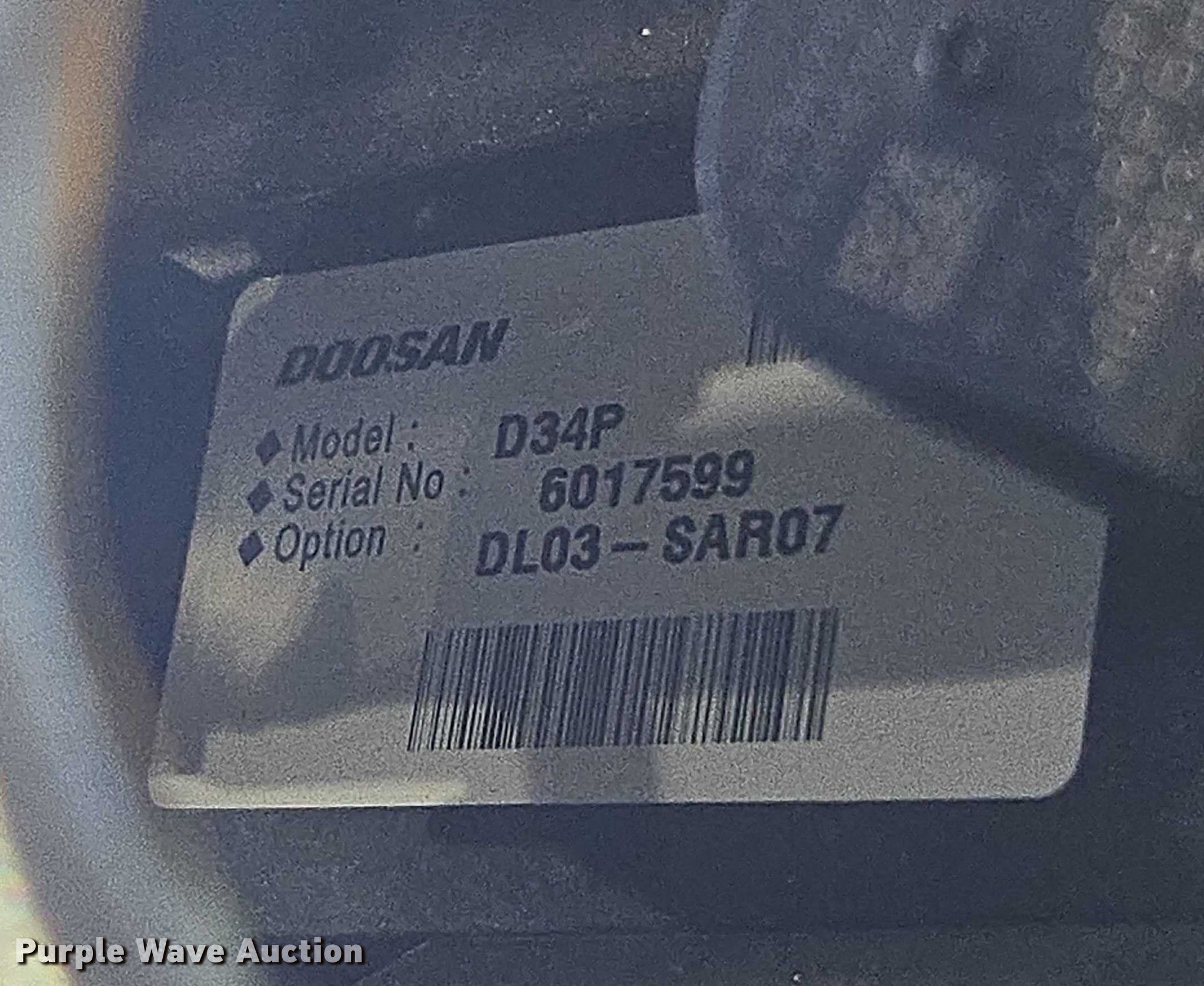 Purple Wave is selling a used Engine in Missouri. This item is a Doosan D34P engine with the following: Displacement: 3.4L, Cylinders: 4, Fuel type: Diesel
