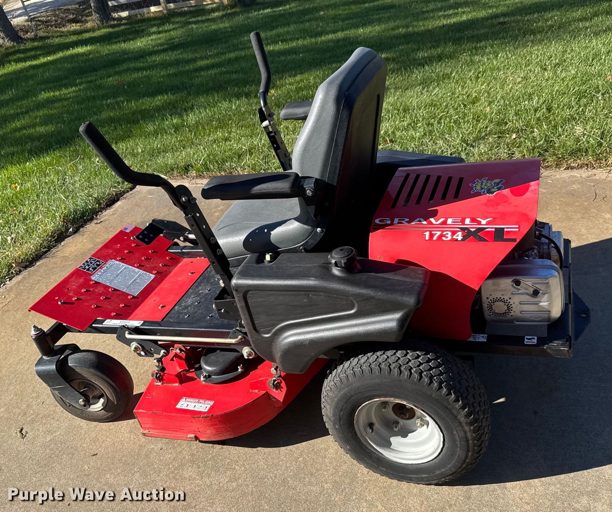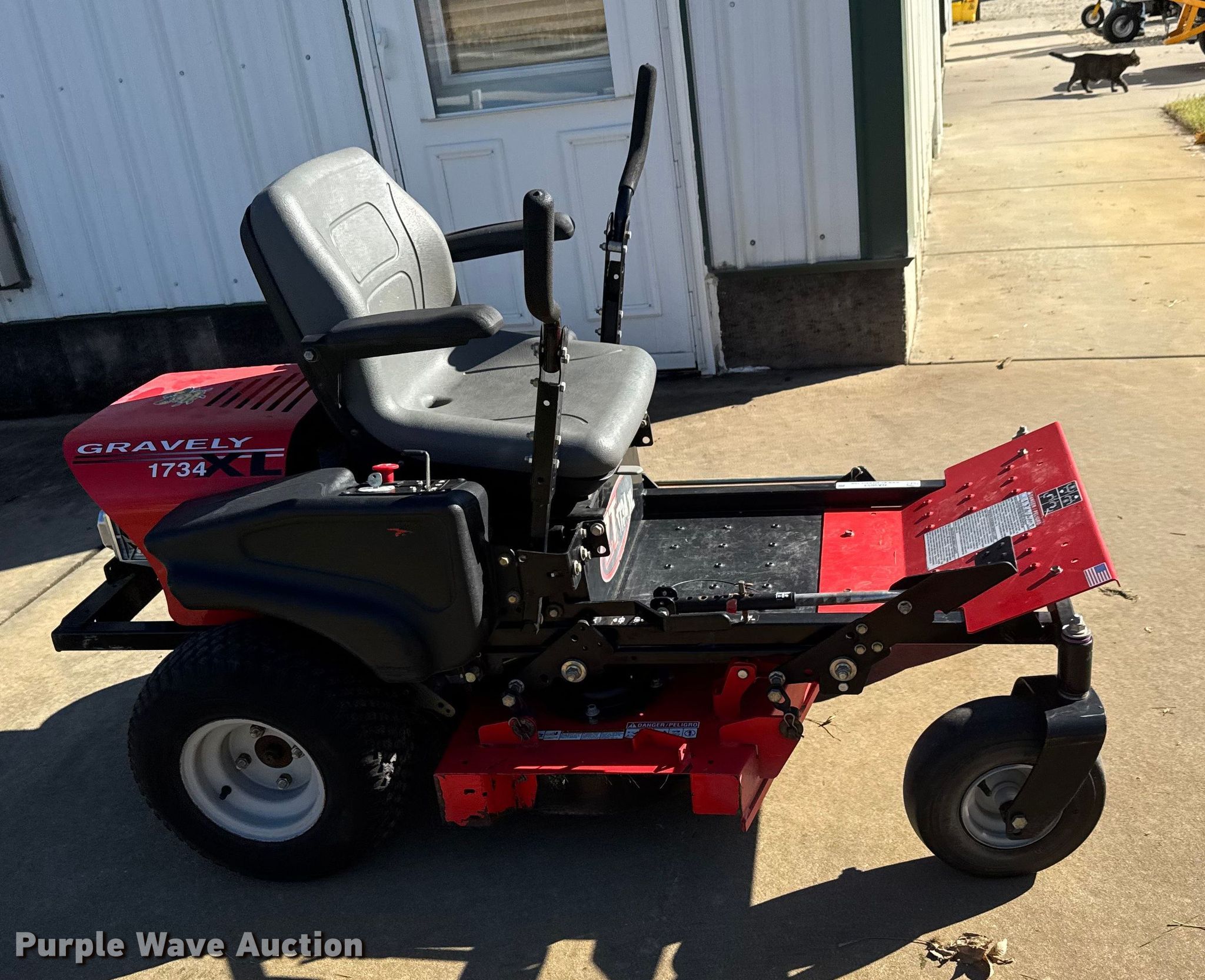Purple Wave is selling a used Lawn Mower in Kansas. This item is a Gravely ZT1734 XL ZTR lawn mower with the following: Cutting width: 34", Serial: 000164