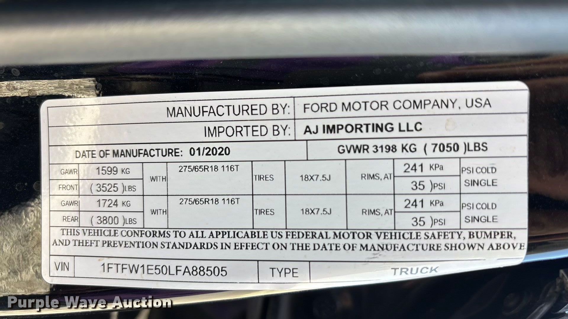 Purple Wave is selling a used 1/2 Ton Pickup or Van in Texas. This item is a 2020 Ford F150 SuperCrew pickup truck with the following: Miles: 98,839 on odometer, VIN: 1FTFW1E50LFA88505, Unit #: 89919075