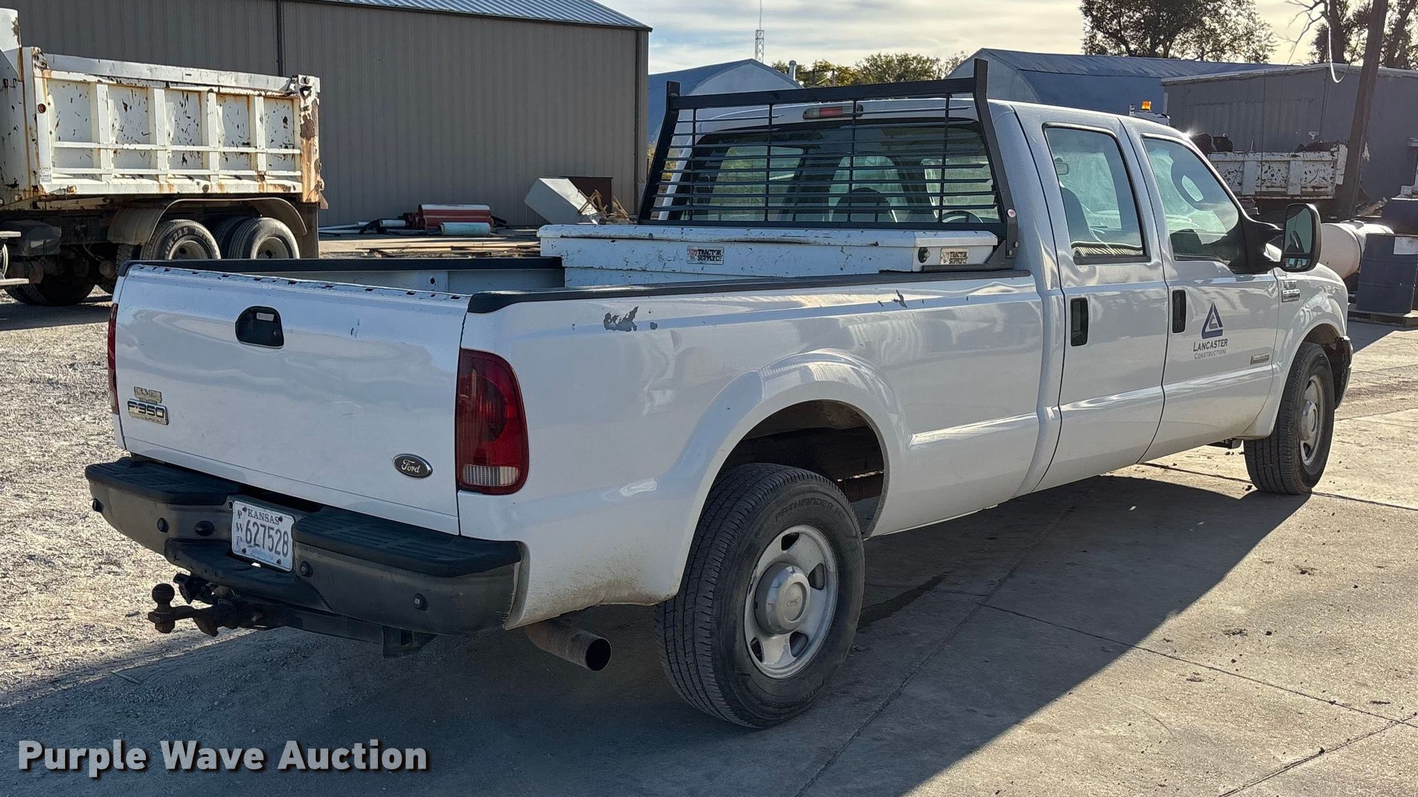 2007 Ford F350 Super Duty Crew Cab pickup truck. Miles: 196,212 on odometer, VIN: 1FTWW30PX7EA64003. Engine Displacement: 6.0L, Cylinders: 8, Fuel type: Diesel. Transmission Automatic. Interior AC, Heat, Brake controller. Tires Size: 265/70R17. Notes Dash warning indicator: Check engine, TBC Fault, Maintenance and repair documents available upon request at [email protected]. Kansas title. Title distribution may be delayed up to 14 days from verification of funds. Lancaster Construction, Inc. - Open Inspection December 2. 618 Francis St. Salina, KS 67401