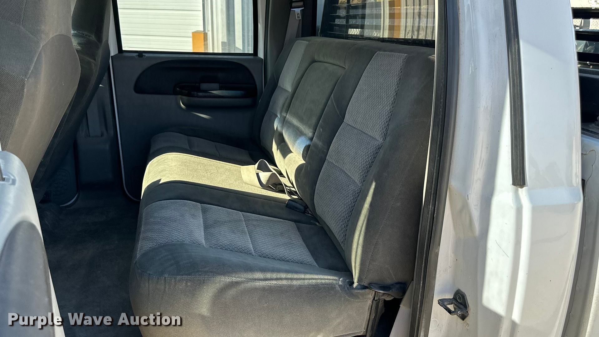 2005 Ford F350 Super Duty Crew Cab pickup truck. Miles: 169,328 on odometer, VIN: 1FTWW31P85EB86497. Engine Displacement: 6.0L, Cylinders: 8, Fuel type: Diesel. Transmission Automatic, Four wheel drive. Interior AC, Heat, Seat: Power driver, Power passenger, Heated mirrors, Power windows, Power locks, Cruise control, Auxiliary controls, Brake controller. Features Hitch: Gooseneck. Tires Size: 275/70R18. Notes Dash warning indicator: ABS, Maintenance and repair documents available upon request at [email protected]. Kansas title. Title distribution may be delayed up to 14 days from verification of funds. Lancaster Construction, Inc. - Open Inspection December 2. 618 Francis St. Salina, KS 67401