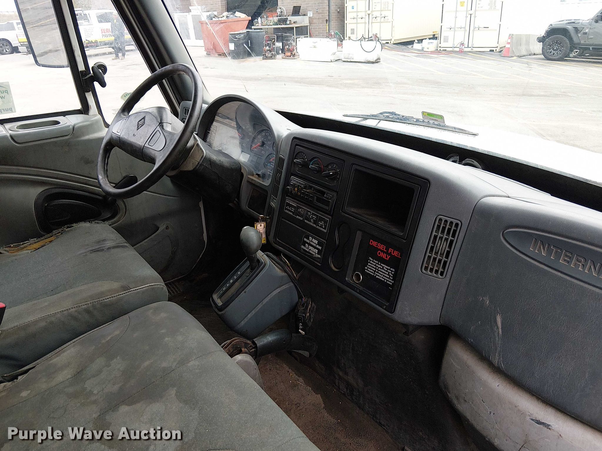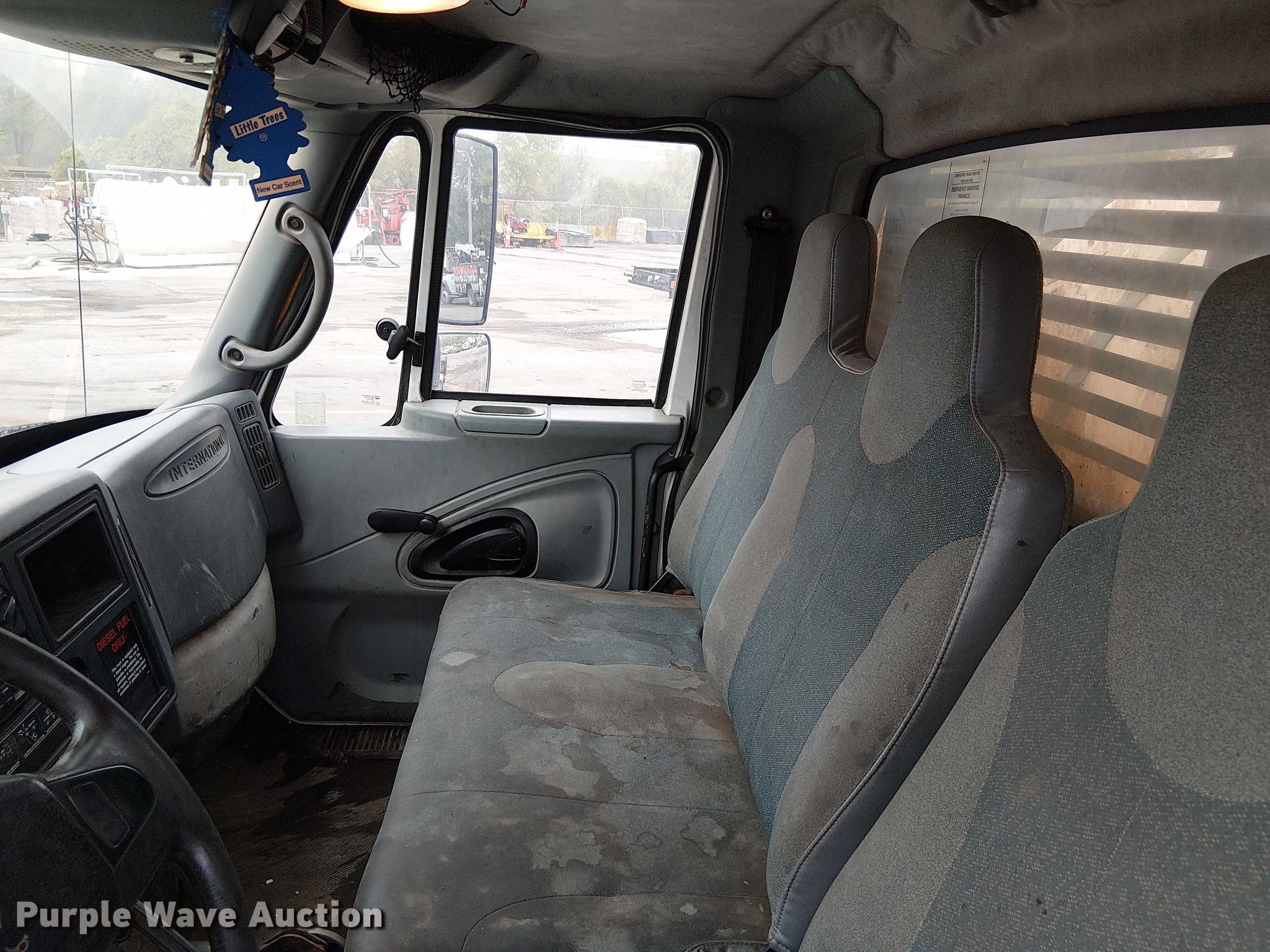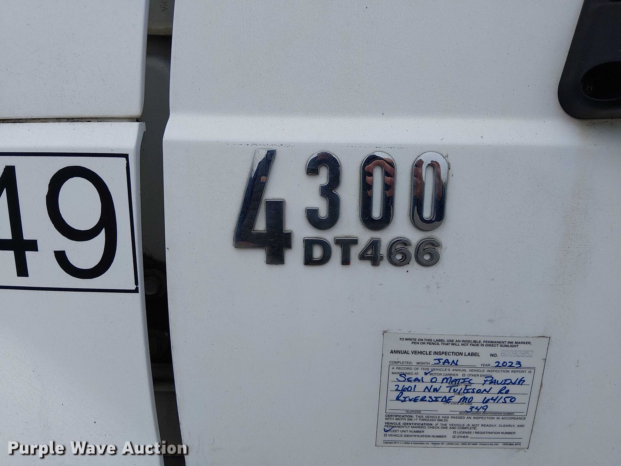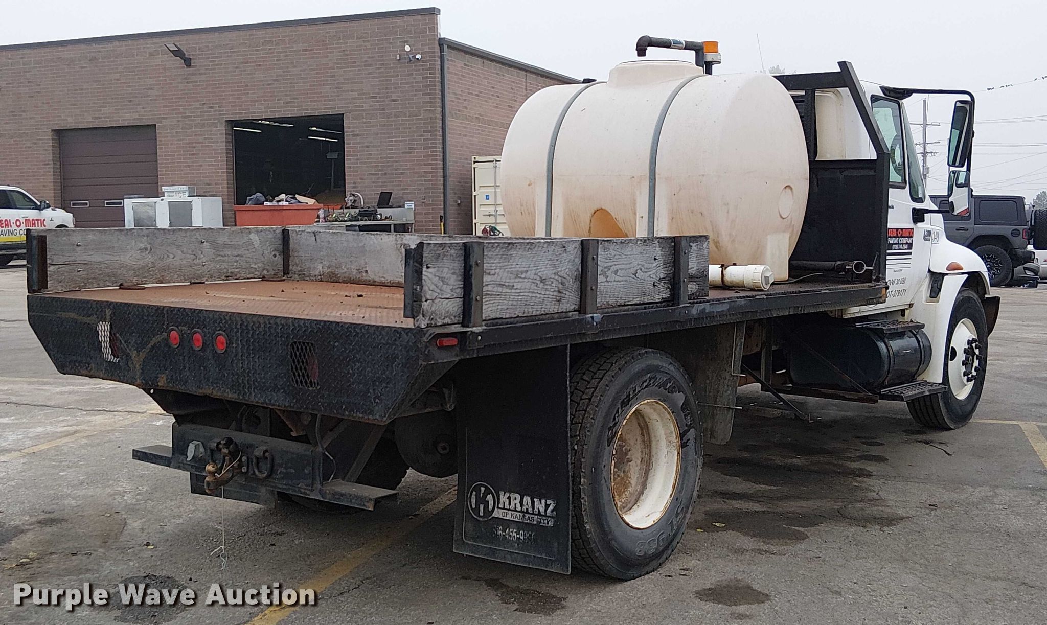 2004 International 4300 flatbed truck. Miles: 245,930 on odometer, VIN: 1HTMMAAM84H593744. Engine International DT466, Displacement: 7.64L, Cylinders: 6, Fuel type: Diesel. Transmission Automatic. Chassis Axles: Single, Suspension: Spring, Brakes: Hydraulic, GVWR: 25,500 lbs. Interior AC, Heat, Cruise control. Features Bed Flatbed, Length: 14', Width: 98", Poly tank Capacity: 500 gallons. Tires Size: 11R22.5. Notes Contents not included, Dash warning indicator: ABS, Windshield chipped or cracked, Jump start required during on-site data collection. Missouri title. Title distribution may be delayed up to 14 days from verification of funds. Seal-O-Matic Paving. Riverside, MO 64150