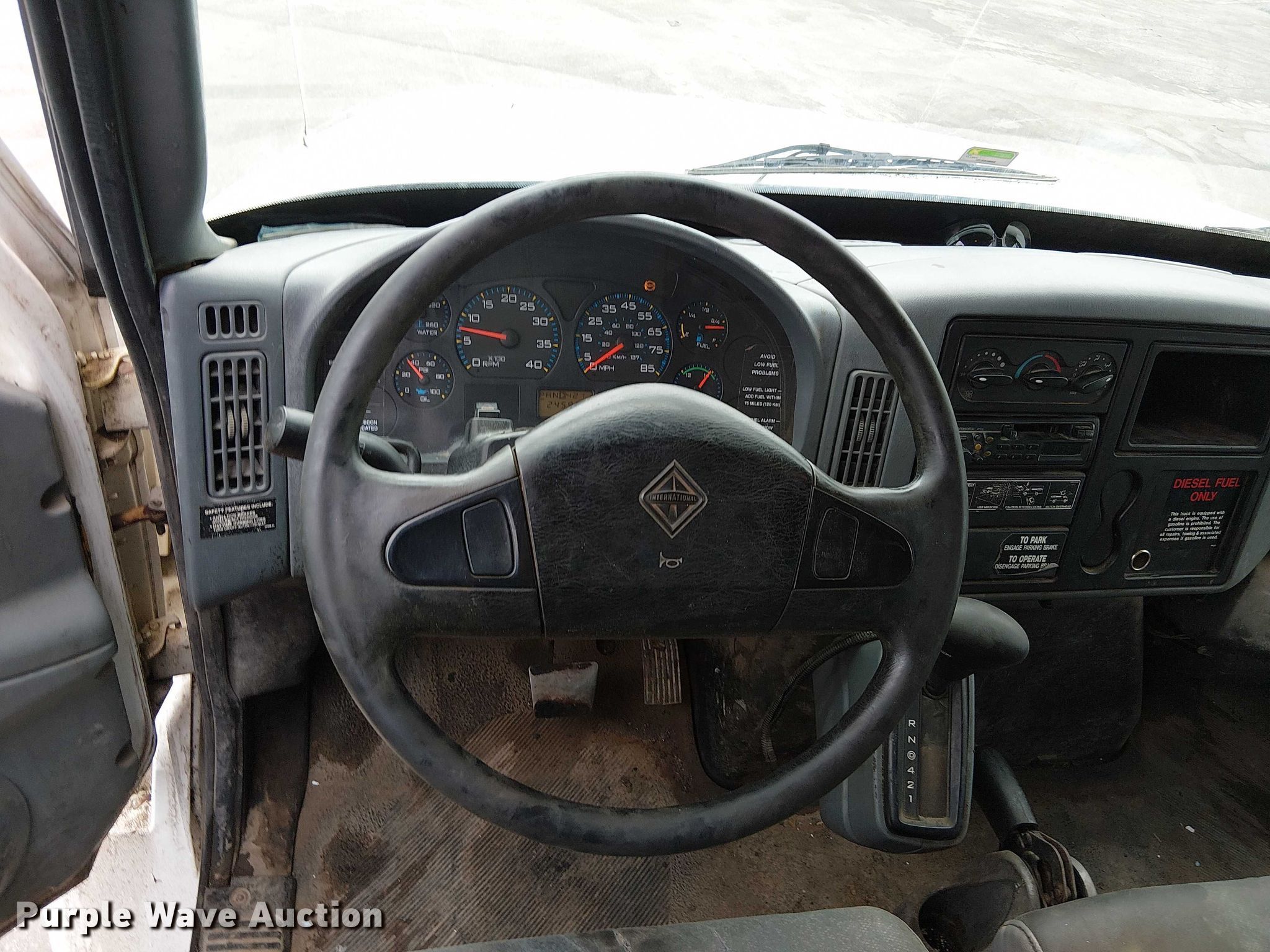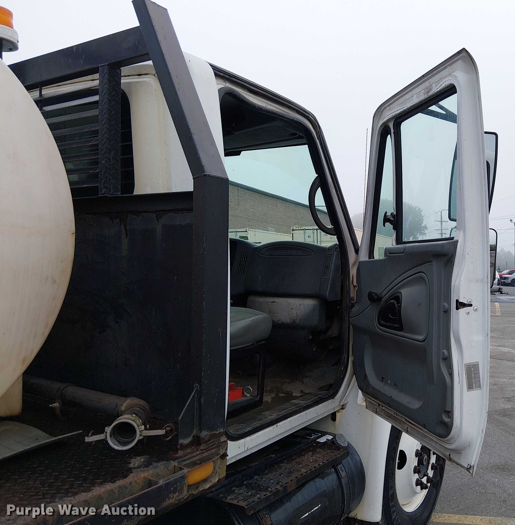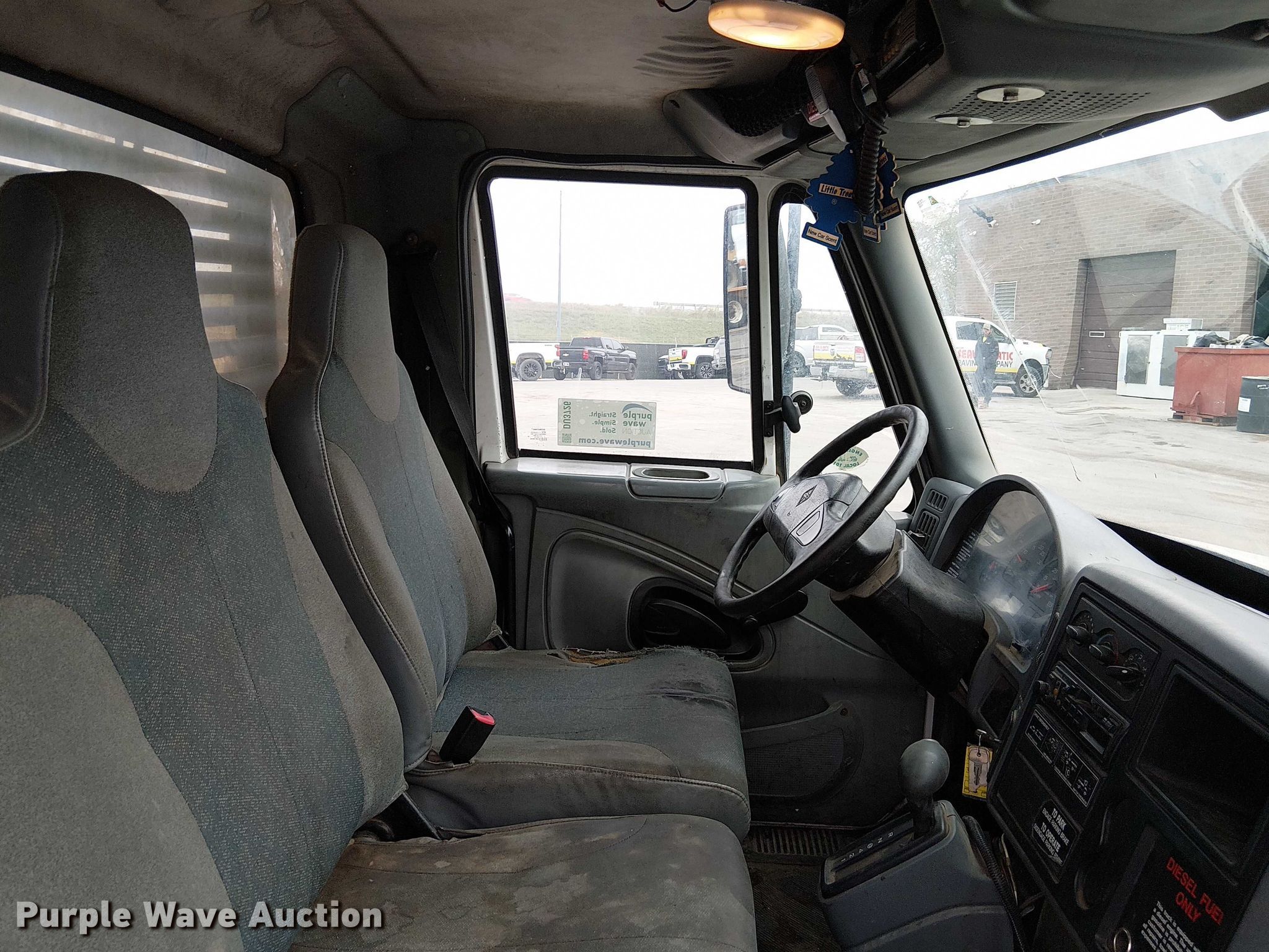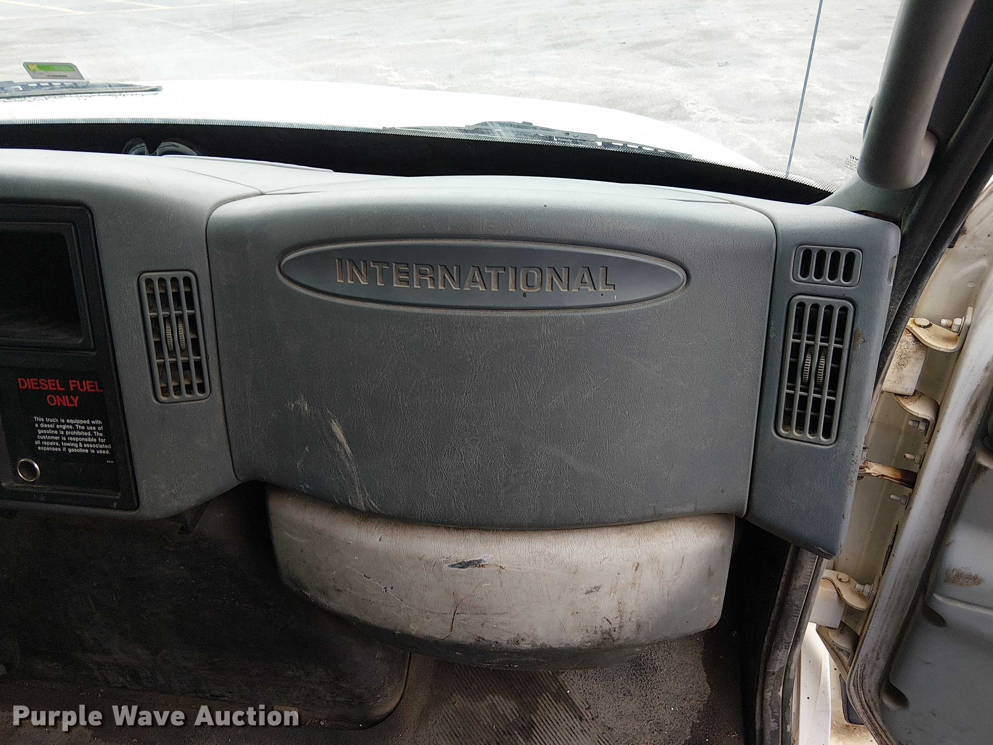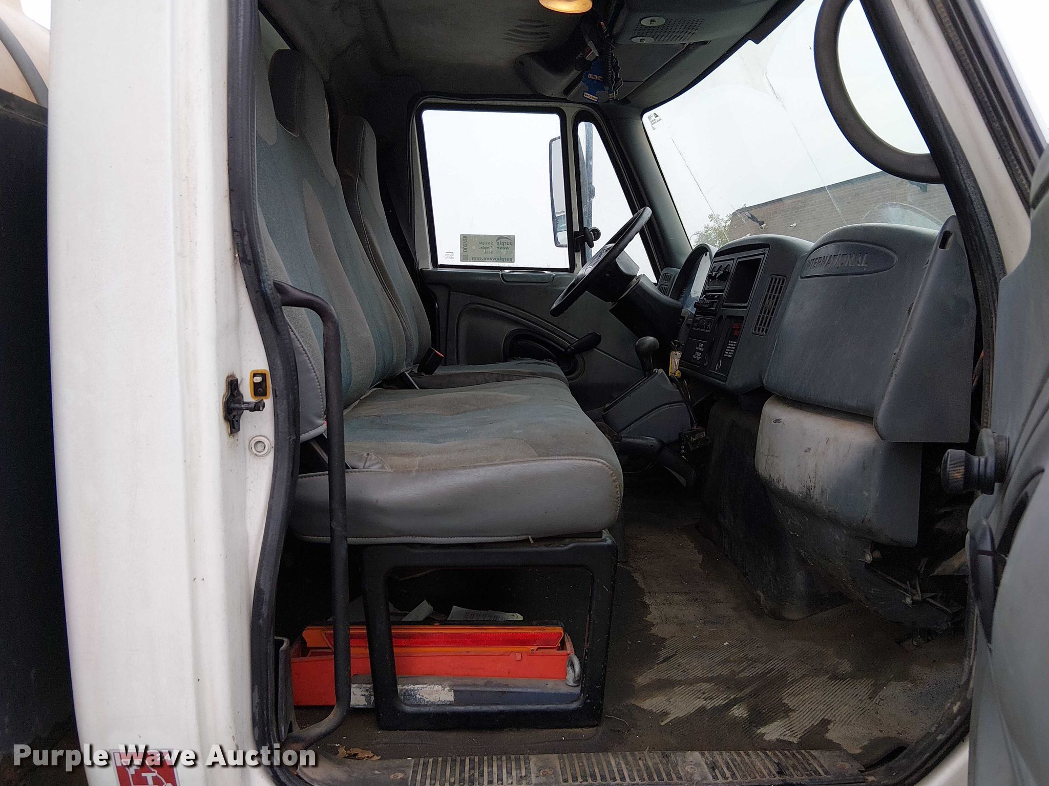 2004 International 4300 flatbed truck. Miles: 245,930 on odometer, VIN: 1HTMMAAM84H593744. Engine International DT466, Displacement: 7.64L, Cylinders: 6, Fuel type: Diesel. Transmission Automatic. Chassis Axles: Single, Suspension: Spring, Brakes: Hydraulic, GVWR: 25,500 lbs. Interior AC, Heat, Cruise control. Features Bed Flatbed, Length: 14', Width: 98", Poly tank Capacity: 500 gallons. Tires Size: 11R22.5. Notes Contents not included, Dash warning indicator: ABS, Windshield chipped or cracked, Jump start required during on-site data collection. Missouri title. Title distribution may be delayed up to 14 days from verification of funds. Seal-O-Matic Paving. Riverside, MO 64150