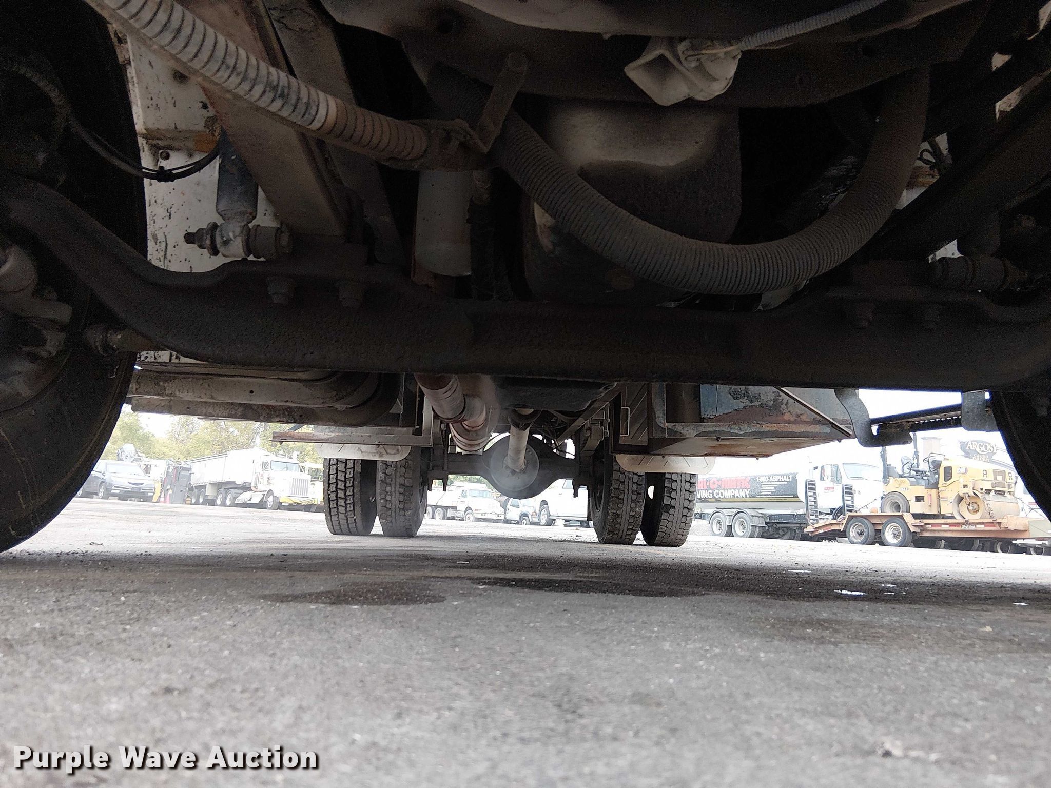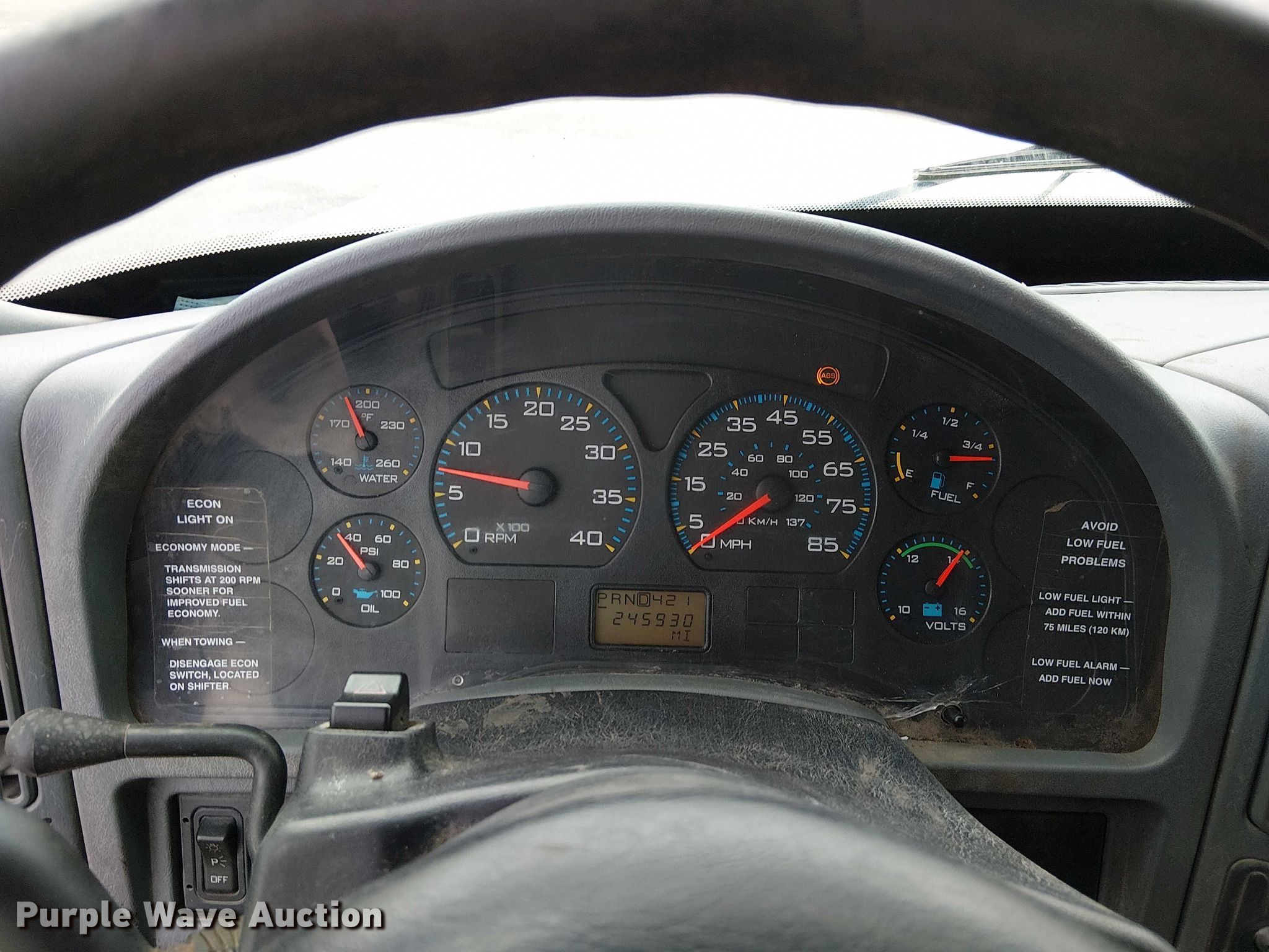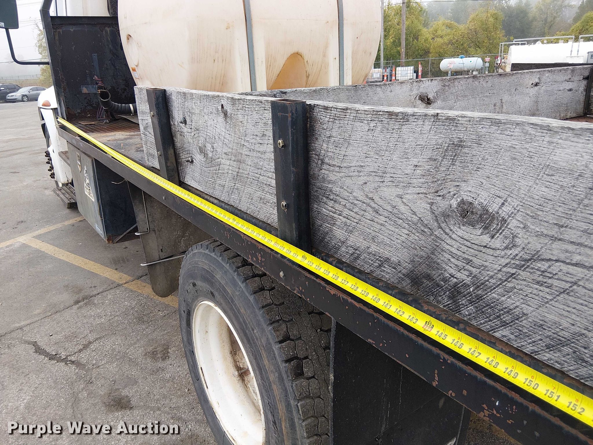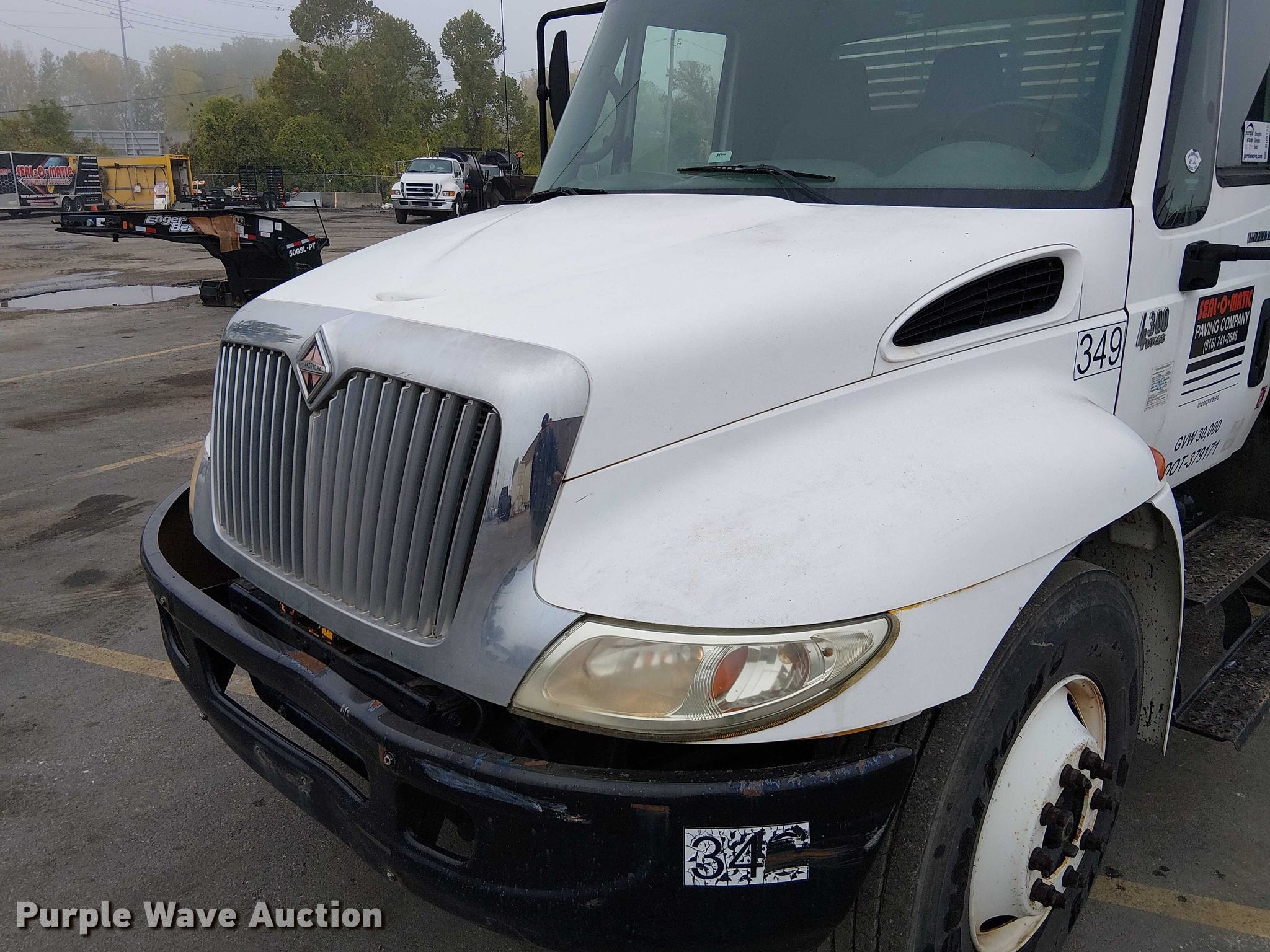 2004 International 4300 flatbed truck. Miles: 245,930 on odometer, VIN: 1HTMMAAM84H593744. Engine International DT466, Displacement: 7.64L, Cylinders: 6, Fuel type: Diesel. Transmission Automatic. Chassis Axles: Single, Suspension: Spring, Brakes: Hydraulic, GVWR: 25,500 lbs. Interior AC, Heat, Cruise control. Features Bed Flatbed, Length: 14', Width: 98", Poly tank Capacity: 500 gallons. Tires Size: 11R22.5. Notes Contents not included, Dash warning indicator: ABS, Windshield chipped or cracked, Jump start required during on-site data collection. Missouri title. Title distribution may be delayed up to 14 days from verification of funds. Seal-O-Matic Paving. Riverside, MO 64150