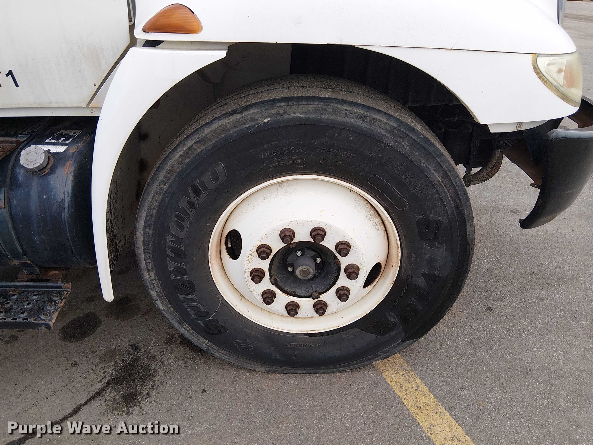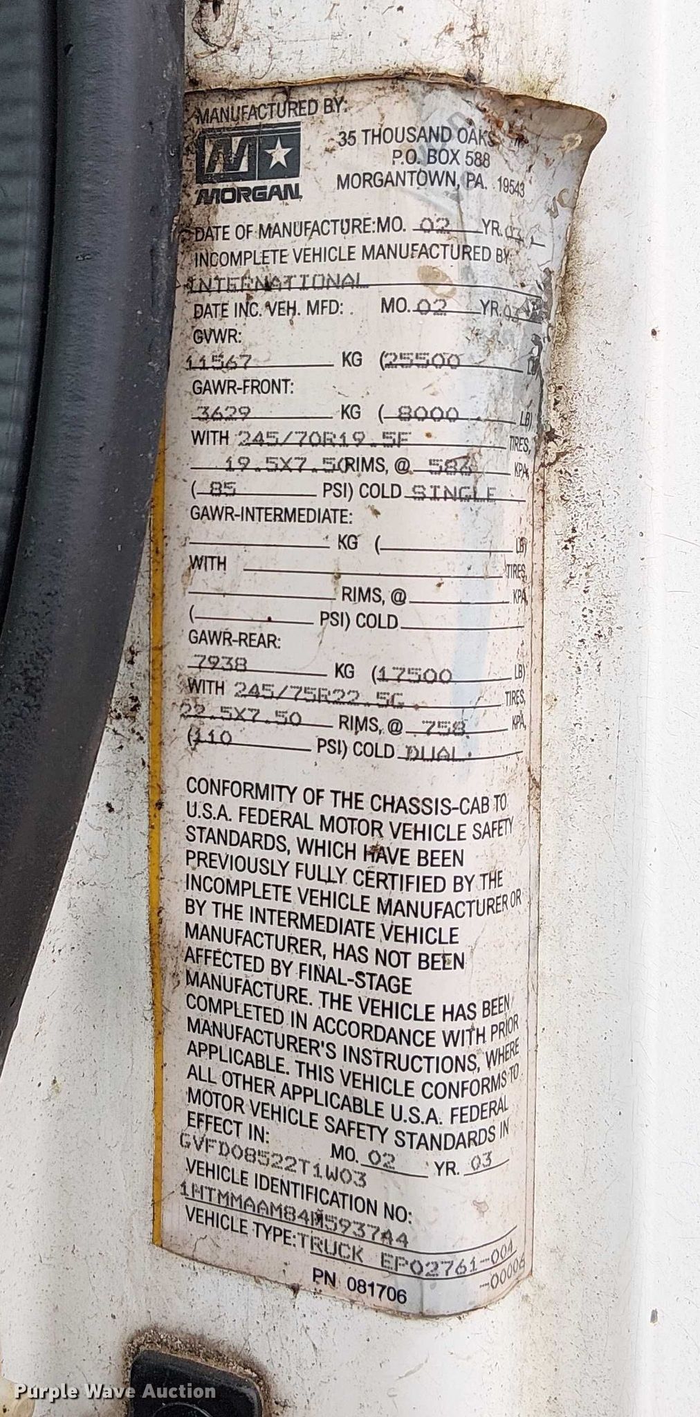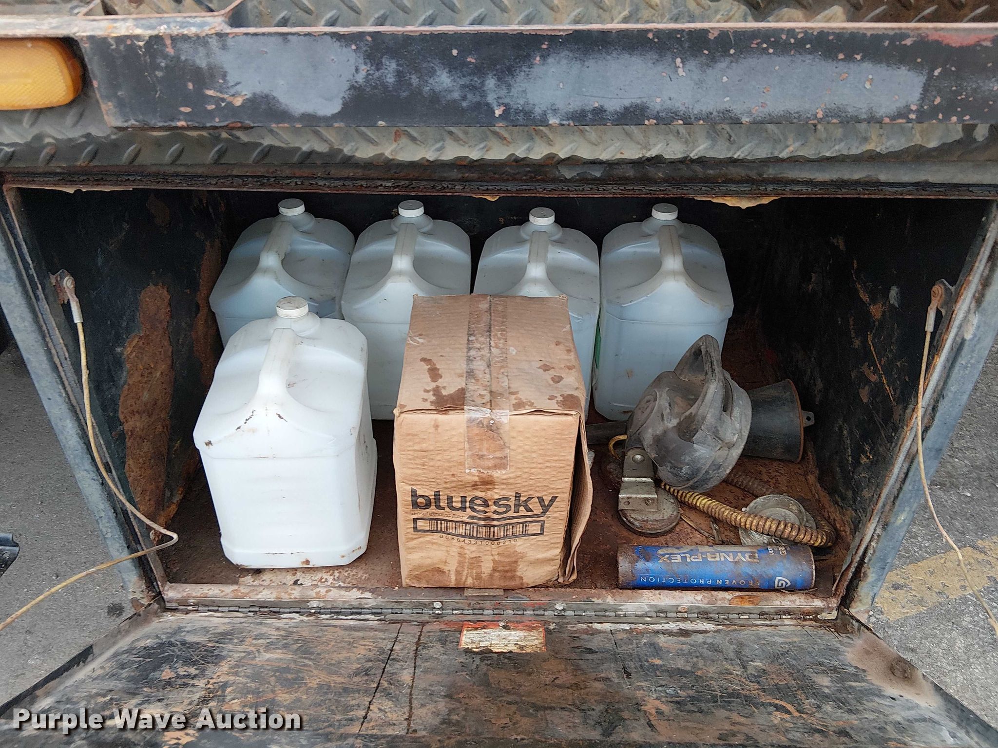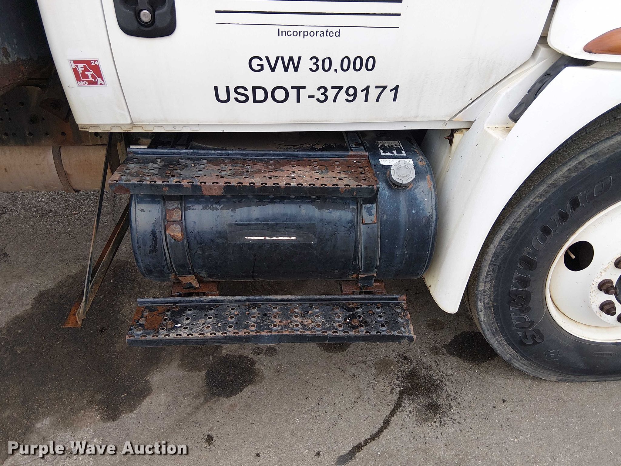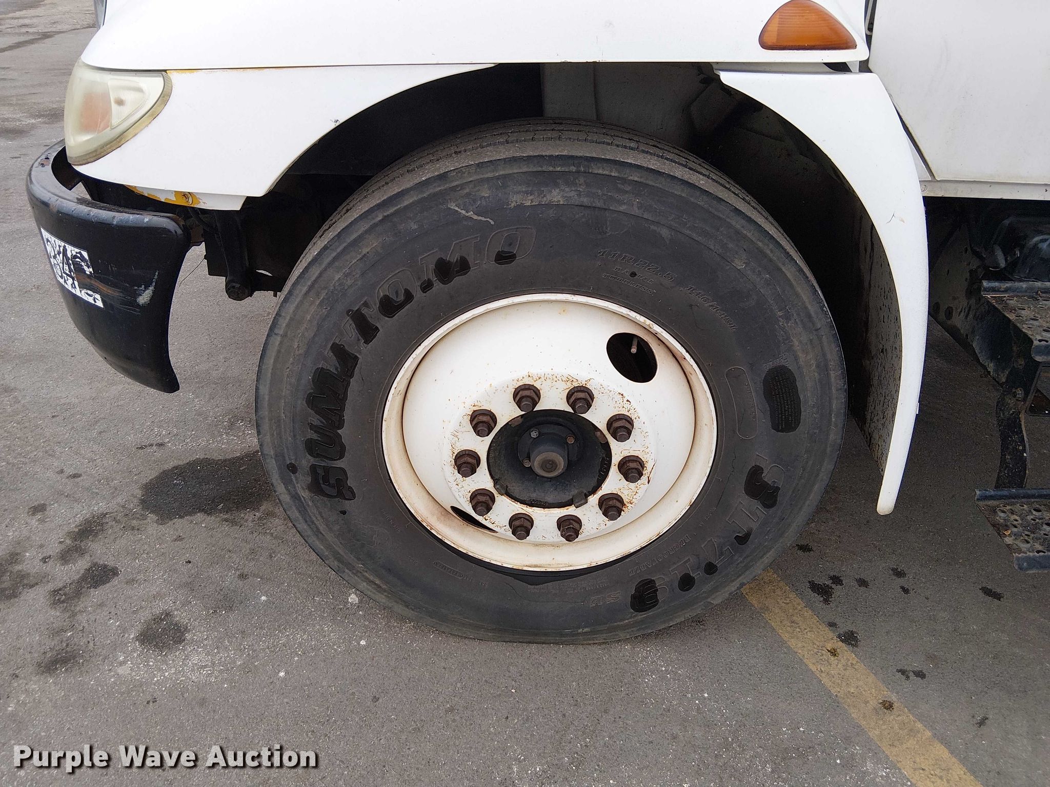 2004 International 4300 flatbed truck. Miles: 245,930 on odometer, VIN: 1HTMMAAM84H593744. Engine International DT466, Displacement: 7.64L, Cylinders: 6, Fuel type: Diesel. Transmission Automatic. Chassis Axles: Single, Suspension: Spring, Brakes: Hydraulic, GVWR: 25,500 lbs. Interior AC, Heat, Cruise control. Features Bed Flatbed, Length: 14', Width: 98", Poly tank Capacity: 500 gallons. Tires Size: 11R22.5. Notes Contents not included, Dash warning indicator: ABS, Windshield chipped or cracked, Jump start required during on-site data collection. Missouri title. Title distribution may be delayed up to 14 days from verification of funds. Seal-O-Matic Paving. Riverside, MO 64150