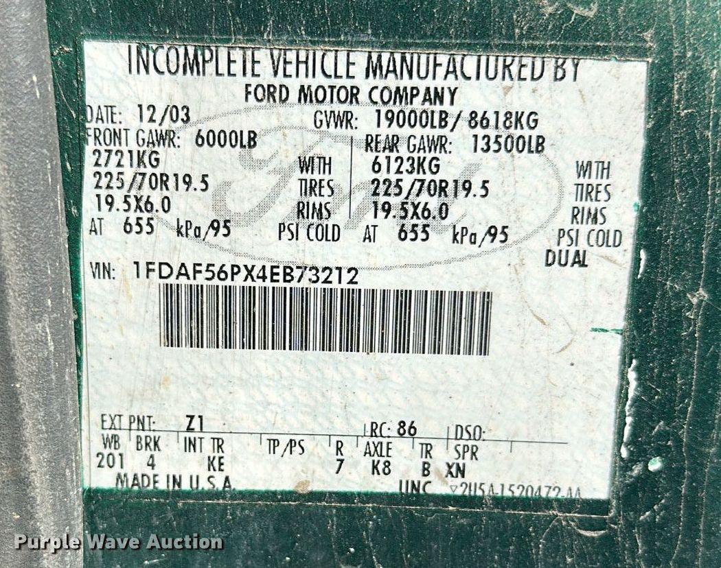 - VIN: 1FDAF56PX4EB73212