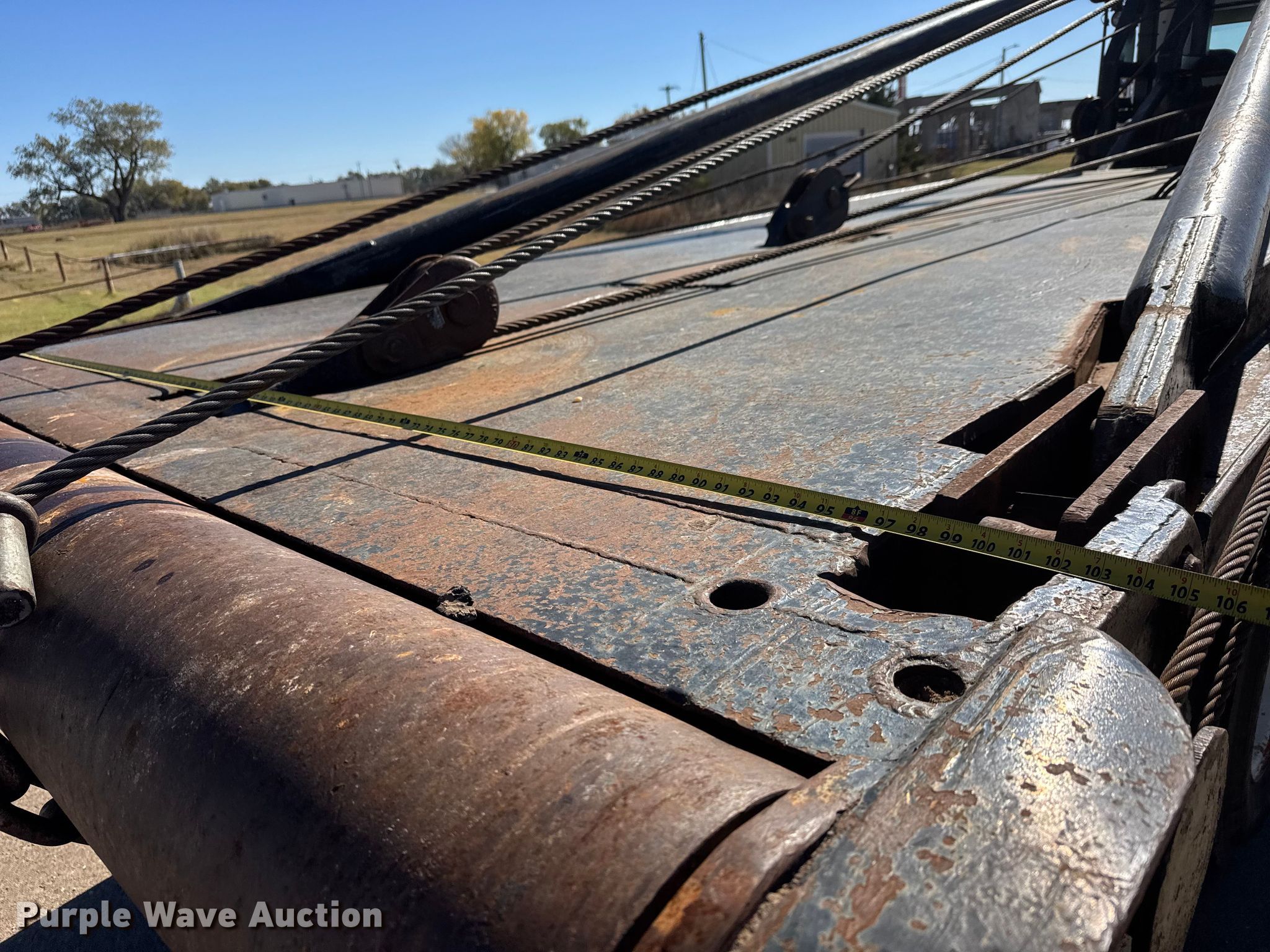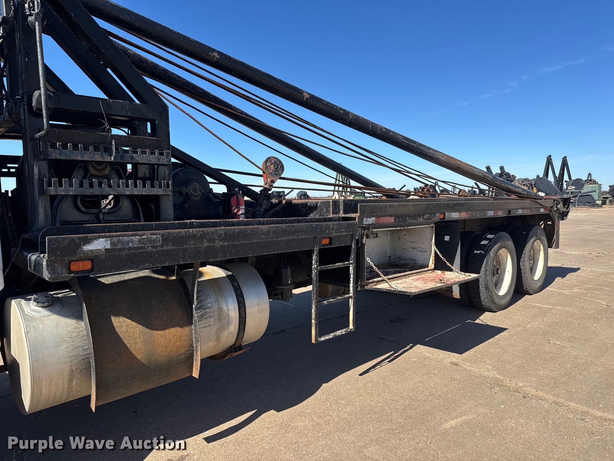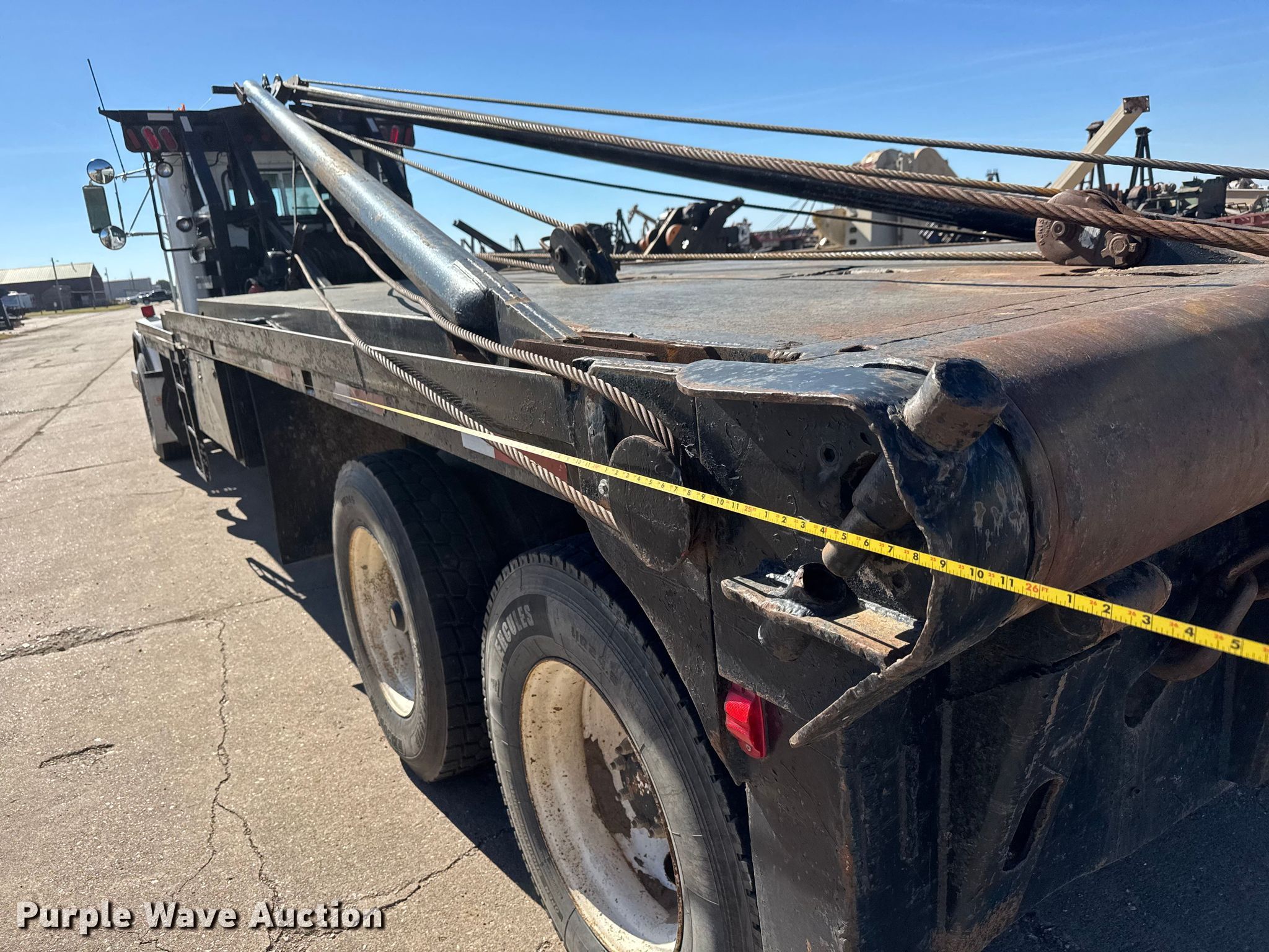 2001 Kenworth T800 winch truck. Miles: 171,829 on odometer, Hours: 22,286 on meter, VIN: 1NKDLB0X21R876937, Unit #: 40. Engine Caterpillar C15, Serial: 6NZ37625, Displacement: 15.2L, Cylinders: 6, Fuel type: Diesel, Engine brake. Transmission Eaton Fuller RTL016913AP, Manual, Speed: 13. Chassis Differential lock: Full, Axles: Tandem, Suspension: Spring over walking beam, Brakes: Air, PTO, GVWR: 64,740 lbs. Interior AC, Heat, Heated mirrors, Cruise control. Features Bed Flatbed, Length: 25' 9", Width: 111", Gin poles: 24.5' L, Rolling tailboard, Winch Tulsa Winch RN100WM-RF0 Capacity: 100,000, Tulsa Winch, Tulsa Winch M24-SLLFU Serial: 90005000006.. Tires Front: 425/65R22.5, Rear: 11R24.5. Notes Windshield chipped or cracked. Kansas title. Title distribution may be delayed up to 14 days from verification of funds. Pratt Oilfield Service, Inc. Retirement - Open inspection December 2, 2025. Pratt, KS 67124