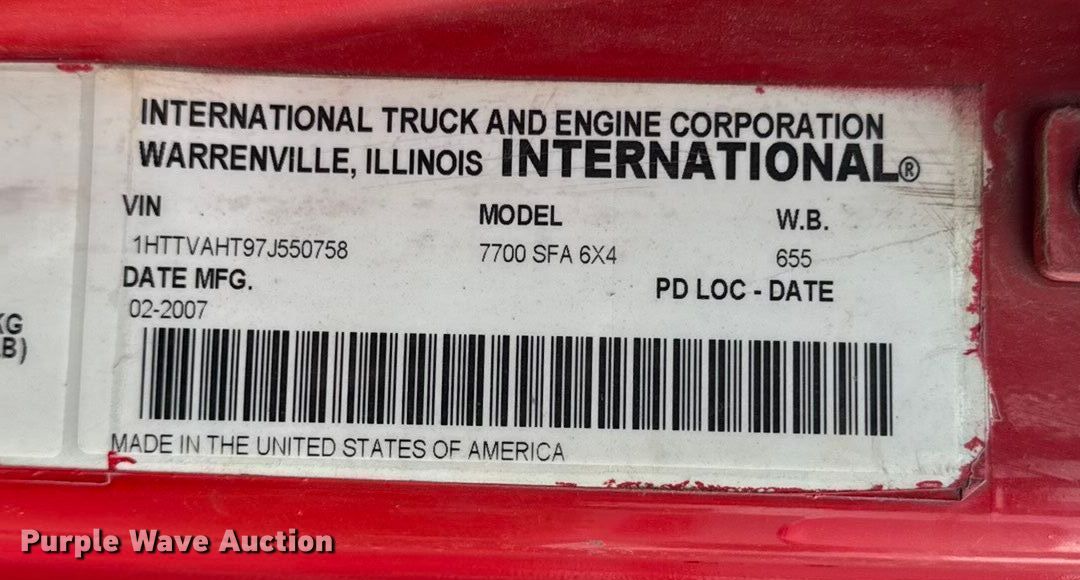 Purple Wave is selling a used Oilfield Truck in Kansas. This item is a 2007 International 7700 winch truck with the following: Miles: 345,409 on odometer, VIN: 1HTTVAHT97J550758