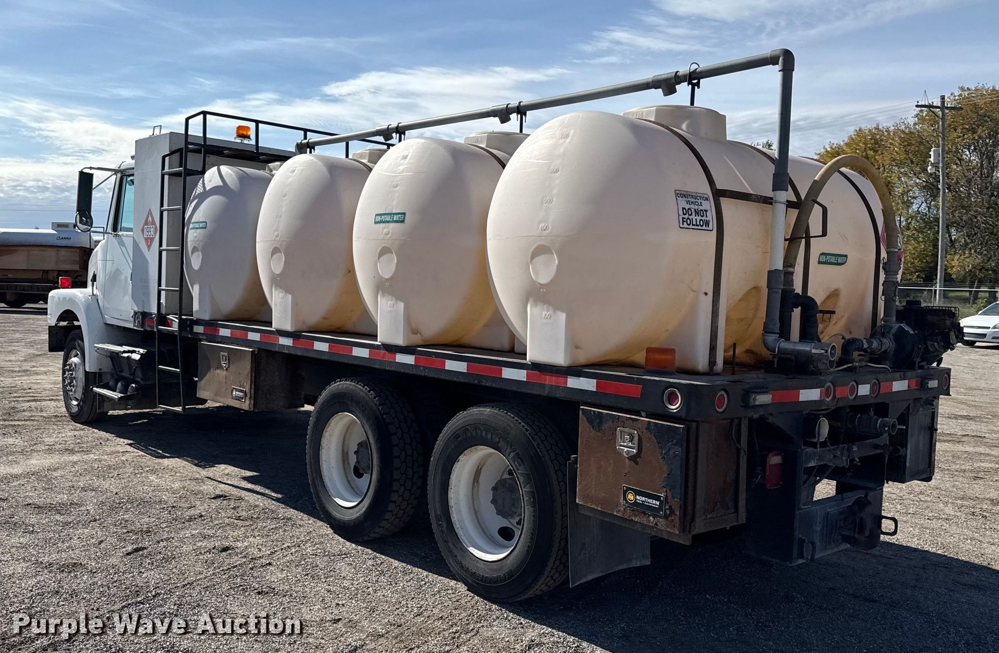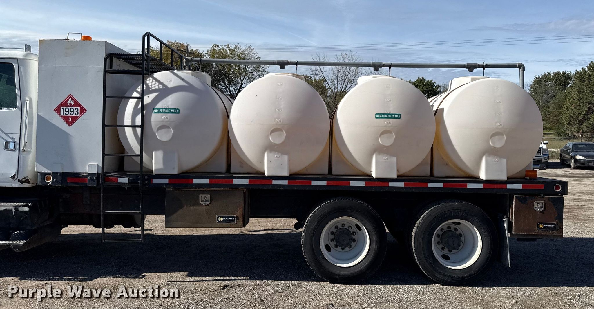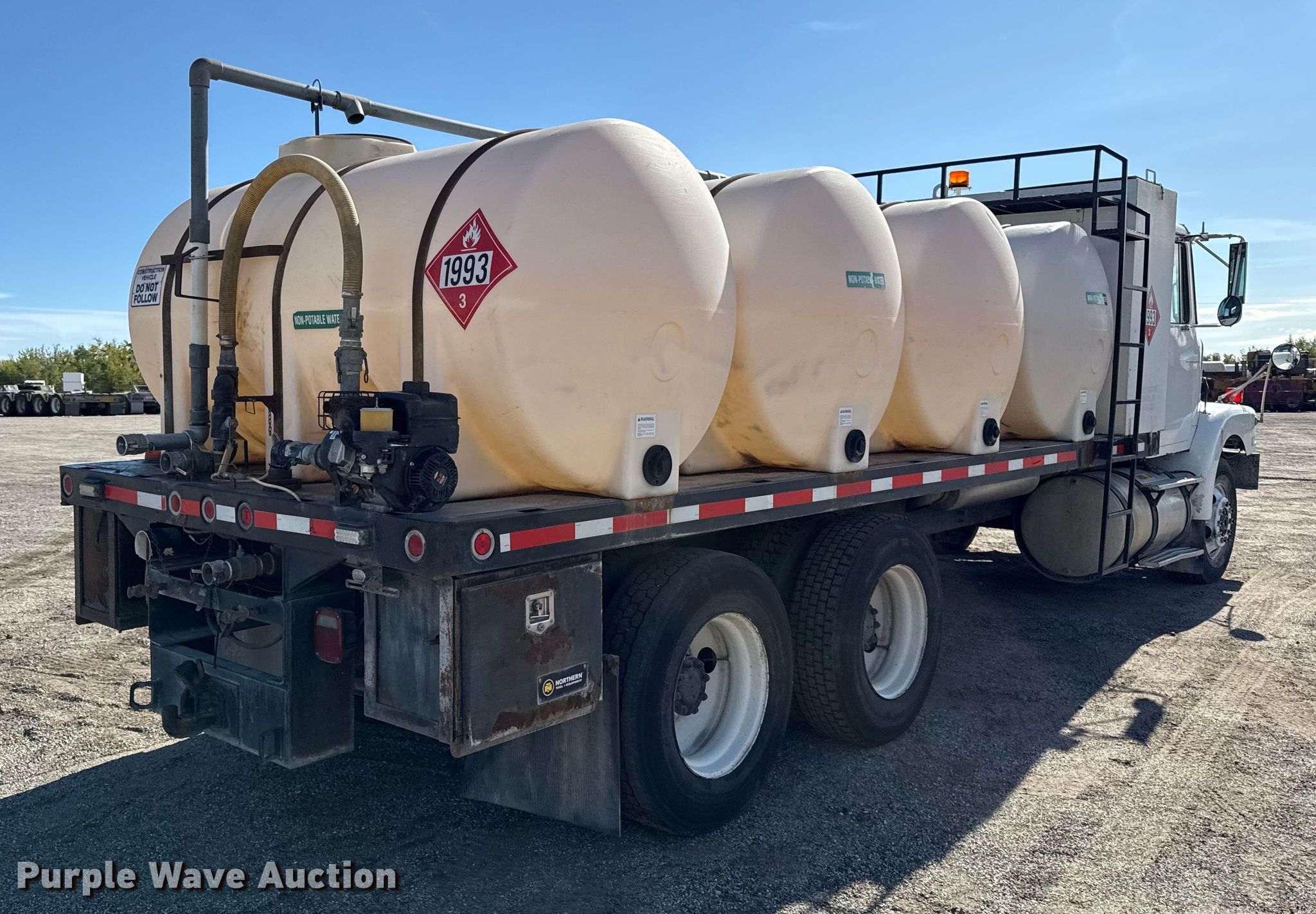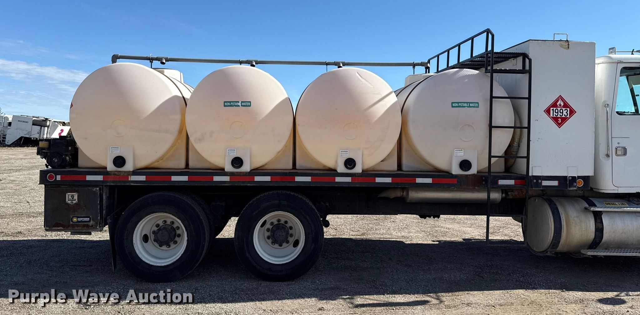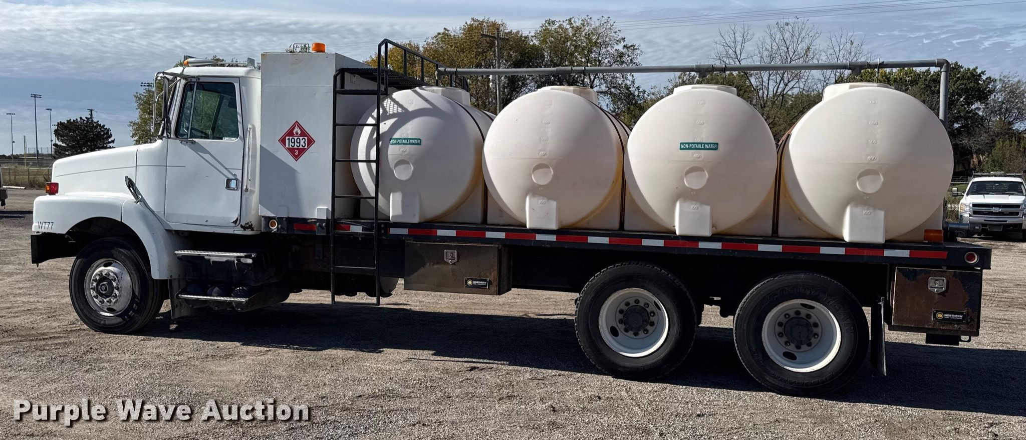 1997 Volvo WG flatbed truck. Miles: 792,308 on odometer, VIN: 4VGJDARF1VN858052. Engine Detroit Diesel, Displacement: 11.1L, Cylinders: 6, Fuel type: Diesel. Transmission Manual. Chassis Axles: Tandem, Differential lock: Inter-axle, Suspension: Air, Brakes: Air. Interior AC, Heat, Heated mirrors, Cruise control. Features Bed Flatbed, Length: 20' 6", Width: 96", (4) poly tanks, * Capacity: 750 gallons, Diesel fuel tank. Tires Size: 295/75R22.5. Notes Dash warning indicator: Check engine, Drivers side interior door handle damaged. Kansas title. Mileage has not been verified. Exempt will be written in the odometer disclosure on the title. Title distribution may be delayed up to 14 days from verification of funds. Dustrol Inc... Towanda, KS 67144