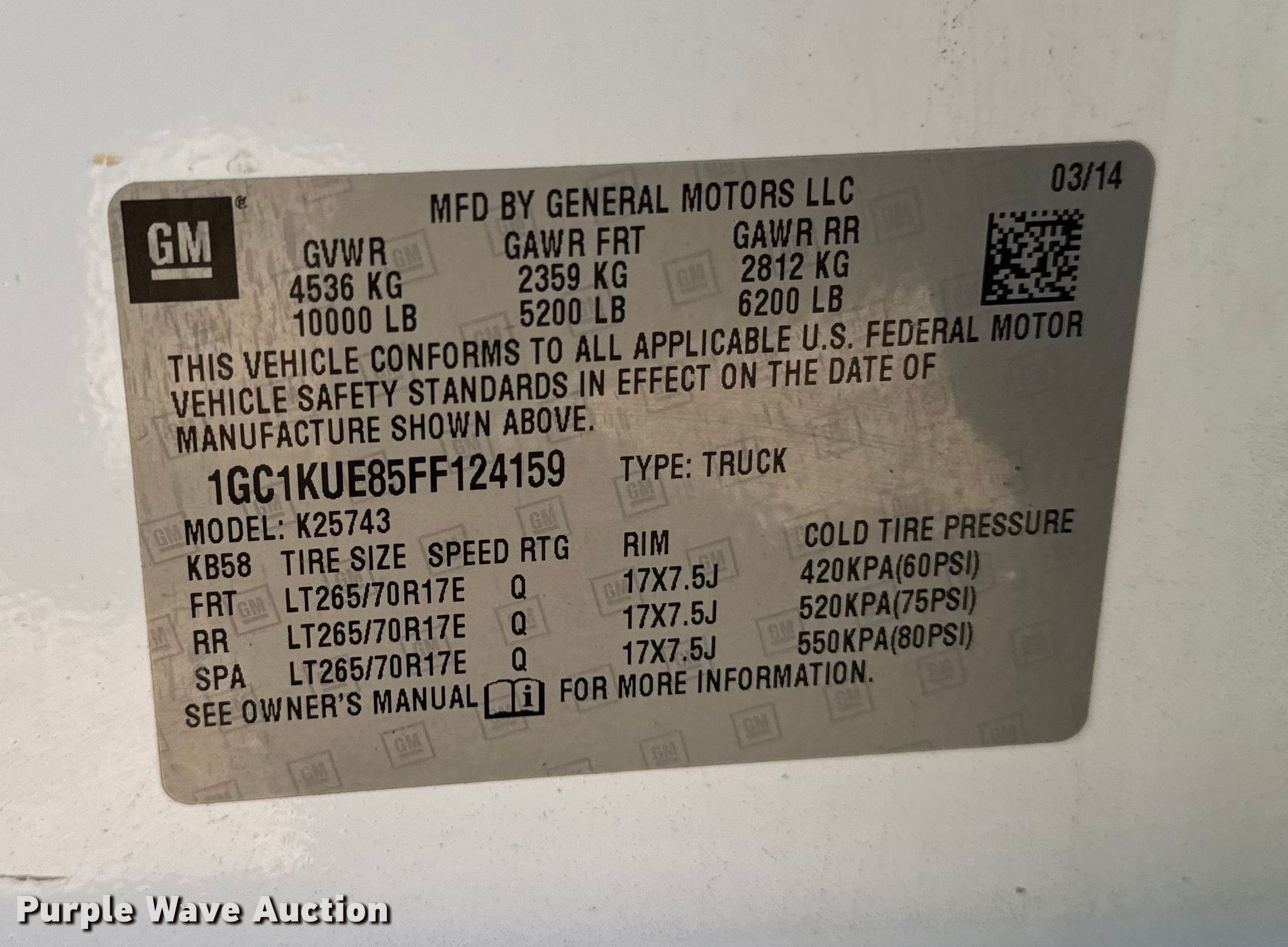 • VIN: 1GC1KUE85FF124159