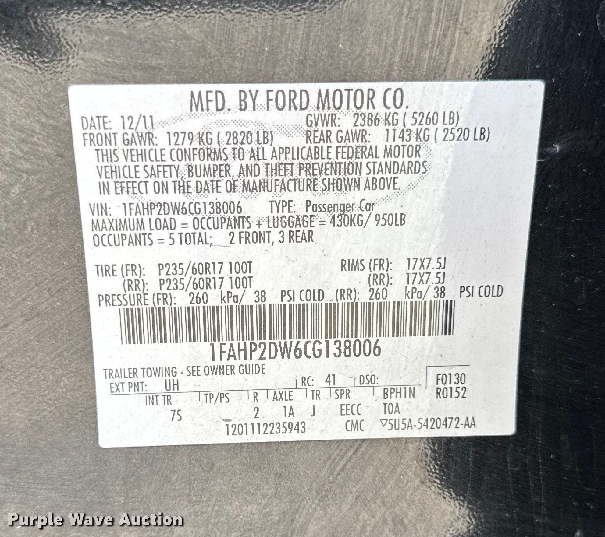 - VIN: 1FAHP2DW6CG138006