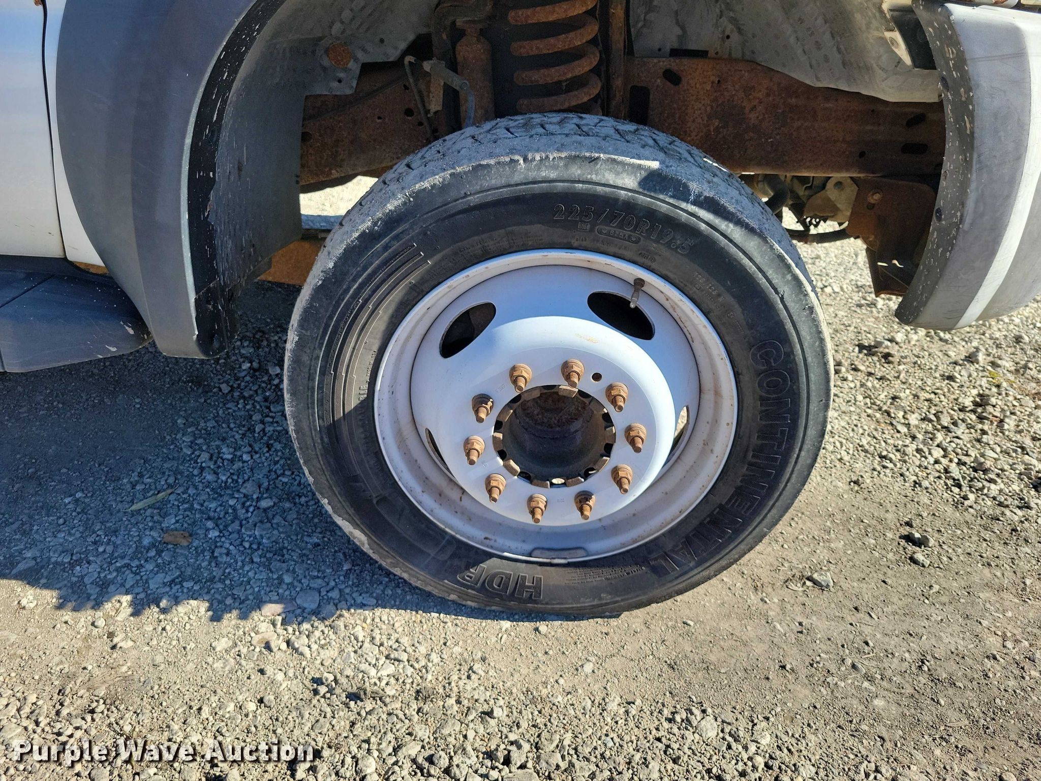 2006 Ford F550 Super Duty flatbed truck. Miles: 113,066 on odometer, VIN: 1FDAF56Y96EA76580. Engine Displacement: 6.8L, Cylinders: 10, Fuel type: Gas. Transmission Automatic. Chassis Axles: Single, Suspension: Spring, Brakes: Hydraulic, GVWR: 17,950 lbs, Wheelbase: 165". Interior AC, Heat, Auxiliary controls, Brake controller. Features Bed Flatbed, Rugby, Serial: 350538, Length: 11' 5", Width: 96". Tires Size: 225/70R19.5. Notes Dash warning indicator: ABS. Iowa title. Title distribution may be delayed up to 14 days from verification of funds. Burns Electric. Des Moines, IA 50313