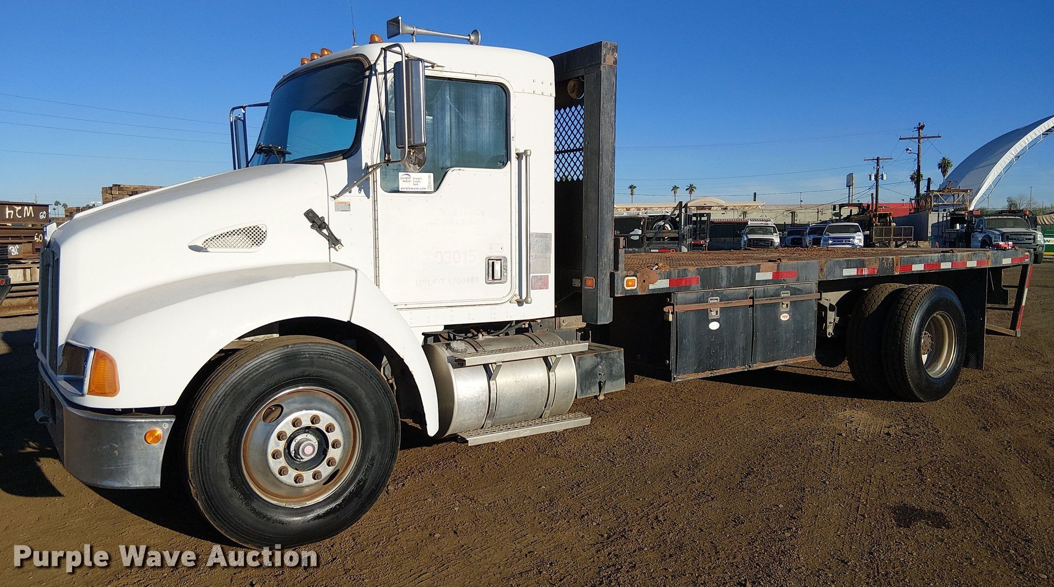 Purple Wave is selling a used Flat Bed Truck in Arizona. This item is a 2001 Kenworth T300 flatbed truck with the following: Miles: 291,523 on odometer, VIN: 2NKMHD7X71M876765, Unit #: RE03015