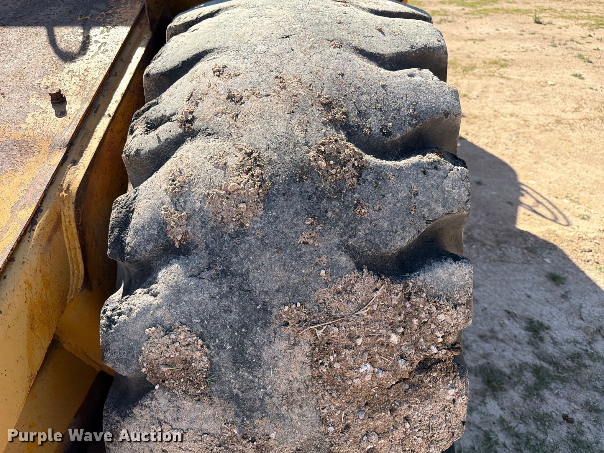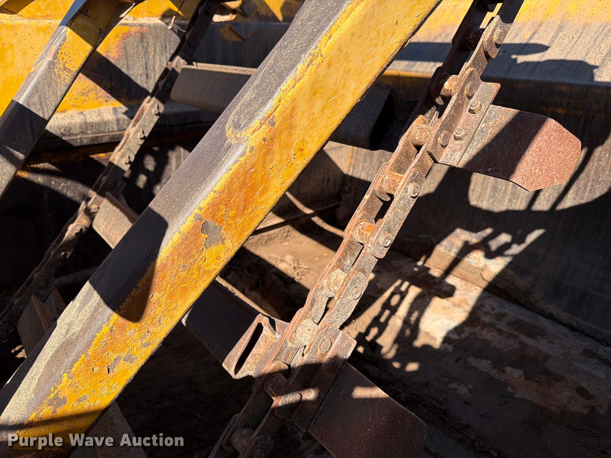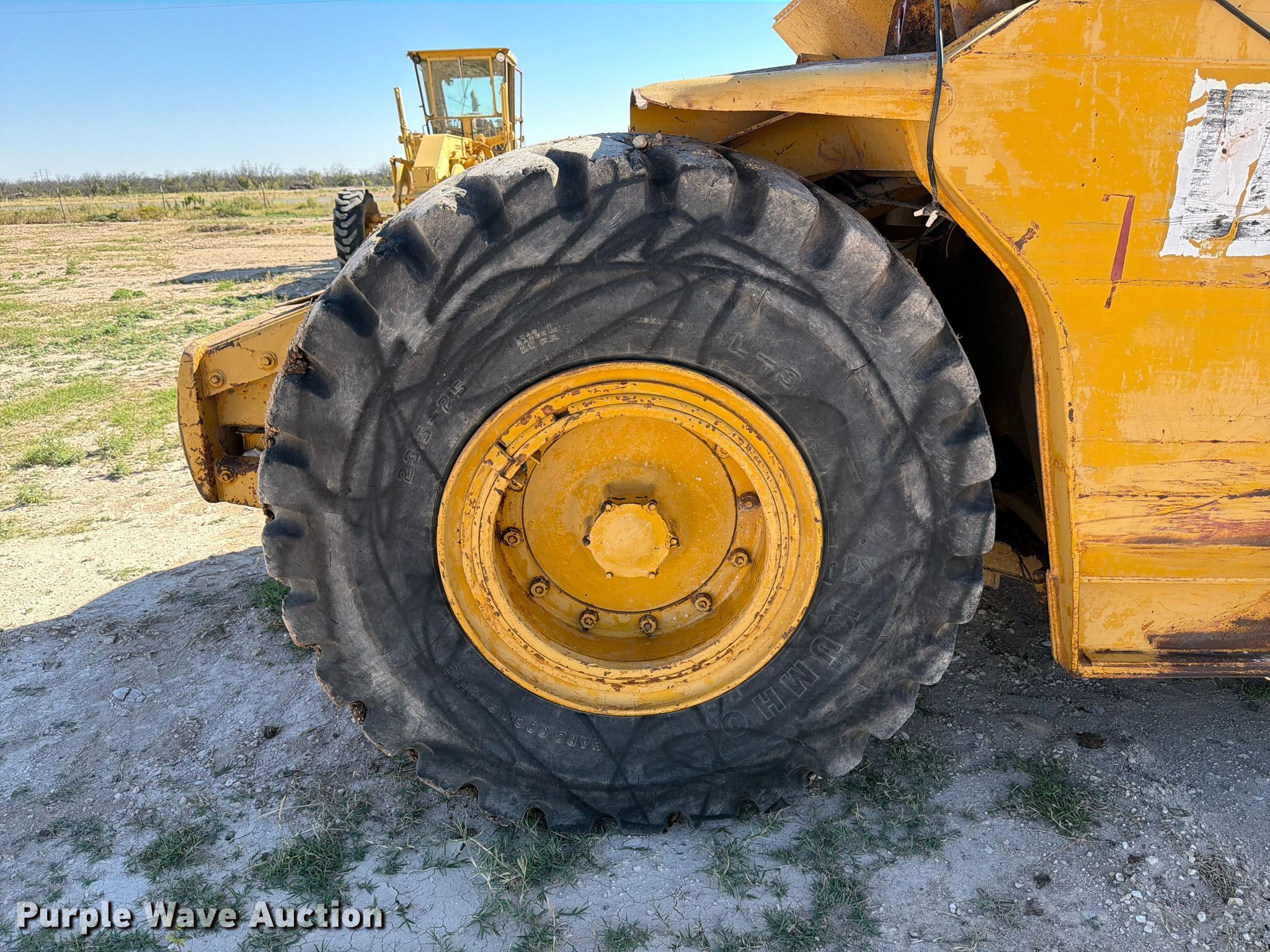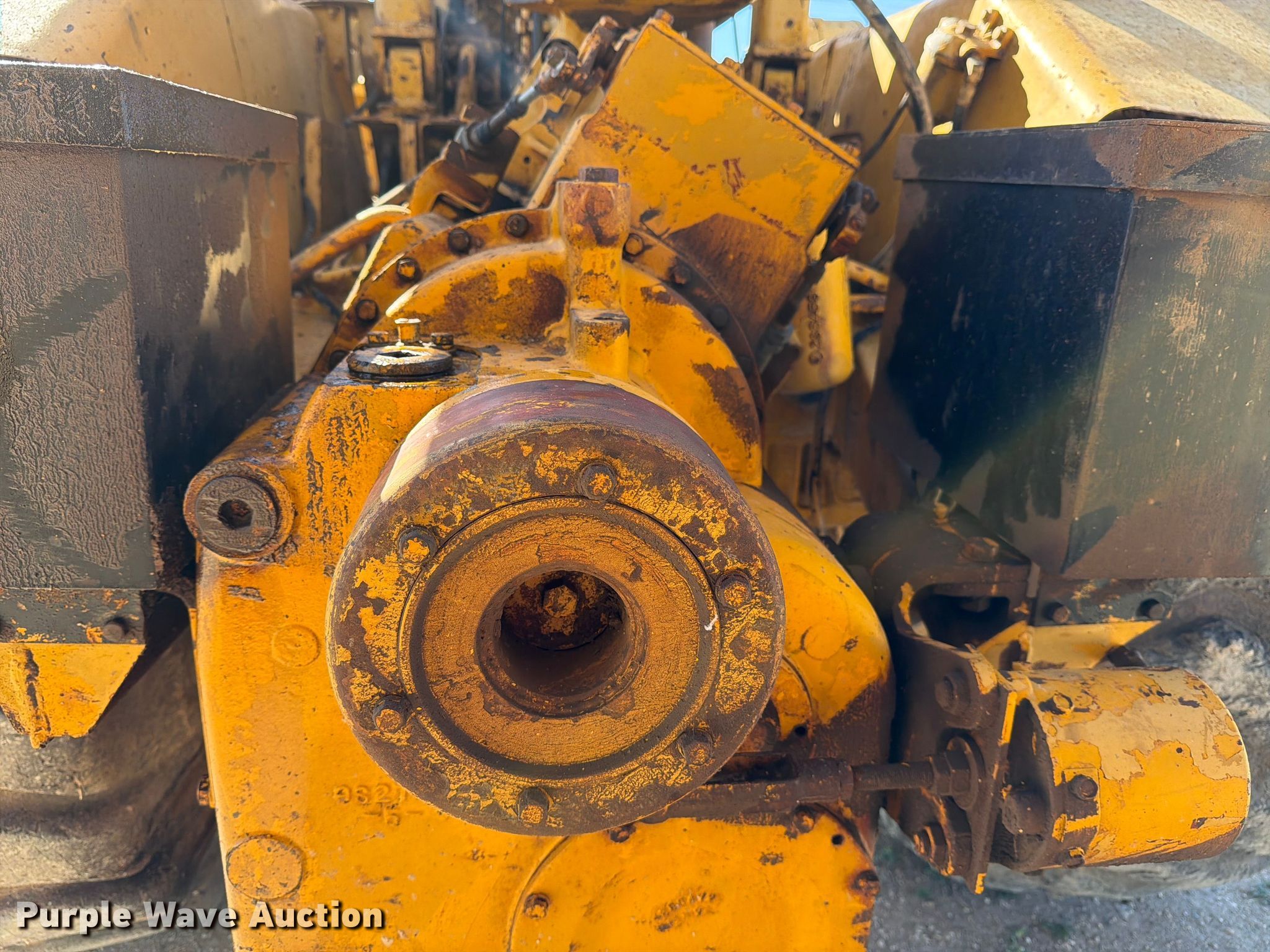 1972 Caterpillar 613 elevating scraper. Hours: 889 on meter, Serial: 72M1373. Engine Caterpillar 3160, Cylinders: 8, Fuel type: Diesel. Transmission Powershift, 4F - 2R. Chassis Brakes: Air. Operators station OROPS. Features Reversible cutting edge, Elevator reverse, Hydraulic lift, Scraper controls: Lever controls No. of controls: 3, Rear push block. Tires Size: 23.5-25. Notes Hydraulic cylinder leak. Roger's Motorgrader Service. San Angelo, TX 76905