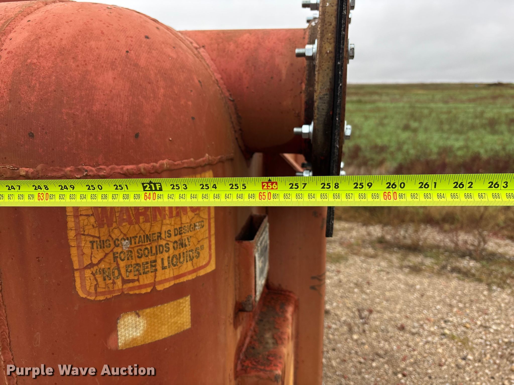 Wastequip liquid roll-off container. VIN: 4339, Dimensions: 21'6" L x 84" W x 72", Capacity: 25 cu.yd.. Jackson Flats Washout. 901 South Hedville Road. Salina, KS 67401