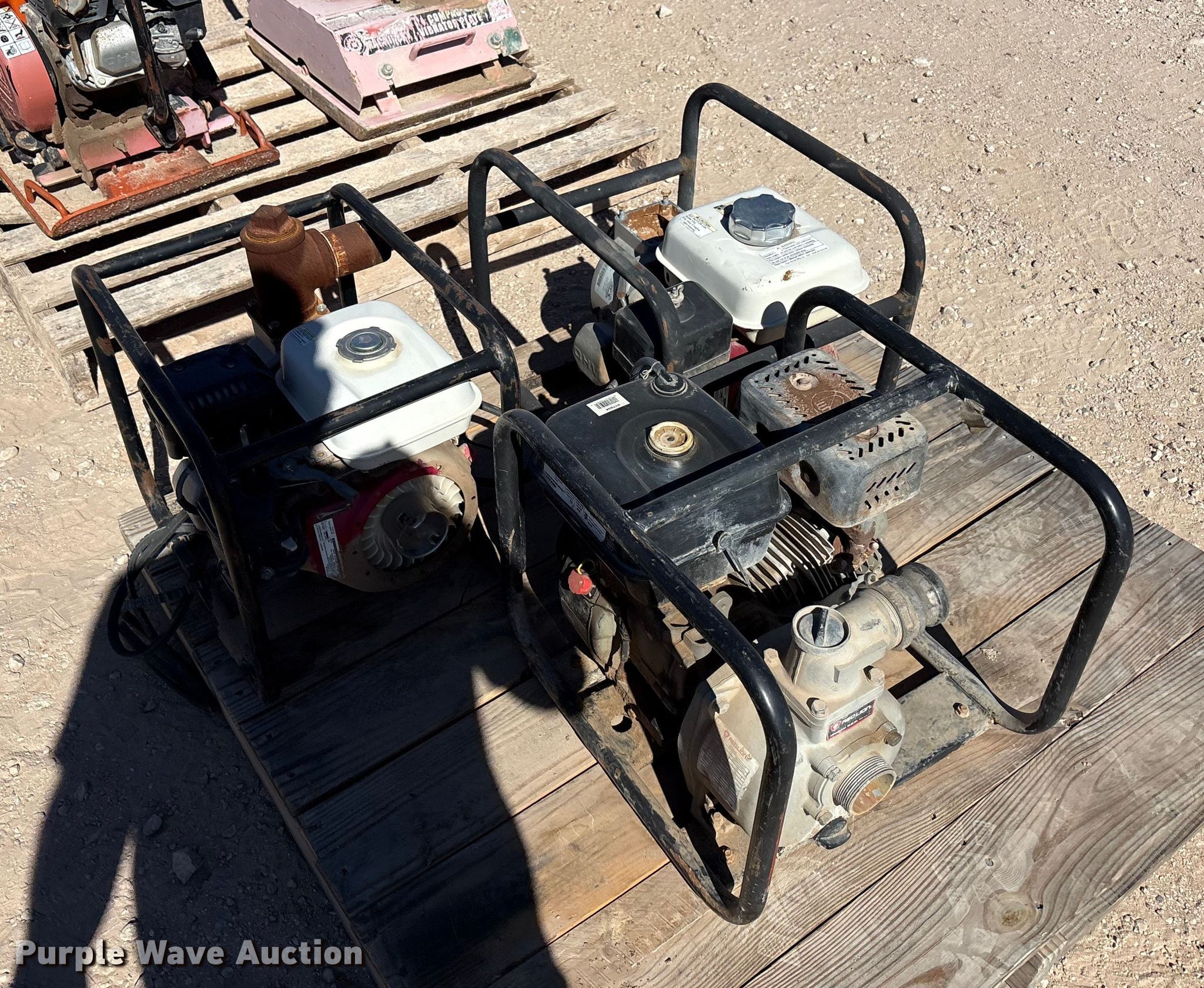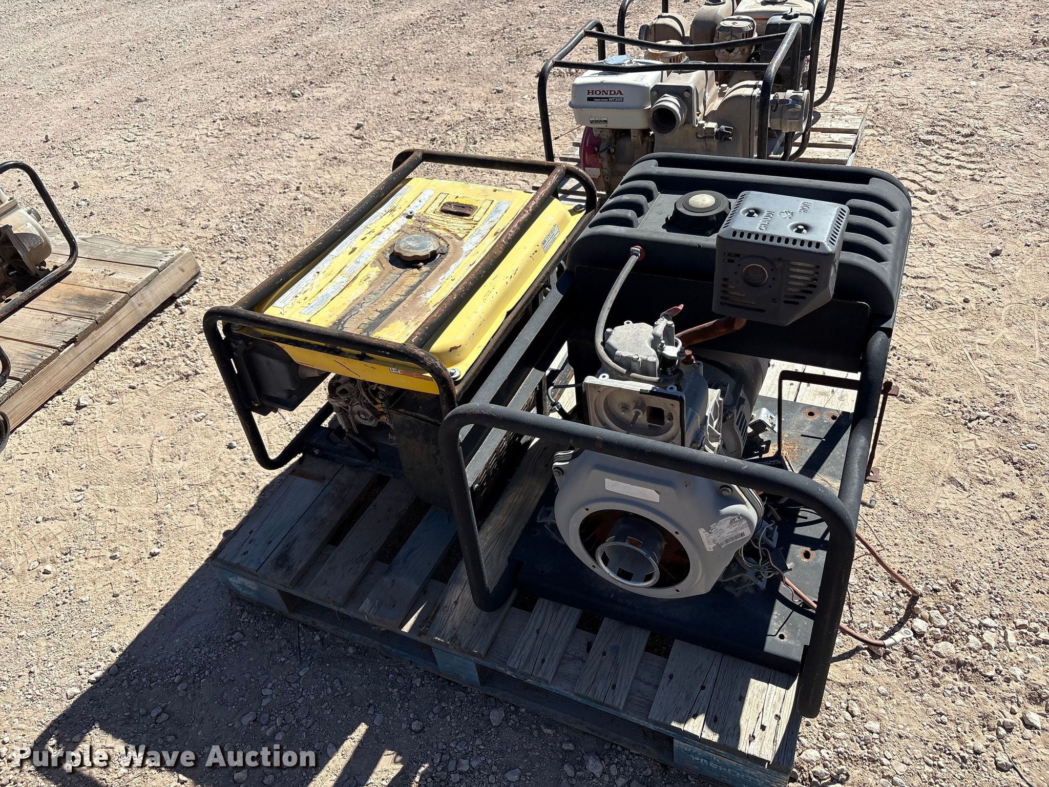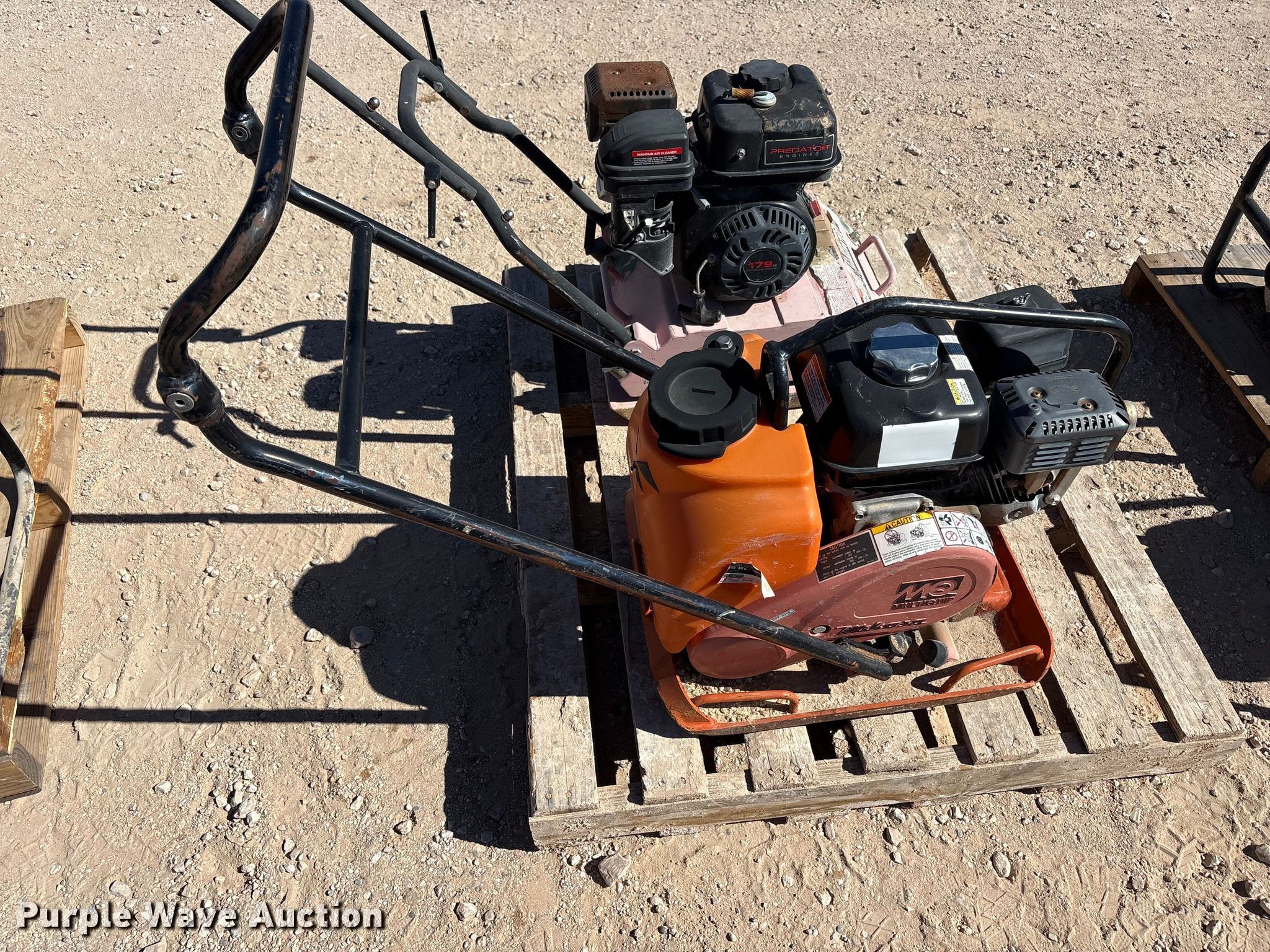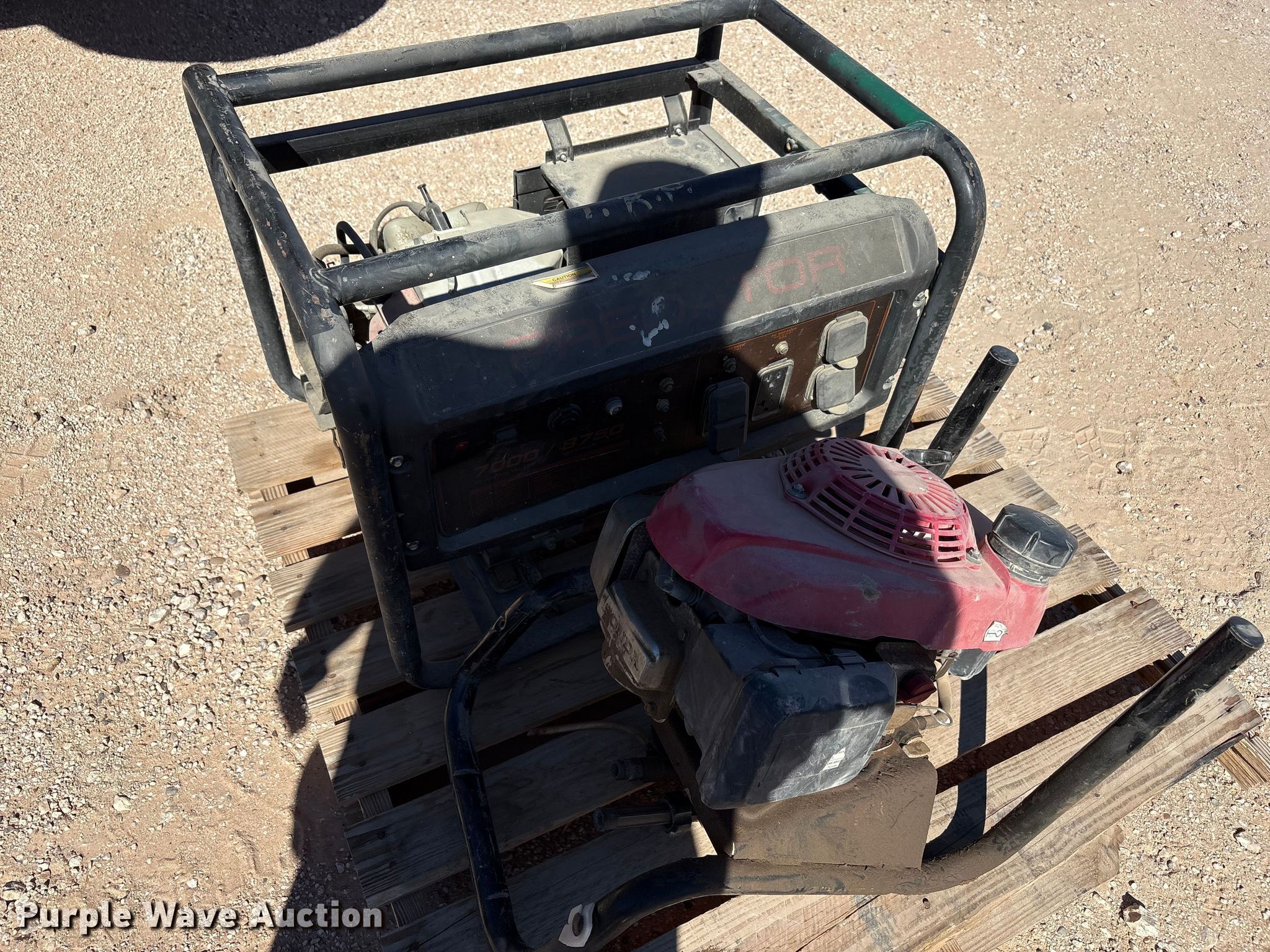 Purple Wave is selling a used Tools in Texas. This item is a Tools with the following: (8) generators, (8) water pumps, (2) plate compactors, Pressure washer