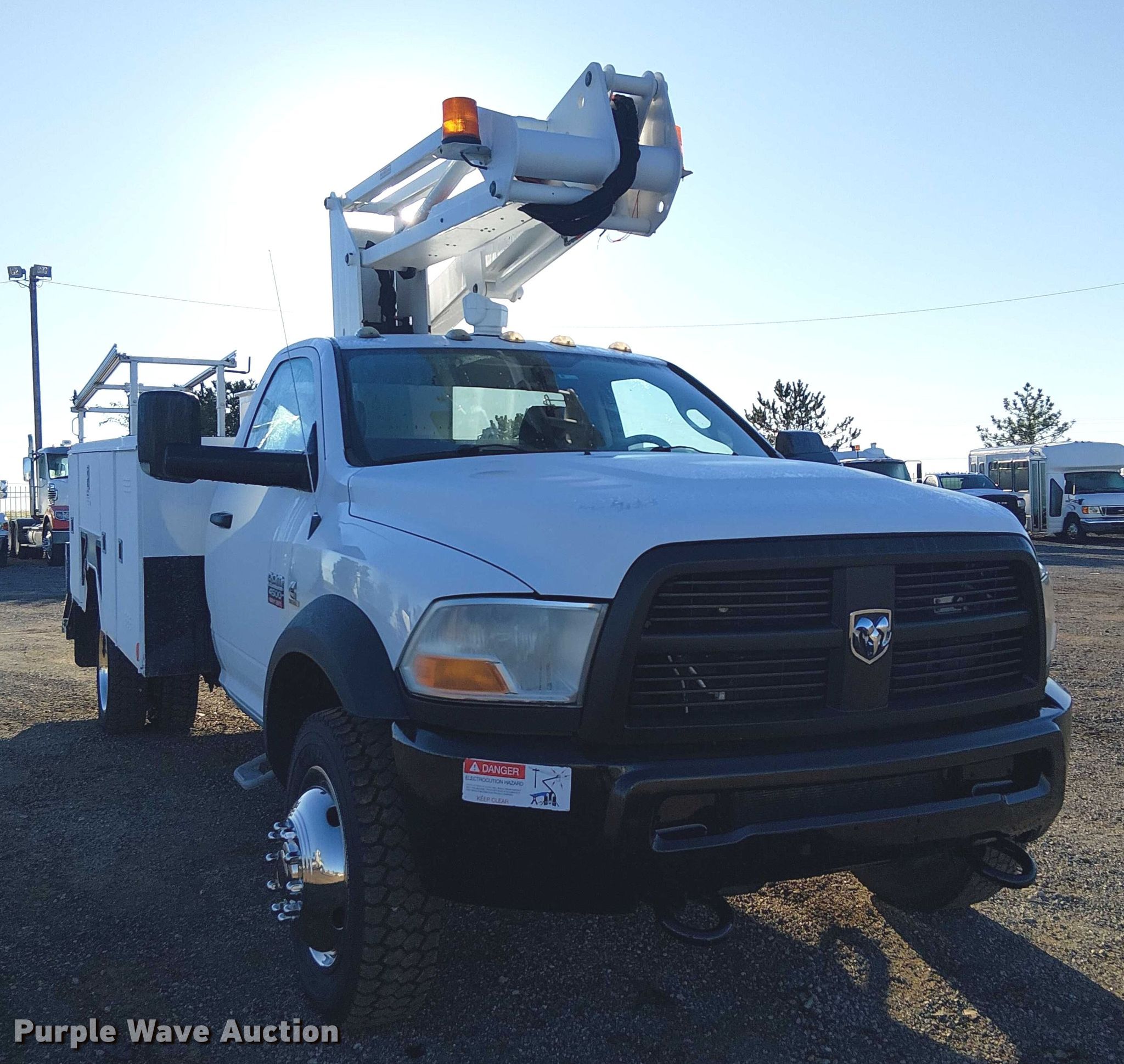 Purple Wave is selling a used Bucket Truck in Oklahoma. This item is a 2012 Dodge Ram 4500HD bucket truck with the following: Miles: 181,533 on odometer, VIN: 3C7WDKBL9CG213520