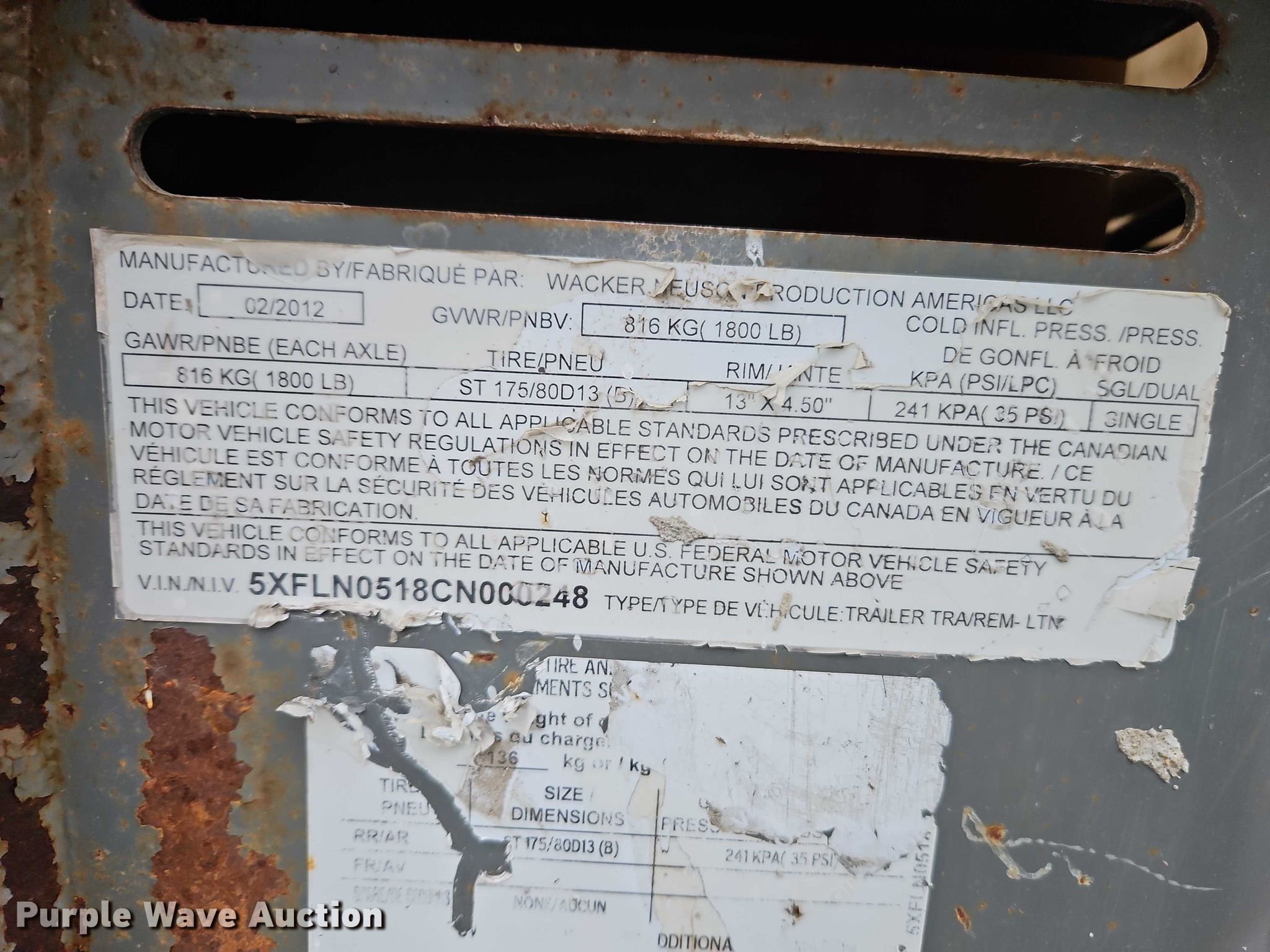 2012 Wacker Neuson LTN6 light plant. Hours: 3,171 on meter, VIN: 5XFLN0518CN000248. Engine Kohler, Displacement: 1.028L, Cylinders: 3, Fuel type: Diesel. Features Light plant Bulbs: 4, Hoist: Manual, Stabilizers. Trailer 15' L x 49" W, Ball hitch size: 2 5/16", Suspension: Torsion, Axles: Single, Tire size: 175/80R13, GVWR: 1,800 lbs, GAWR: 1,800 lbs. This is worksite support equipment and will not come with a title. Transfer of ownership documentation will be a bill of sale. Bedrock Concrete LLC. Spring Hill, KS 66083
