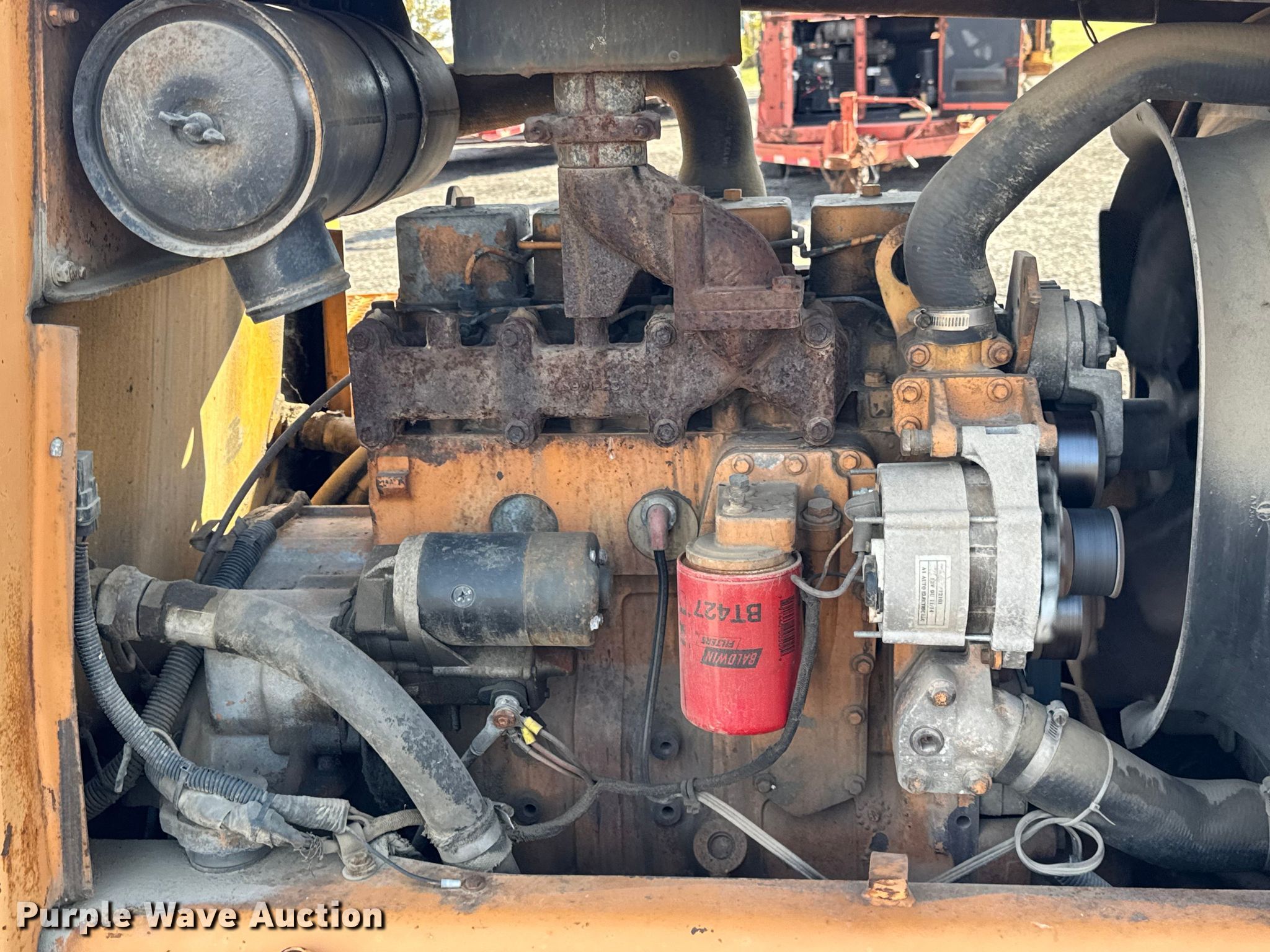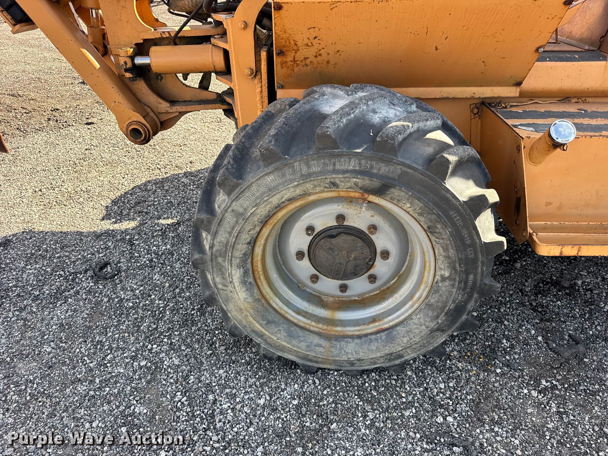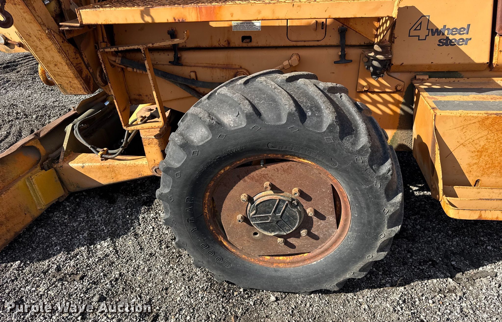 1989 Case 760 vibratory cable plow. Hours: 2,261 on meter, Serial: JAF0023094. Engine Case 4-390, Serial: 44409159, Cylinders: 4, Fuel type: Diesel. Transmission Hydrostatic. Chassis Four wheel drive, Four wheel steer. Operators station OROPS. Features Vibratory plow Depth: 48", Backhoe Bucket width: 18", Backfill blade Width: 81". Tires Size: 38x18.00-20. Notes Non-operational front left outrigger hydraulic valve. EquipmentCity LLC. Clinton, IL 61727
