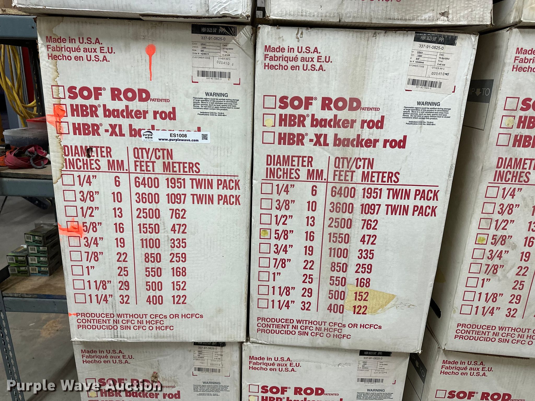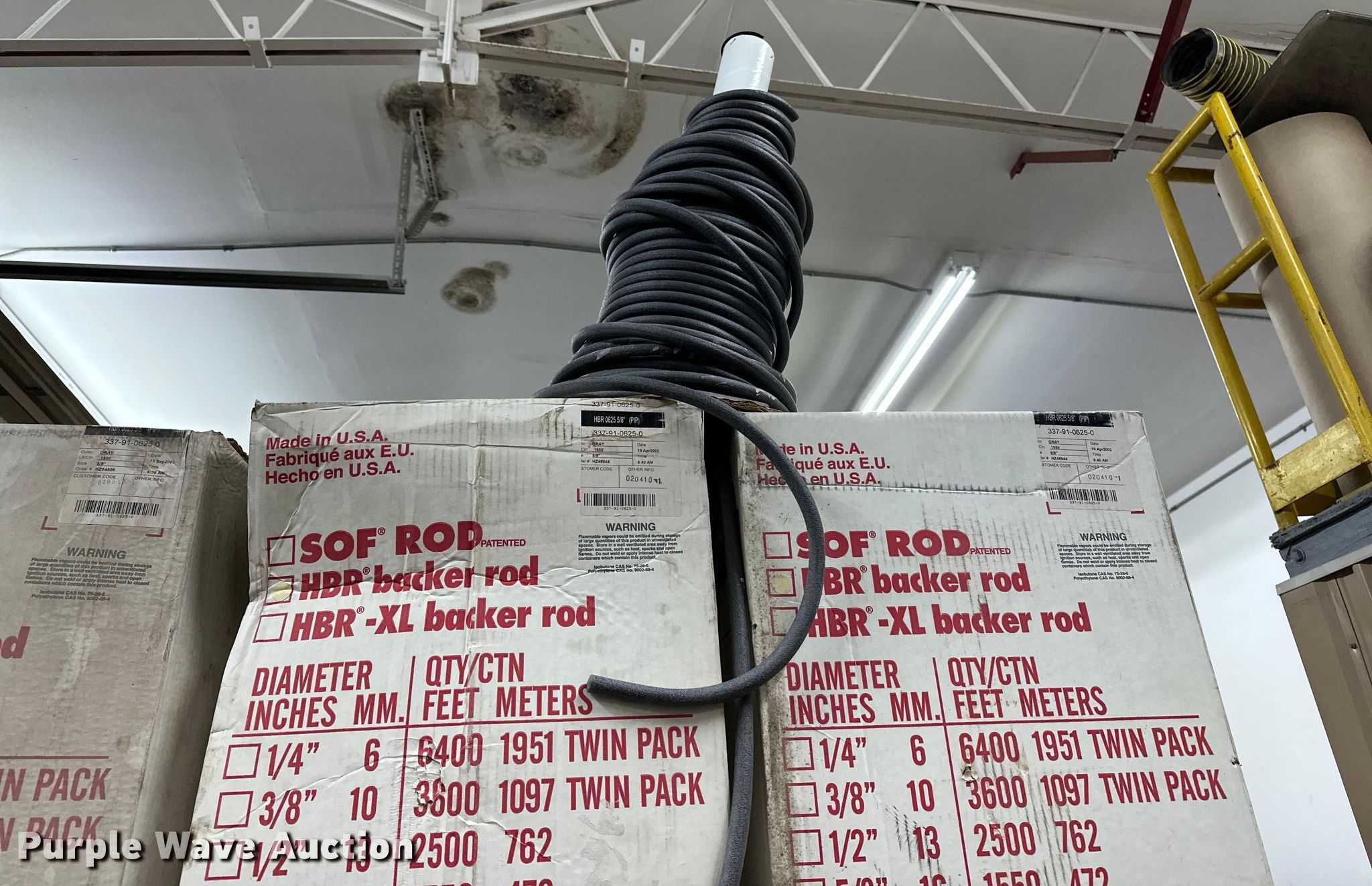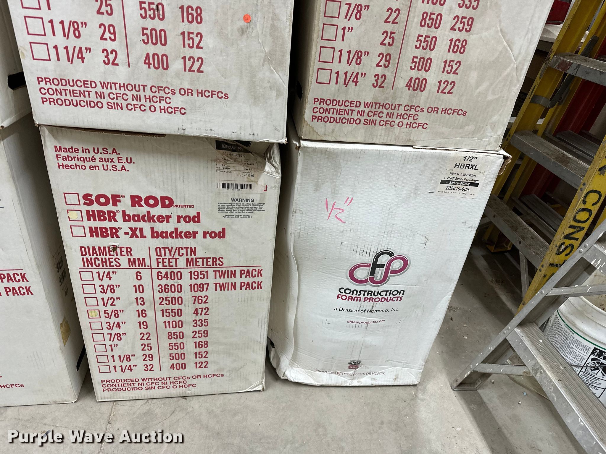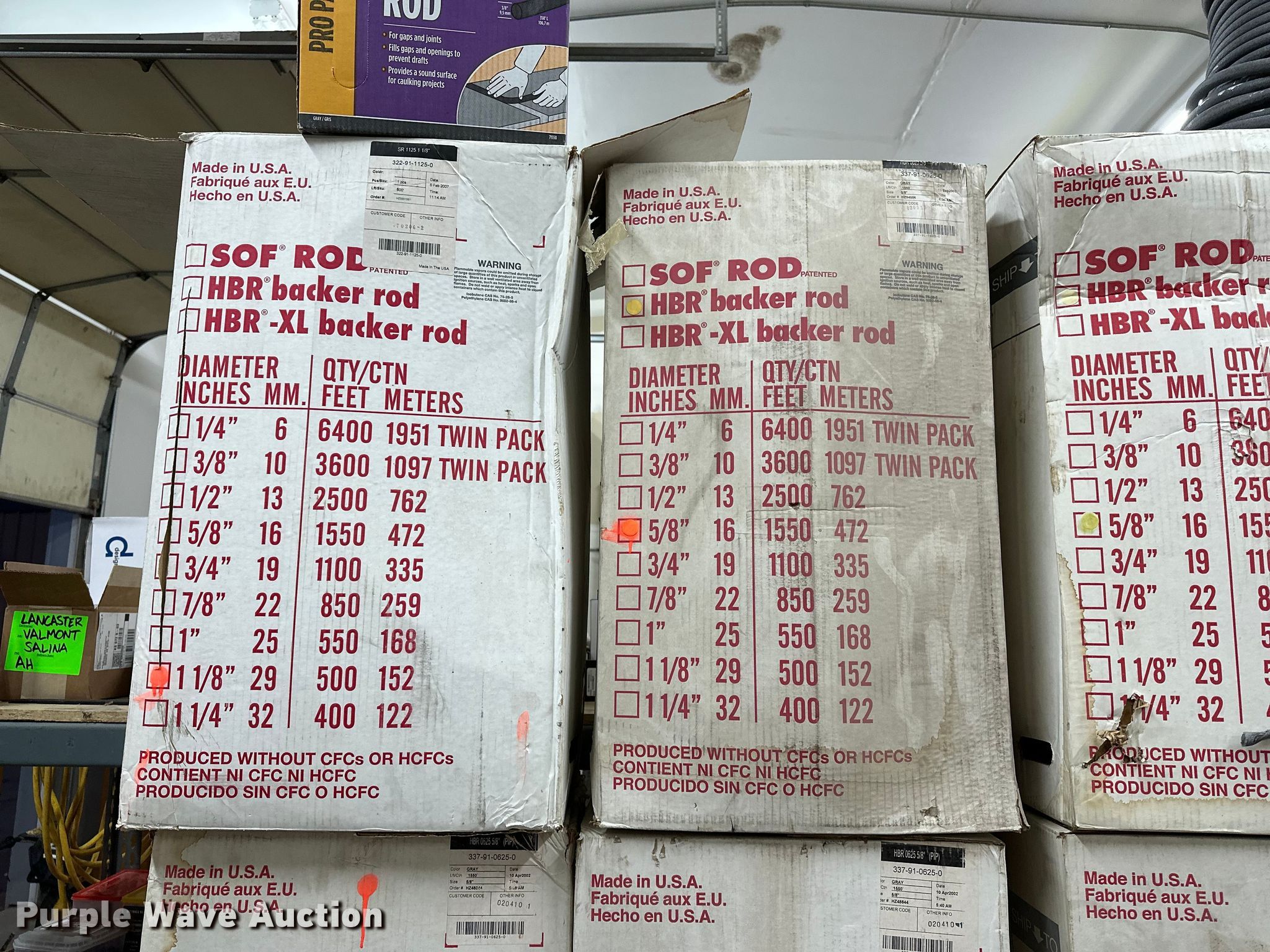 Purple Wave is selling a used Tools in Kansas. This item is a (12) boxes of backer rod with the following: Box of 1 1/8", Box of 1/2", (10) boxes of 5/8"