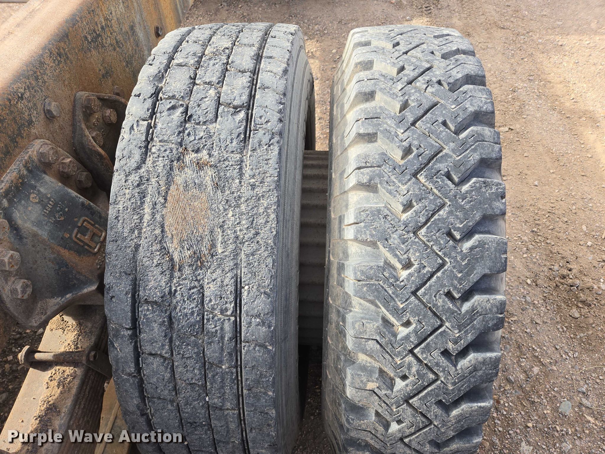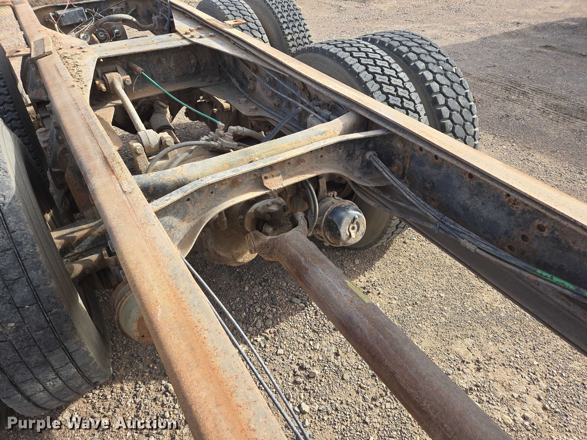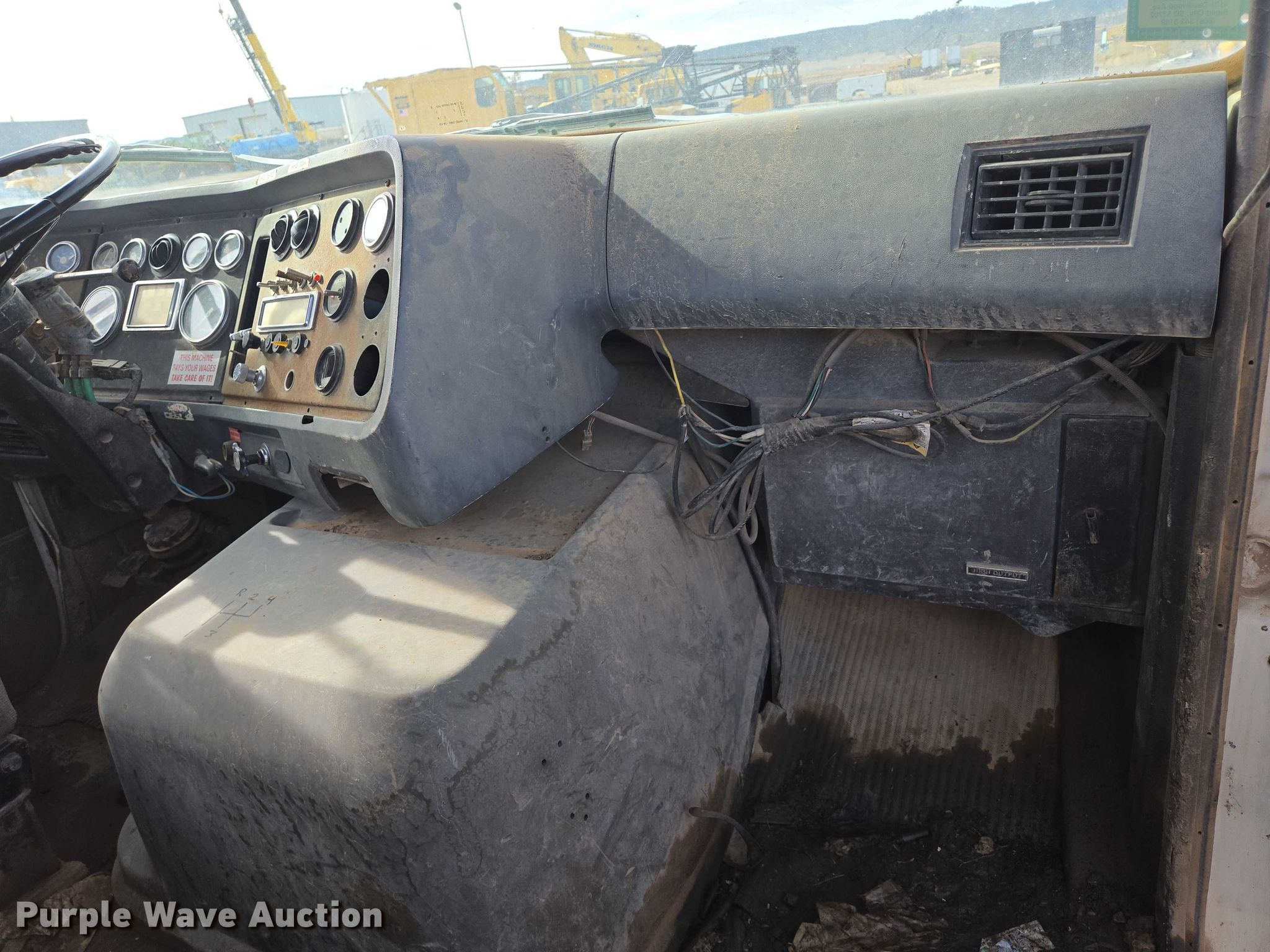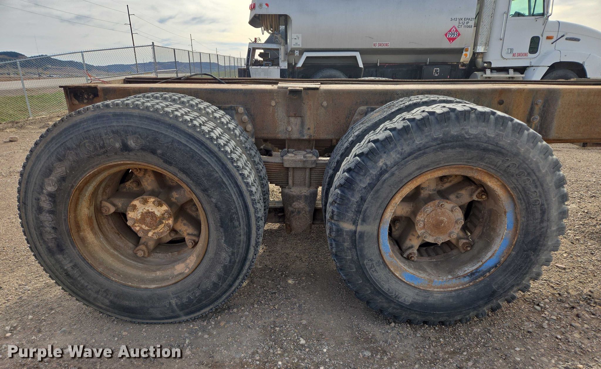 1988 Ford LNT9000 truck cab and chassis. Miles: 598,847 on odometer, Hours: 3,236 on meter, VIN: 1FDYW90X8JVA06194. Engine Caterpillar 3406, Displacement: 14.6L, Cylinders: 6, Fuel type: Diesel, HP: 310. Transmission Manual. Chassis Axles: Tandem, Differential lock: Inter-axle, Suspension: Spring over walking beam, Brakes: Air, PTO, Truck chassis: 15' 5". Interior Heat. Features Fuel tank: Dual. Tires Front: 315/80R22.5, Rear: 11R22.5, Rear: 10.00-20. Notes Rear tire issues, flat spots, Differential issues , Unit must be towed or hauled , Non-operational unit. South Dakota title. Title distribution may be delayed up to 14 days from verification of funds. Heavy Constructors, Inc. Rapid City, SD 57709