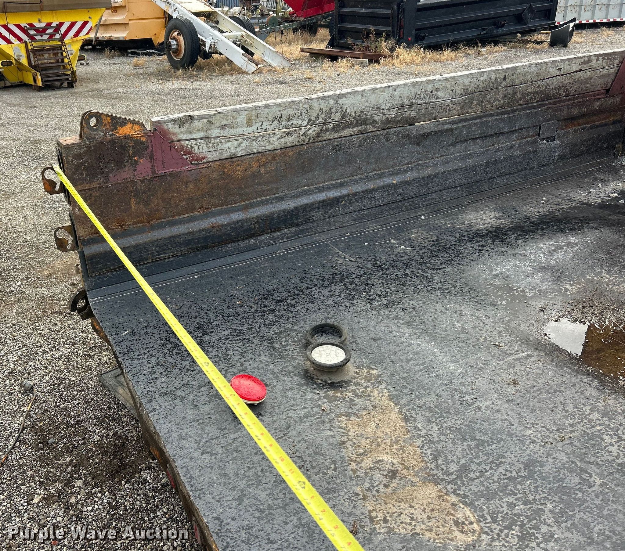 Dump bed. Features. Bed Dump bed, Length: 10', Width: 98", Side height: 27", Bed type: Steel, Ram: Single. Notes End gate missing. Higgs Welding. Dieterich, IL 62424