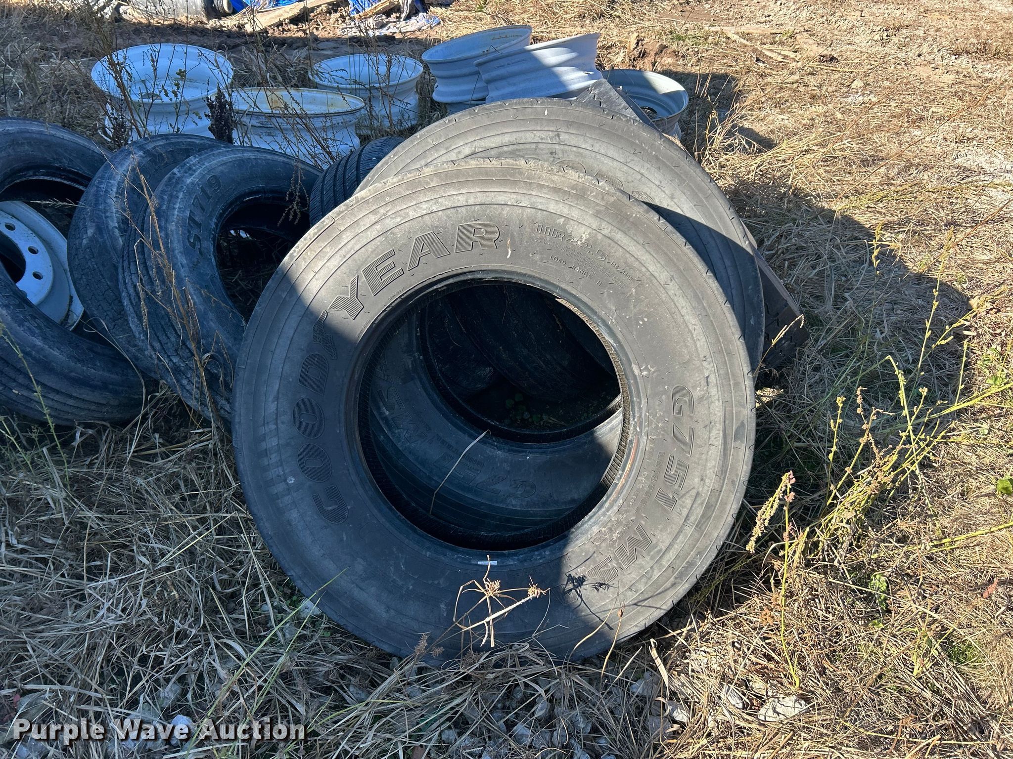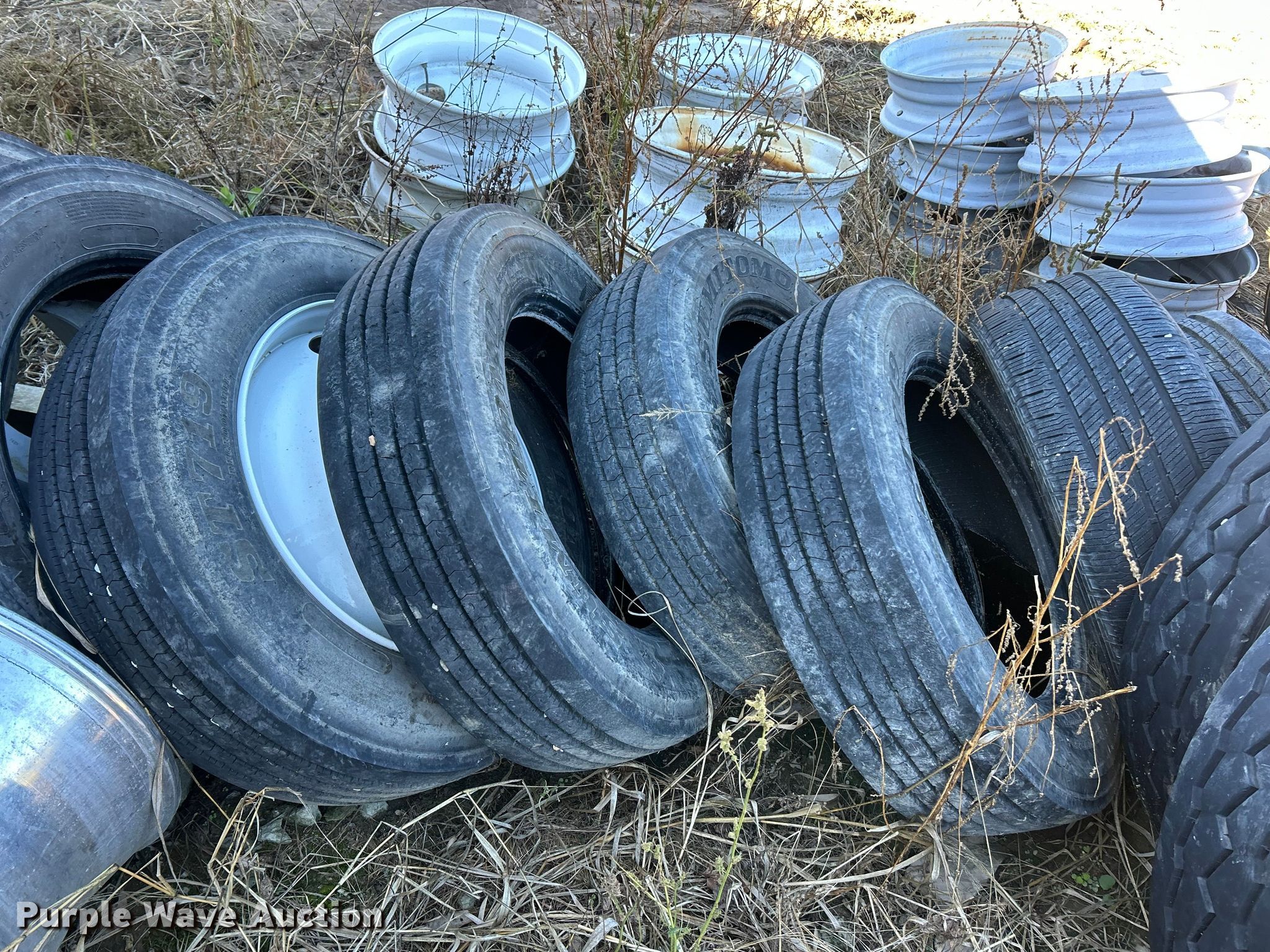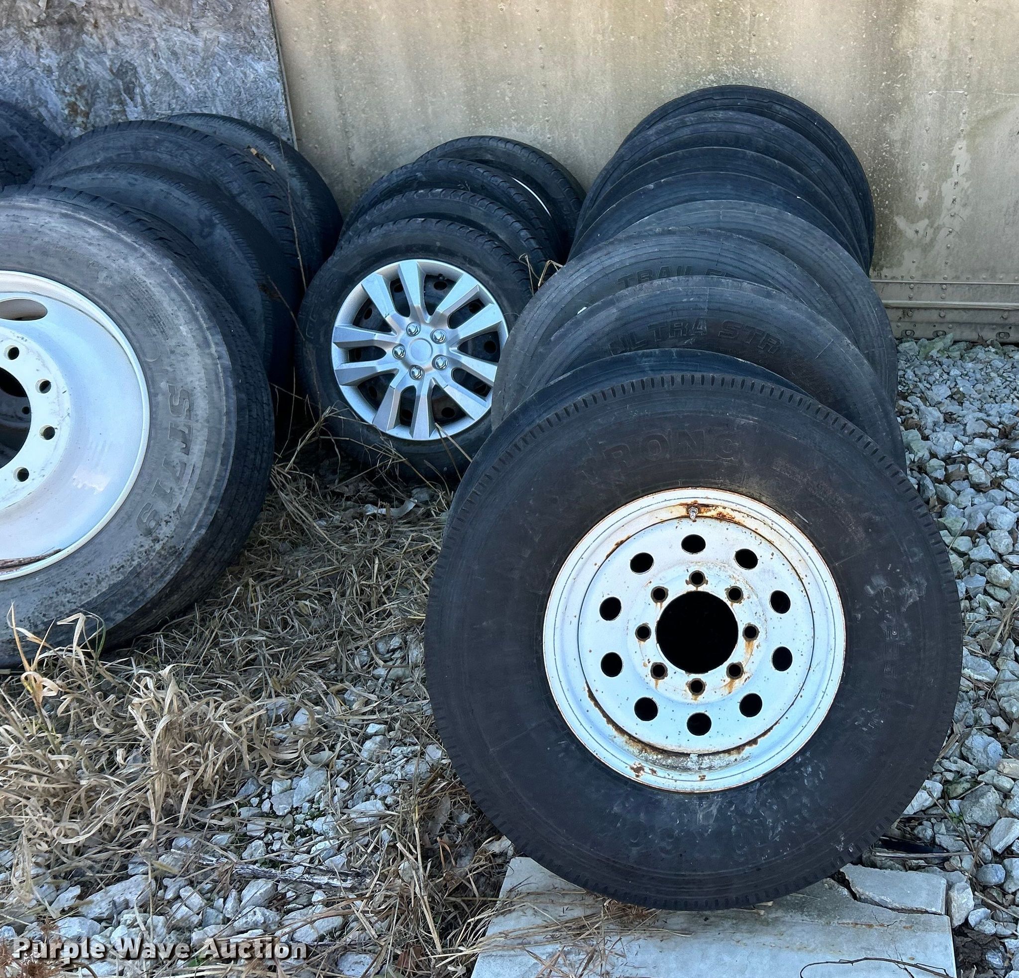 Purple Wave is selling a used Industrial Tires or Tracks in Illinois. This item is a Tires and wheels with the following: (7) 225/70R19.5, 215/75R17.5, (4) 245/75R17, 255/70R22.5, (4) 205/60R16, 235/85R16, (8) 235/80R16, (8) 295/75R22.5, (3) 445/65R22.5, (3) 11R22.5, (2) 235/75R17, (6) 255/70R22.5