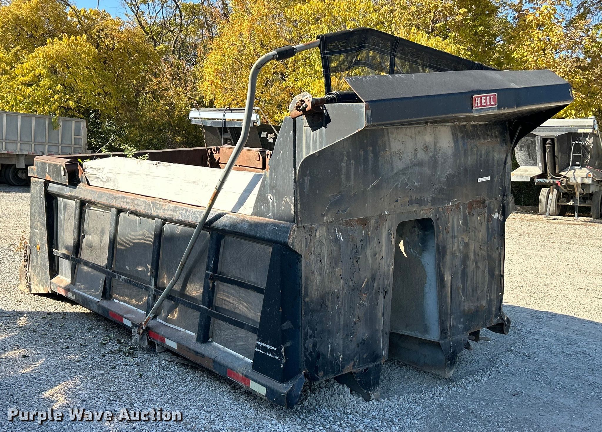 Purple Wave is selling a used Truck Part and Attach. in Illinois. This item is a Heil dump truck bed with the following: Length: 15', Width: 96", Height: 46", Side board height: 11", Bed type: Steel, End gate: Manual