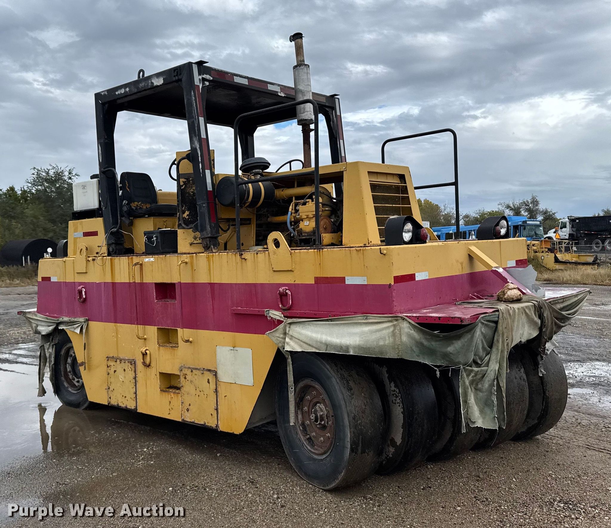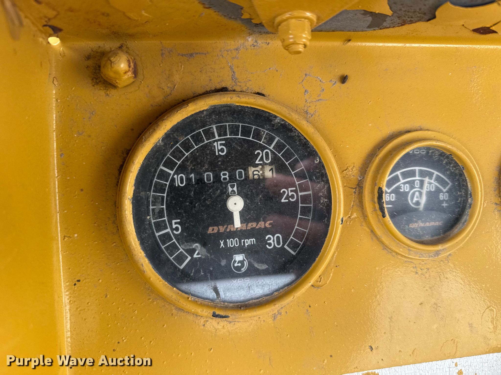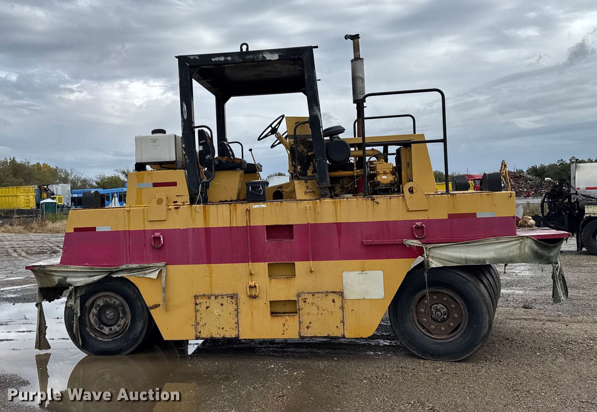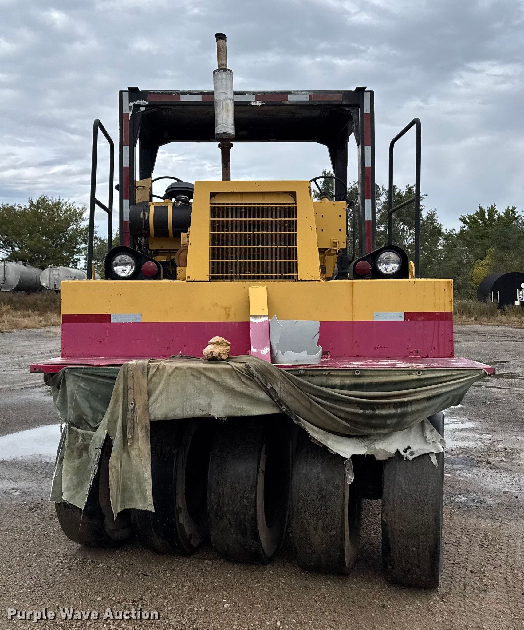 1991 Dynapac CP27 pneumatic roller. Hours: 1,081 on meter, Serial: 691B102. Engine Cylinders: 6, Fuel type: Diesel. Transmission Hydrostatic. Operators station OROPS, Vandal cover. Tires Size: 13/80R20, Quantity: 9. Alpha Milling. Salina, KS 67401
