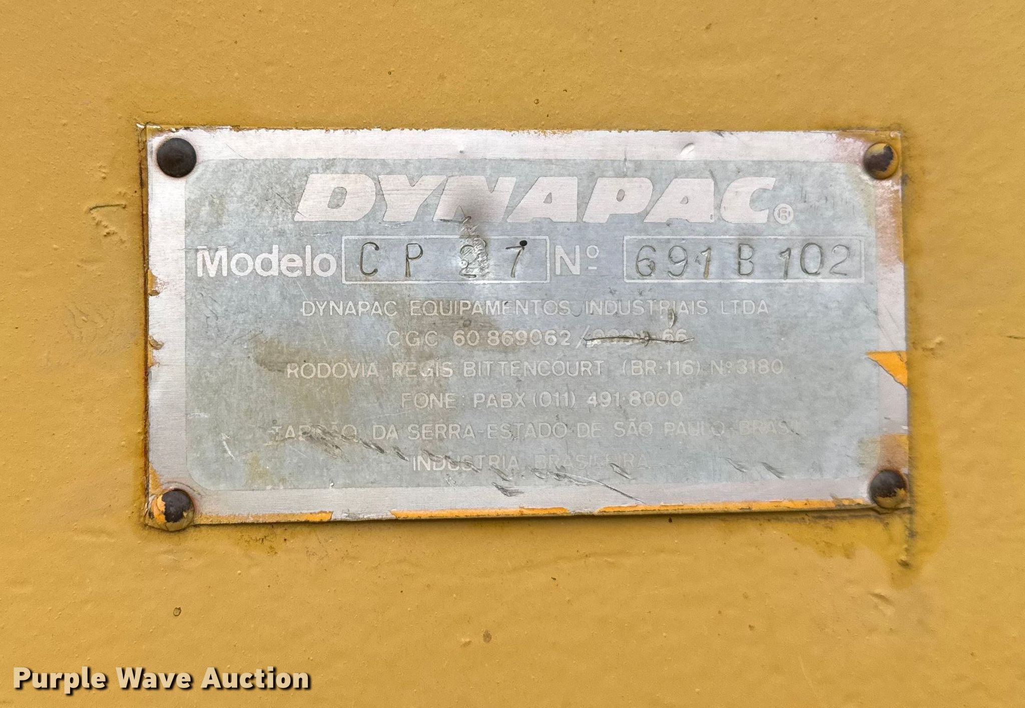 Purple Wave is selling a used Pneumatic Roller in Kansas. This item is a 1991 Dynapac CP27 pneumatic roller with the following: Hours: 1,081 on meter, Serial: 691B102