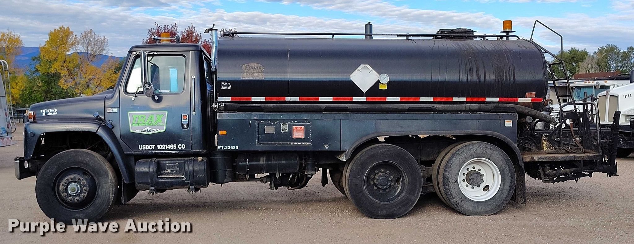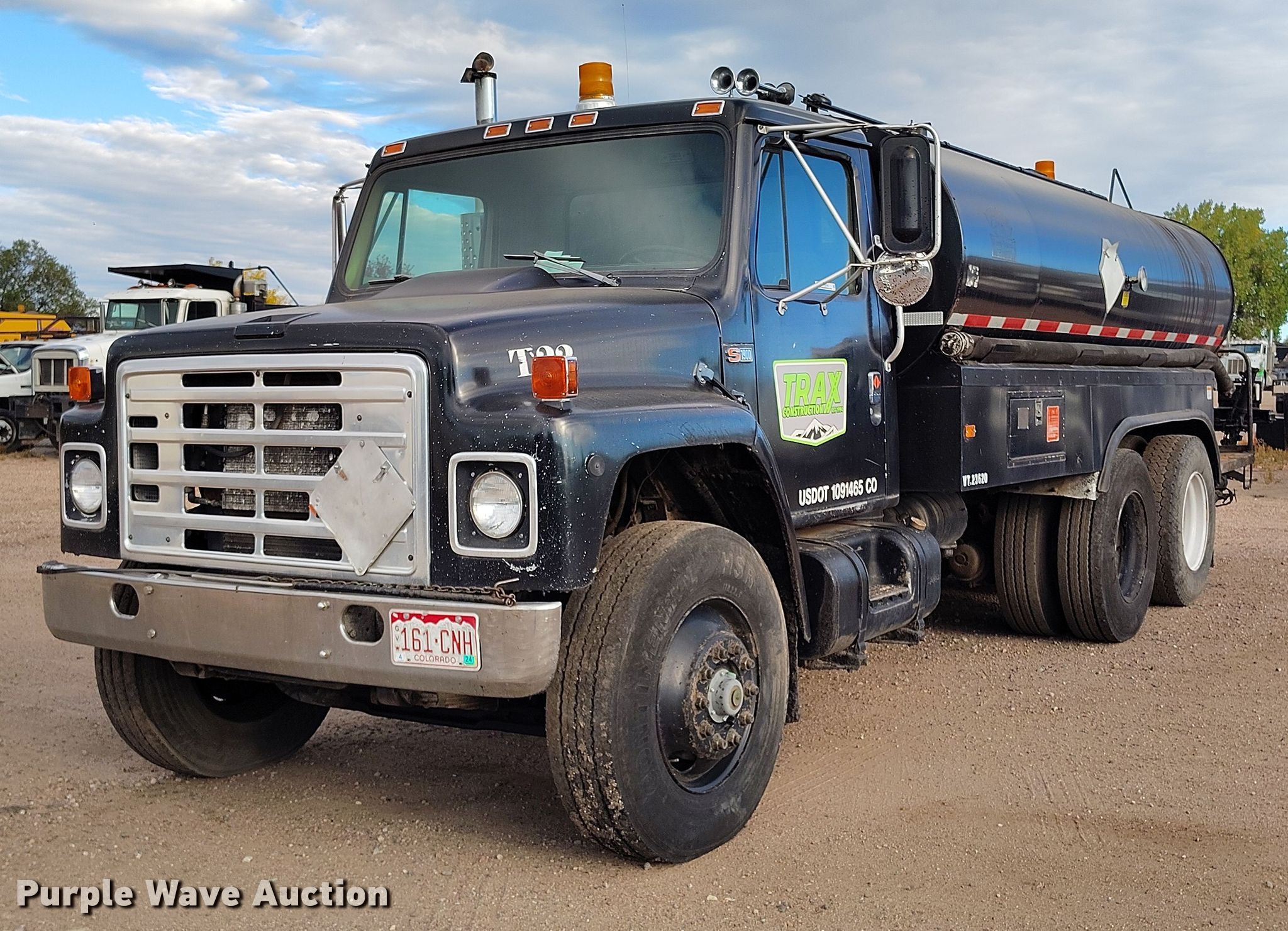 1987 International 1954 oil distributor truck. VIN: 1HTLKDDRXHH490017, Kilometers: 118,190 on meter, Unit #: T22. Engine International, Cylinders: 6, Fuel type: Diesel. Transmission Eaton Fuller Road Ranger, Manual, Speed: 13. Chassis Axles: Tandem, Suspension: Spring over walking beam, Brakes: Air, PTO, Wheelbase: 188". Interior Heat. Features Bed Etnyre BXHS, Serial: J9099, Length: 19' 10", Width: 96", Capacity: 2,594 gallons, Burner: LPG, In-cab controls, Spray boom Width: 9'', Folding, Nozzles: 29.. Tires Size: 11R22.5. Notes Jump start required during on-site data collection. Colorado title. Title distribution may be delayed up to 14 days from verification of funds. Trax Construction Inc. Colorado Springs, CO 80916
