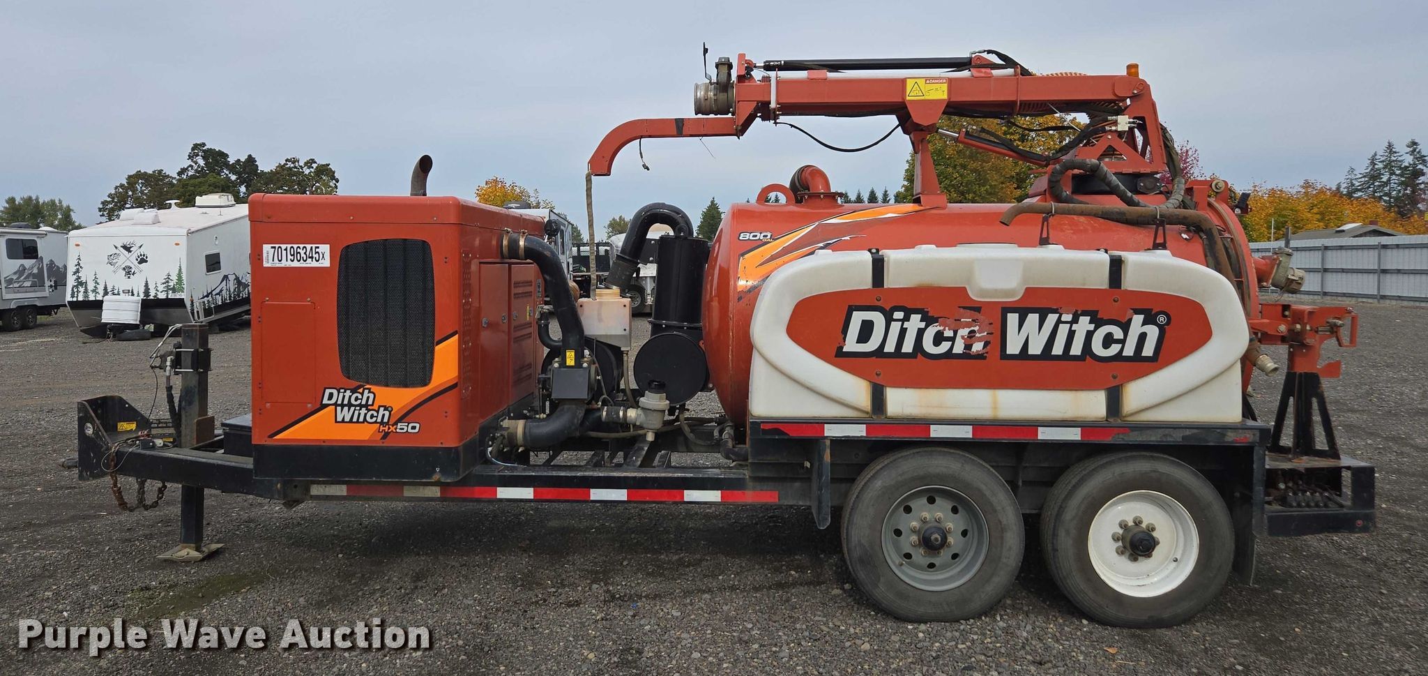 2019 Ditch Witch HX50 vacuum excavator. Hours: 2,031 on meter, VIN: 1DST722MXK1702016, Serial: DWPHX50XEK0000111, Seller lot #: 203402, Unit #: 70196345. Engine Kubota D1803, Cylinders: 3, Fuel type: Diesel. Features Spoils tank Capacity: 800 gallons, Water tank Capacity: 300 gallons, Water pump CMW, Vacuum pump Tuthill, Inlet valve size: 6", Outlet valve size: 6", Reverse flow. Trailer 2019 Ditch Witch VT24, Hitch: Pintle, Suspension: Torsion, Brakes: Electric, Axles: Tandem, Tire size: 235/75R17.5, GVWR: 24,000 lbs, GAWR: 12,000 lbs. Notes Unknown operating condition of vacuum pump, belts missing. Fleet inventory reduction, stored at a secured facility. Please review REQUIRED REMOVAL INSTRUCTIONS. Titles will be distributed after confirmation of payment and removal. Oregon title. Title distribution may be delayed up to 30 days from verification of funds. HW. Woodburn, OR 97071