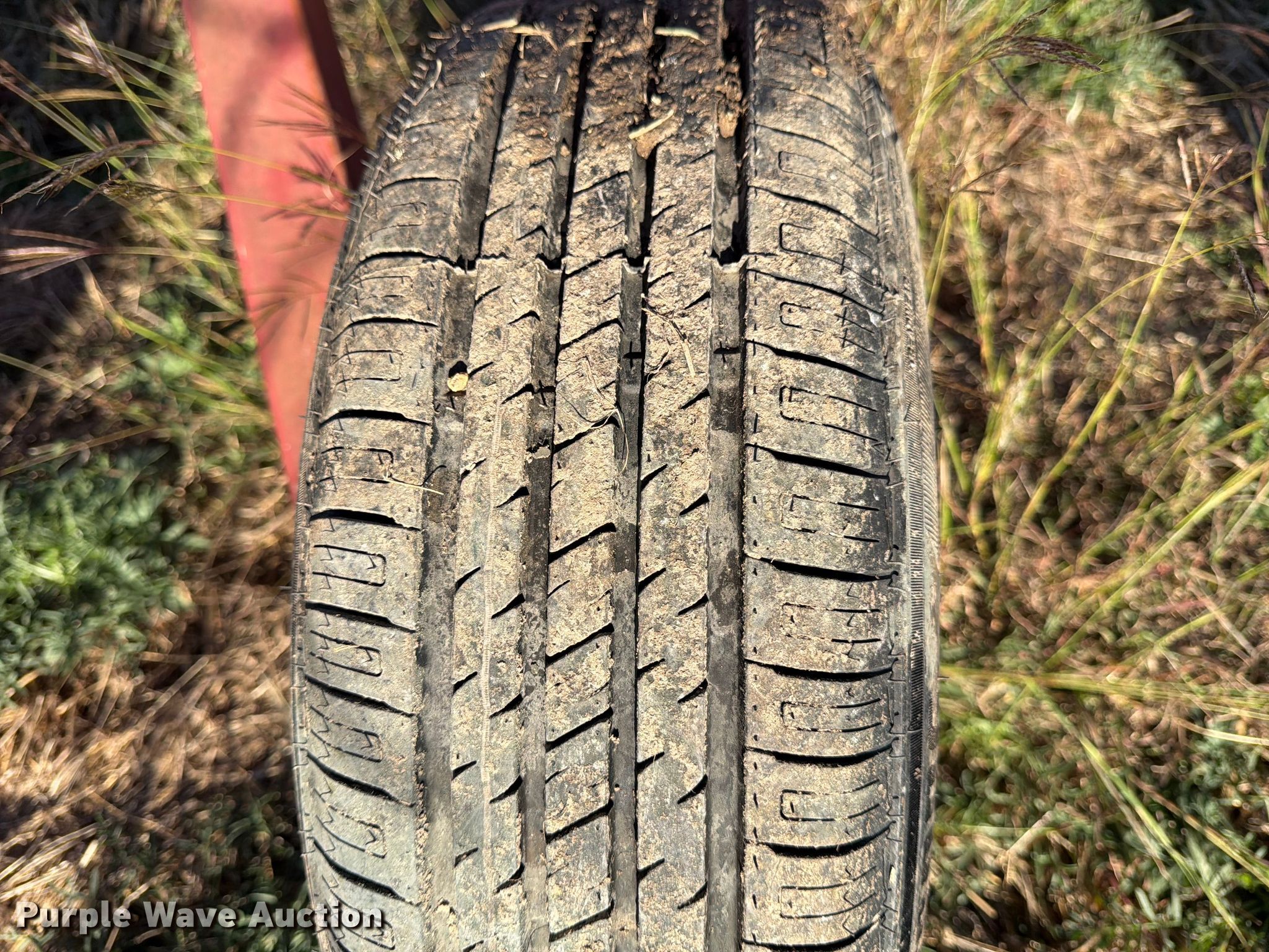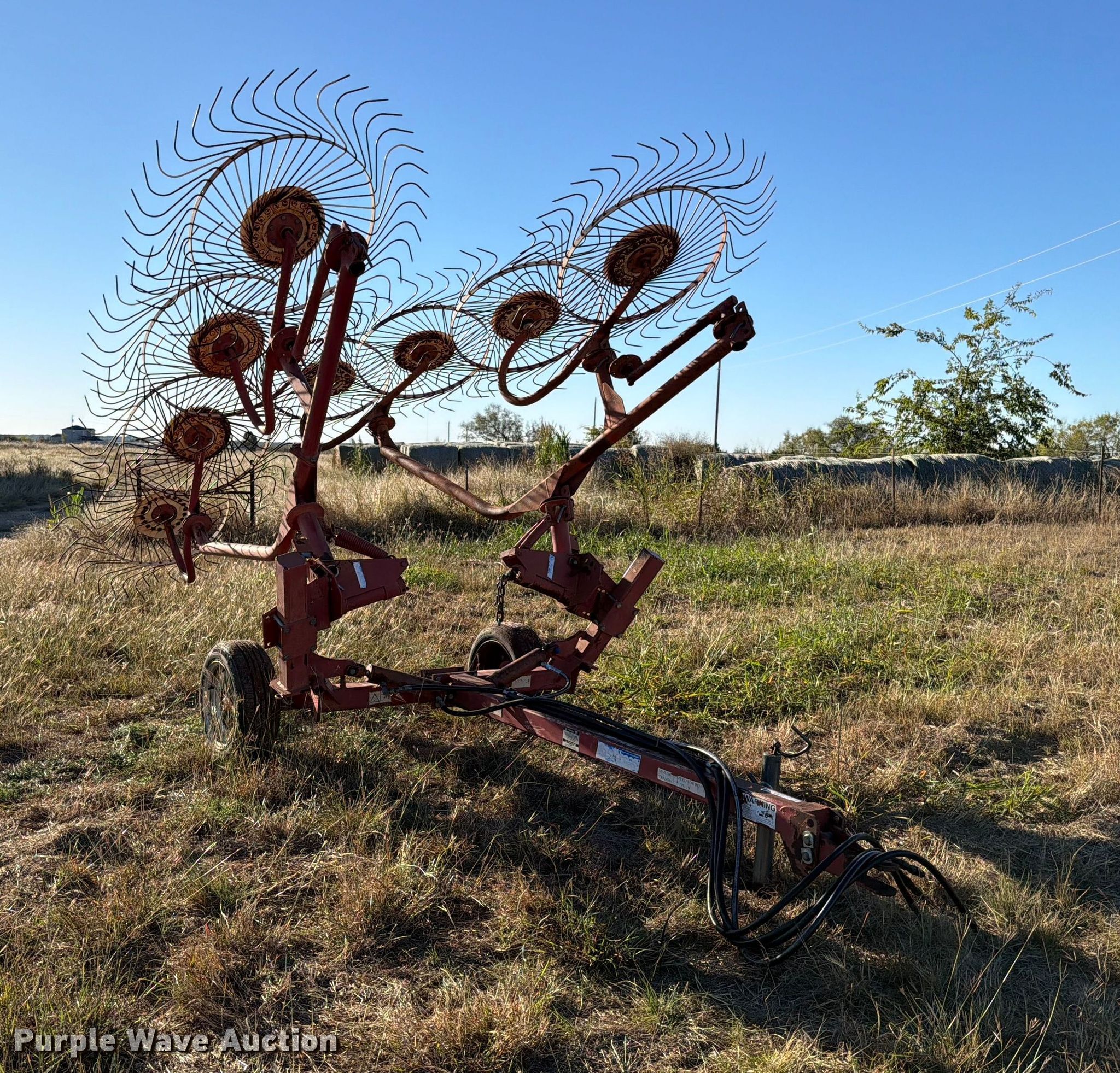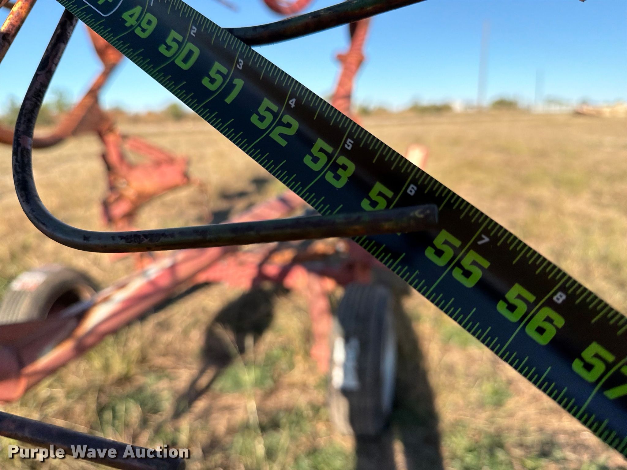 Sitrex H-90 V10 hay rake. Serial: 130523. Features Width: 10', Wheels: 10 Diameter: 55", Hydraulic fold. Tires Size: 185/60R15. Notes (2) wheels missing. Bertram, TX 78605