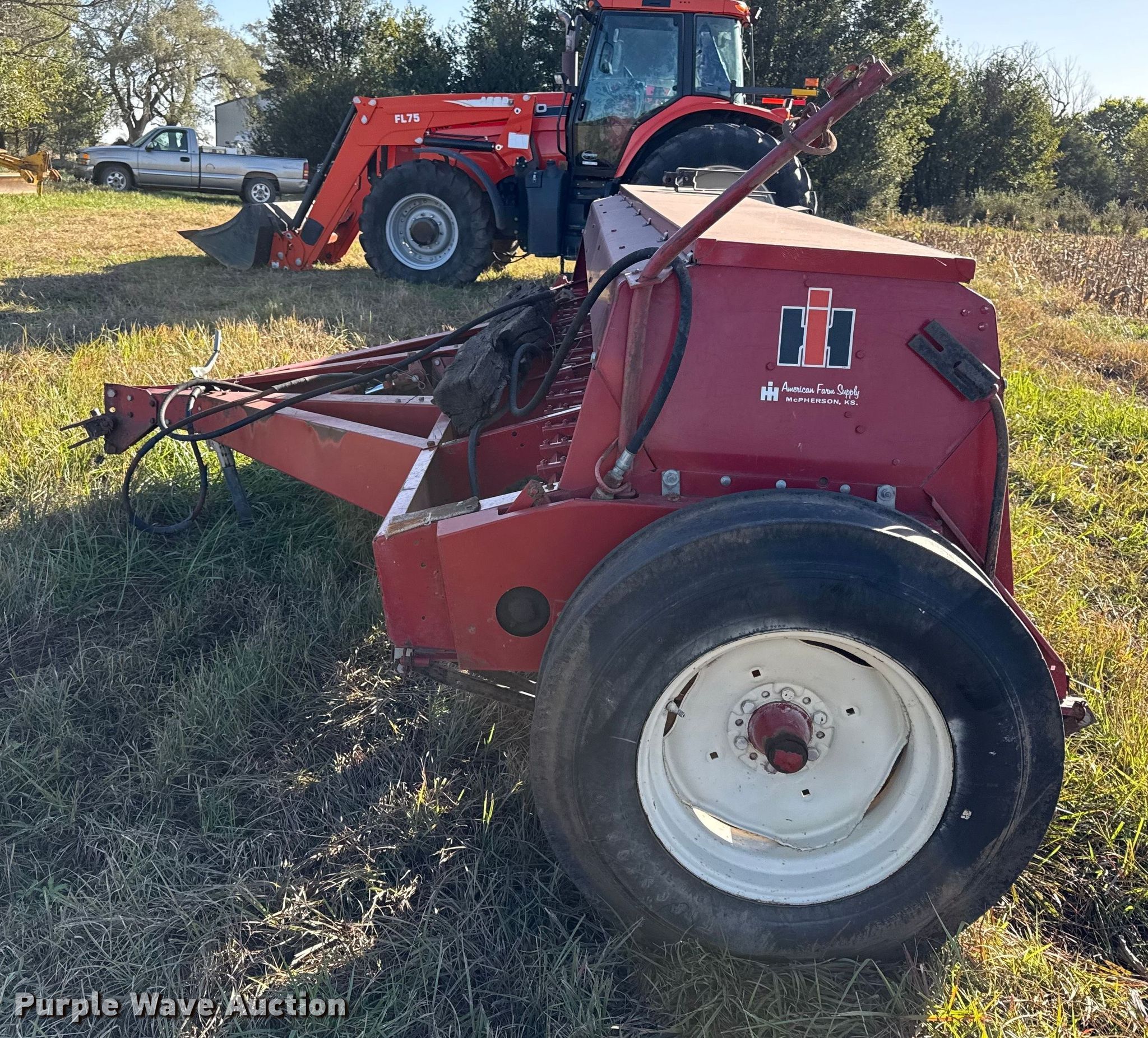 International 5100 grain drill. Width: 13', Serial: 0390213C017191. Features Frame Split row units: 20, Split row spacing: 7", Rear hitch, Seed delivery Bulk fill system, Row units Meter drive: Ground, Disk openers: Single, Closing system: Single Type: Rubber.. Tires Drive/ outside tire size: 7.50-20. Notes Contents included. Vernon Dyck Trust. Walton, KS 67151
