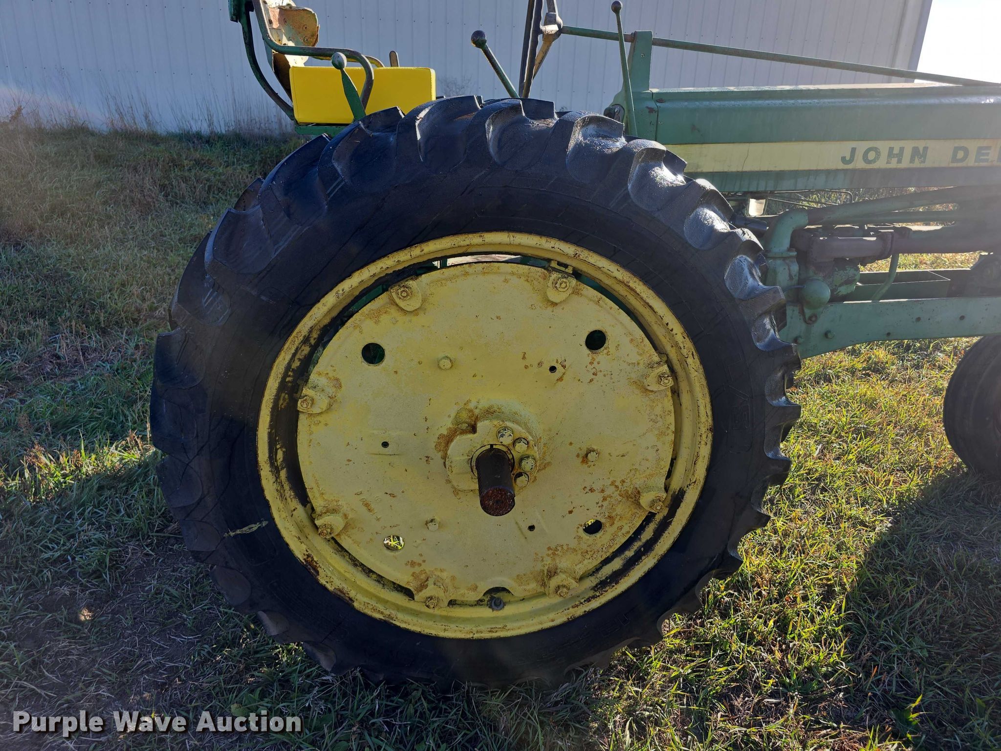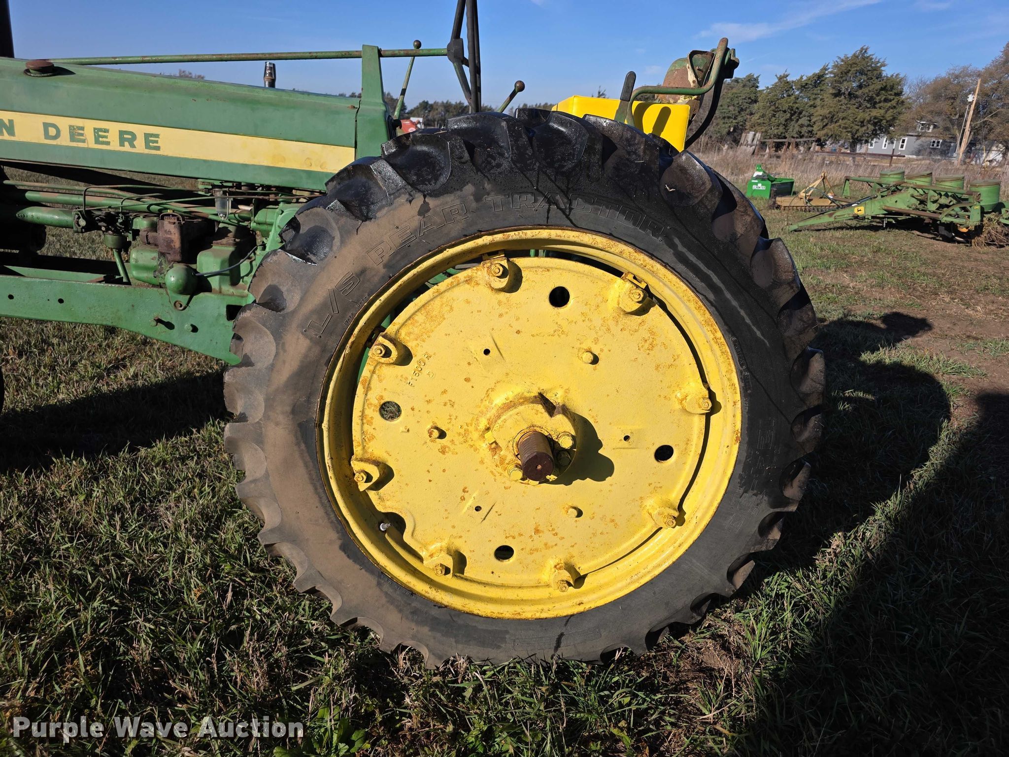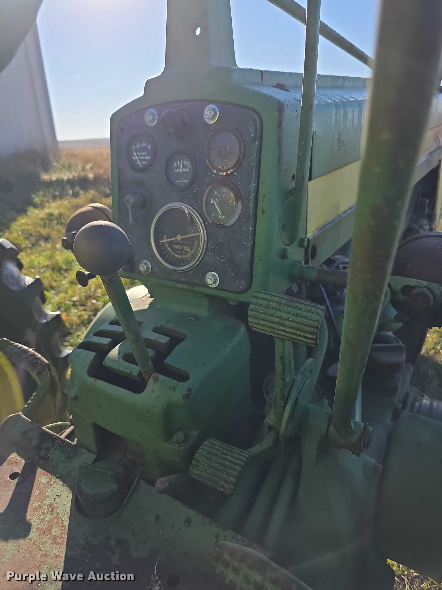 John Deere 520 tractor. Hours: 7,051 on meter, Serial: 5210677. Engine John Deere, Cylinders: 2, Fuel type: Gas. Transmission Manual, 6F - 1R. Features PTO: 540, Hydraulic remote sets Rear: 1. Tires Front: 5.50-16, Rear: 12.4-38, Wheelbase: 90". Abilene, KS 67410