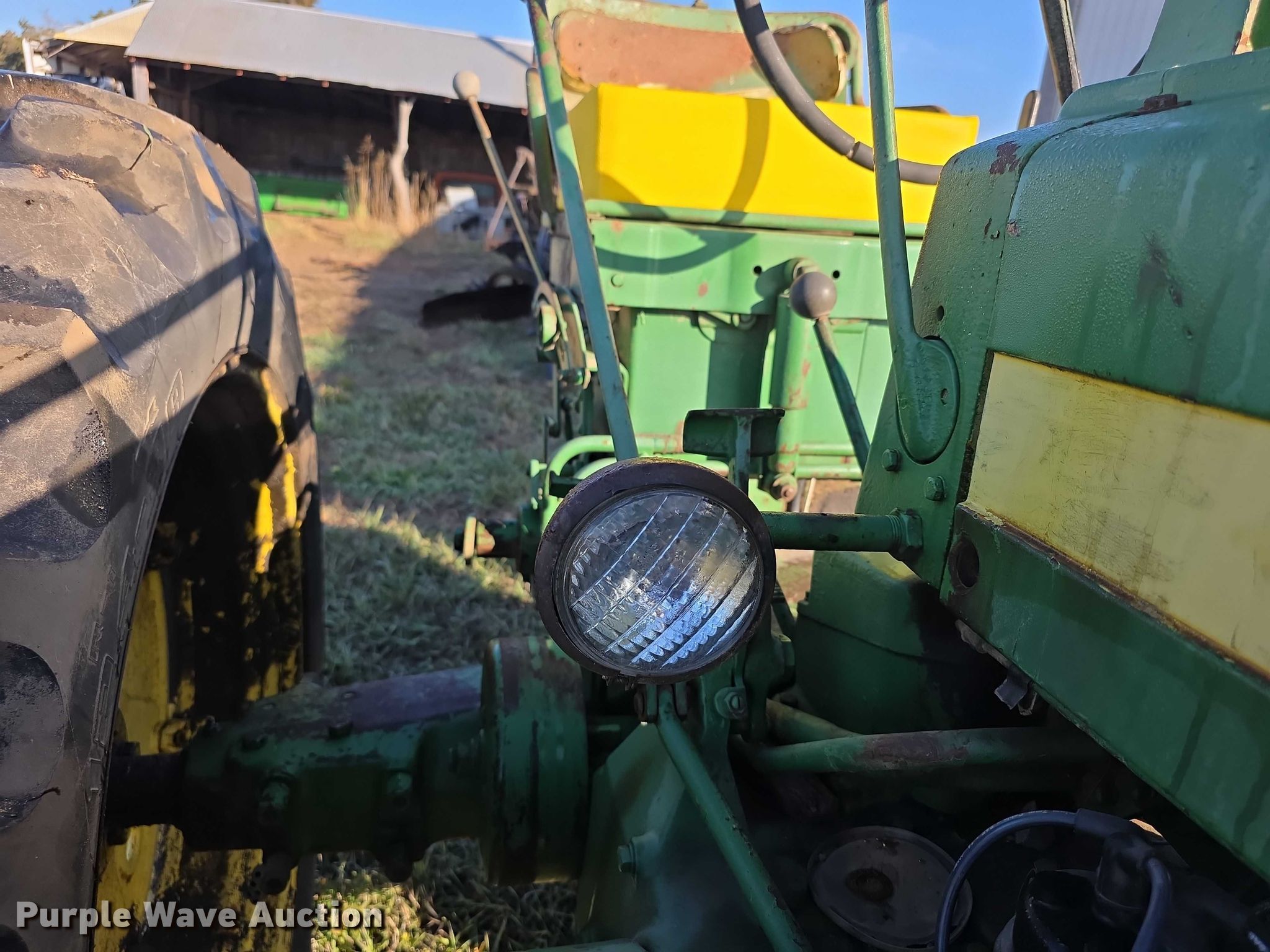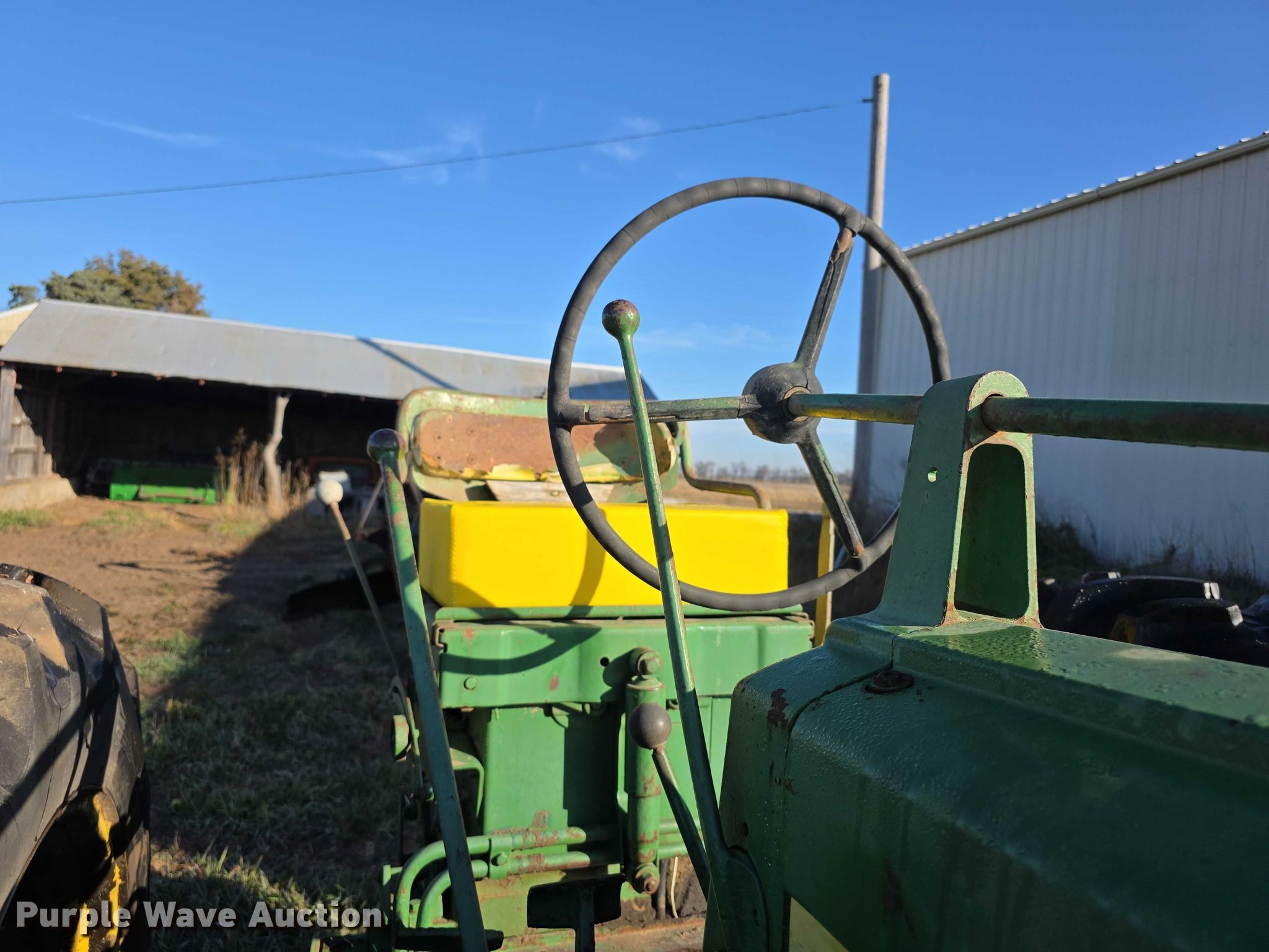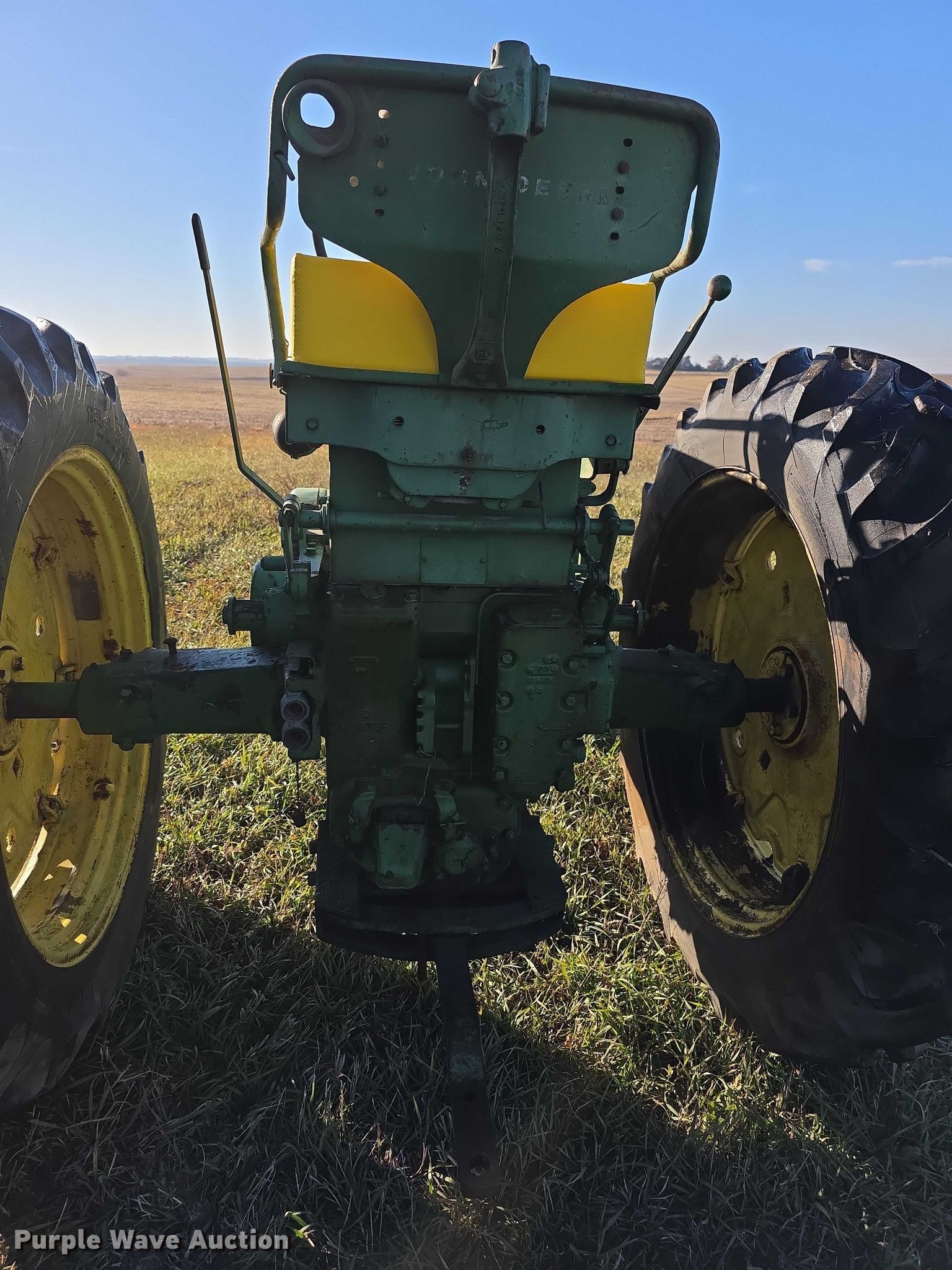 John Deere 520 tractor. Hours: 7,051 on meter, Serial: 5210677. Engine John Deere, Cylinders: 2, Fuel type: Gas. Transmission Manual, 6F - 1R. Features PTO: 540, Hydraulic remote sets Rear: 1. Tires Front: 5.50-16, Rear: 12.4-38, Wheelbase: 90". Abilene, KS 67410