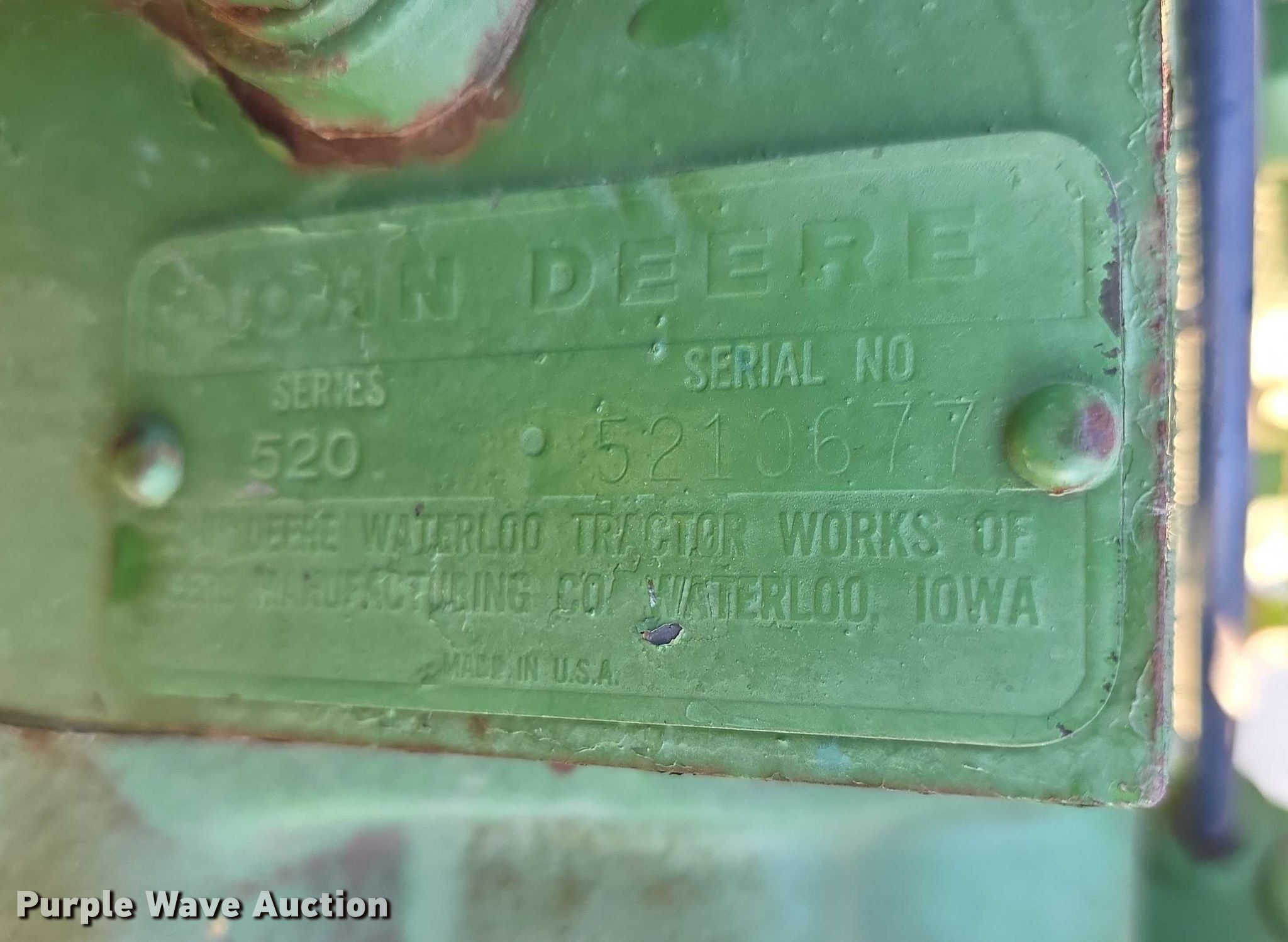 Purple Wave is selling a used Tractor in Kansas. This item is a John Deere 520 tractor with the following: Hours: 7,051 on meter, Serial: 5210677
