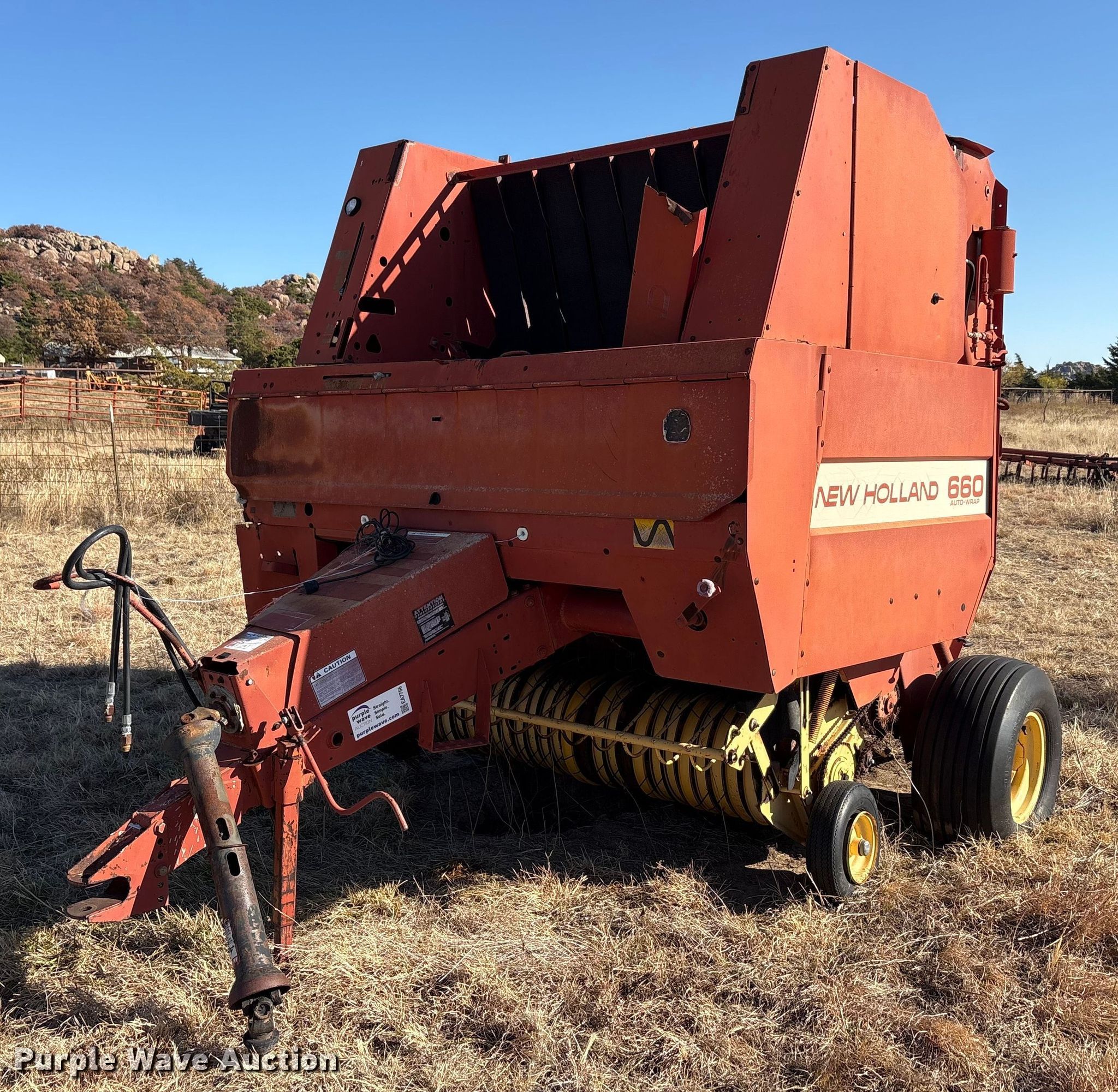Purple Wave is selling a used Round Baler in Oklahoma. This item is a New holland 660 round baler with the following: Serial: 905252