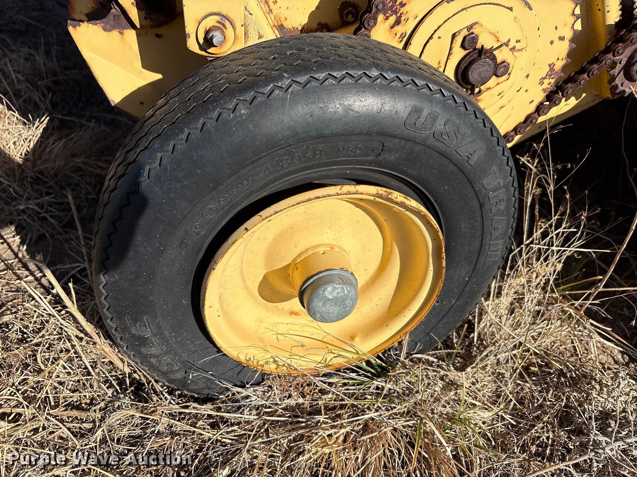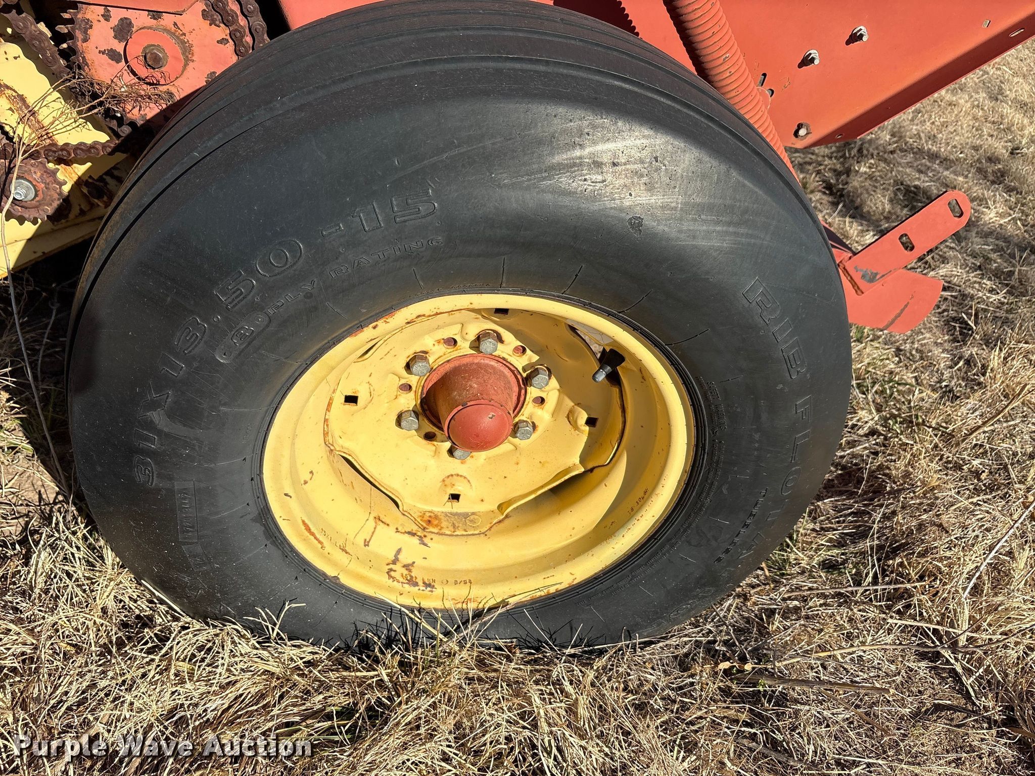 New holland 660 round baler. Serial: 905252. Features PTO: 540, Gathering wheels, Gauge wheels Size: 4.80-8, Pickup width: 69", Hydraulic pickup lift, Bale size: 4' x 6', Auto-tie, Bale ramp. Tires Size: 31X13.50-15, Brand: Safemark. Notes Gauge wheel missing, Rim damaged, bent, Tires damaged, dry rot, Unknown operating condition. Lawton, OK 73507