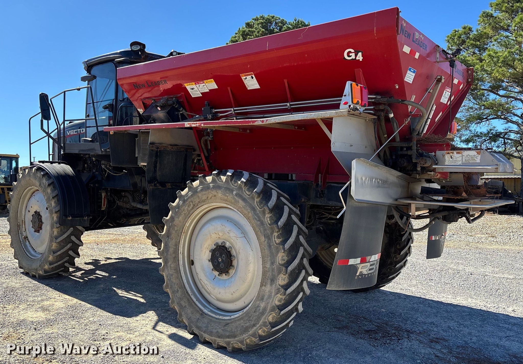2017 RBR Enterprise Vector 300 spreader. Engine hours: 4,886 on meter, Serial: M1700650. Engine Cummins, Cylinders: 6, Fuel type: Diesel. Transmission Allison, Automatic, Four wheel drive. Operators station AC, Heat, Backup camera. Features Hydraulic ladder, Dry fertilizer spreader bed New Leader L4000G4, Serial: 509518, Length: 13', Stainless steel, Dual spinners, Conveyor belt Width: 30", Electronics GPS monitor Raven, GPS receiver Raven, Auto steer. Tires Size: 480/80R46, Row crop tires. Notes Windshield chipped or cracked. Atlantic & Southern Equipment. Dothan, AL 36303