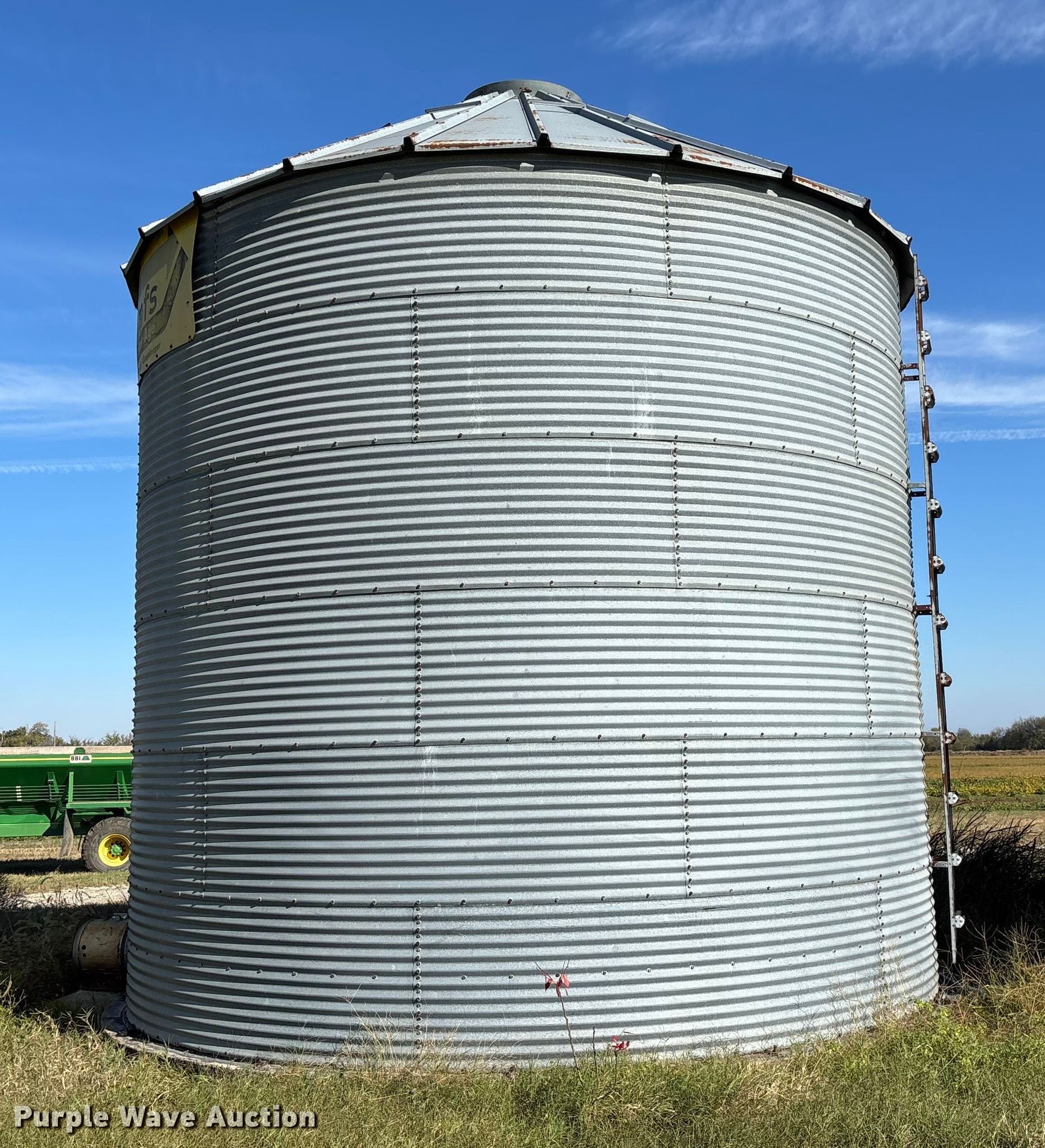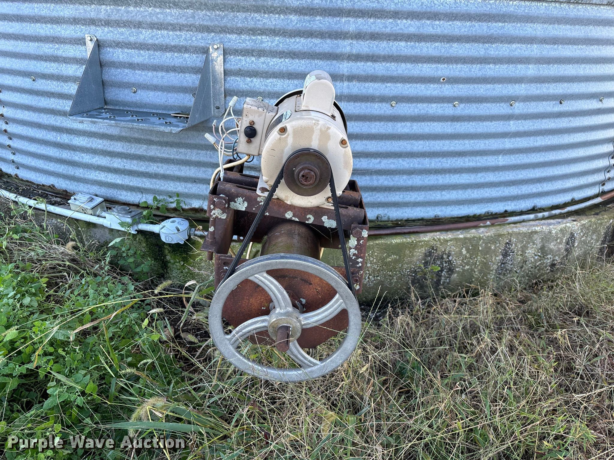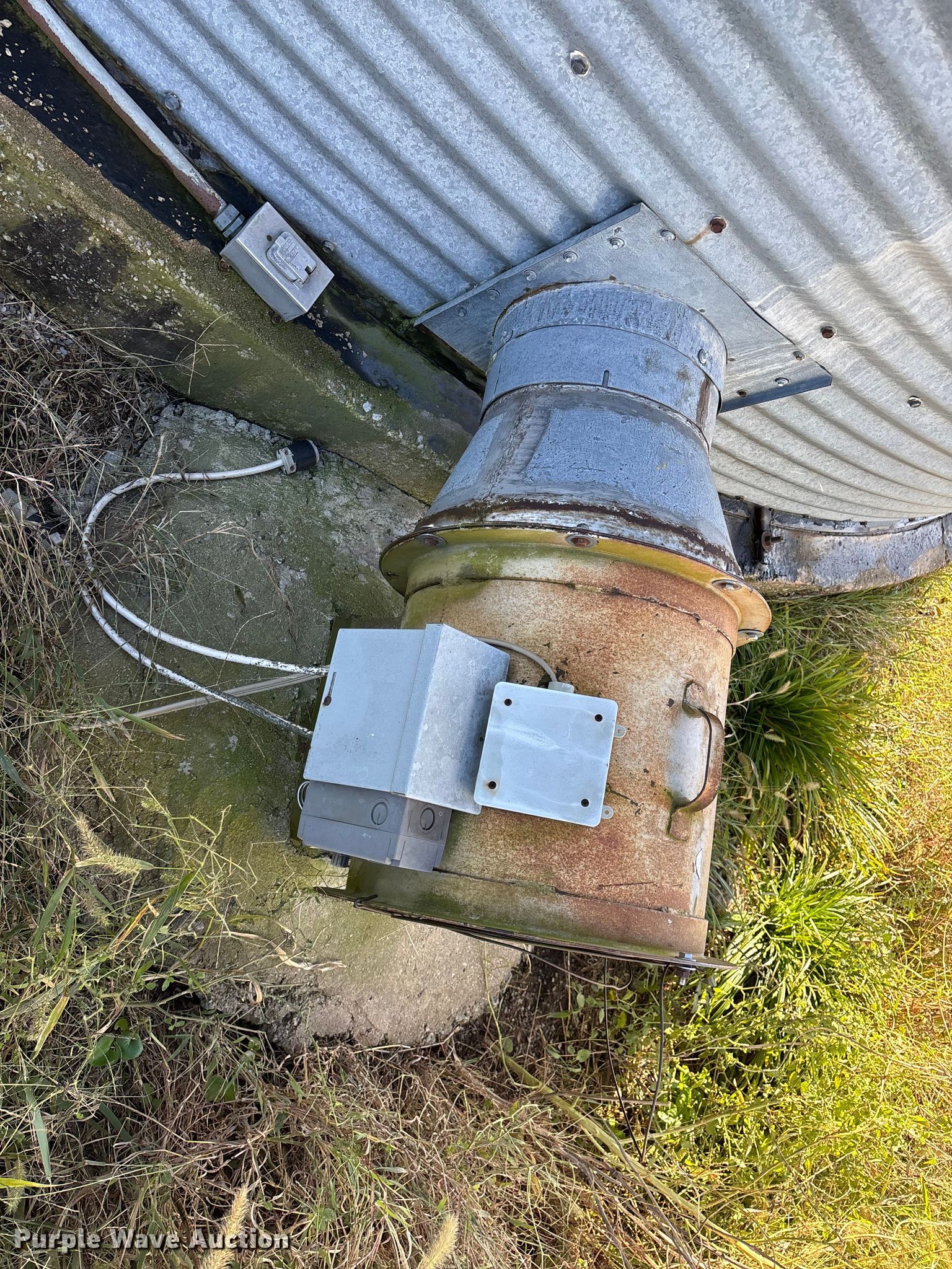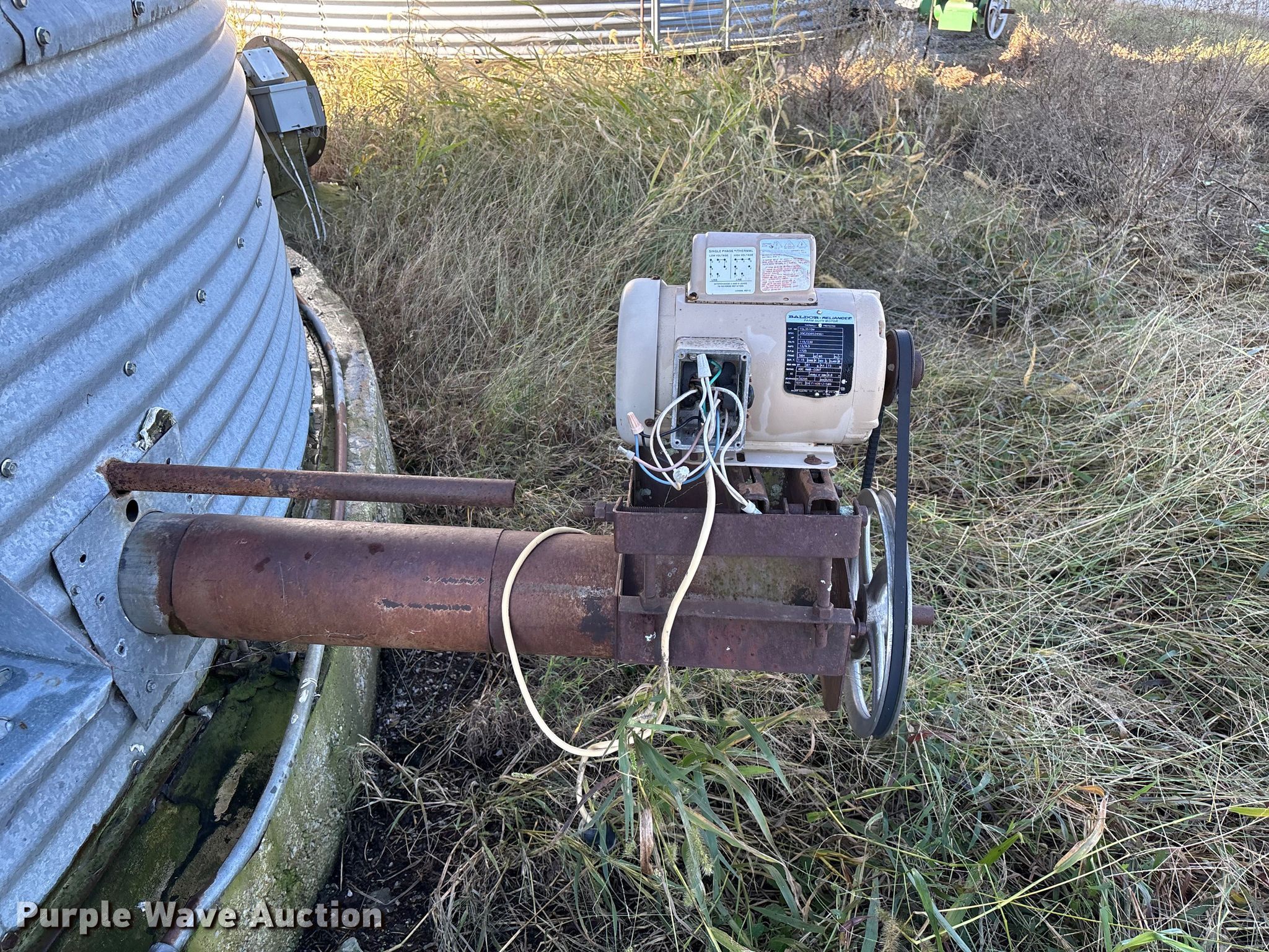 Purple Wave is selling a used Other Grain or Fertilizer Handling in Kansas. This item is a MFS grain bin with the following: Diameter: 17'10", (6) rings, Approx. 32", Unload auger, Diameter: 6", Length: 33.5", Electric motor, Baldor Reliance Farm Duty, HP: 1, Volts: 115/230, Phase: Single, Drying fan
