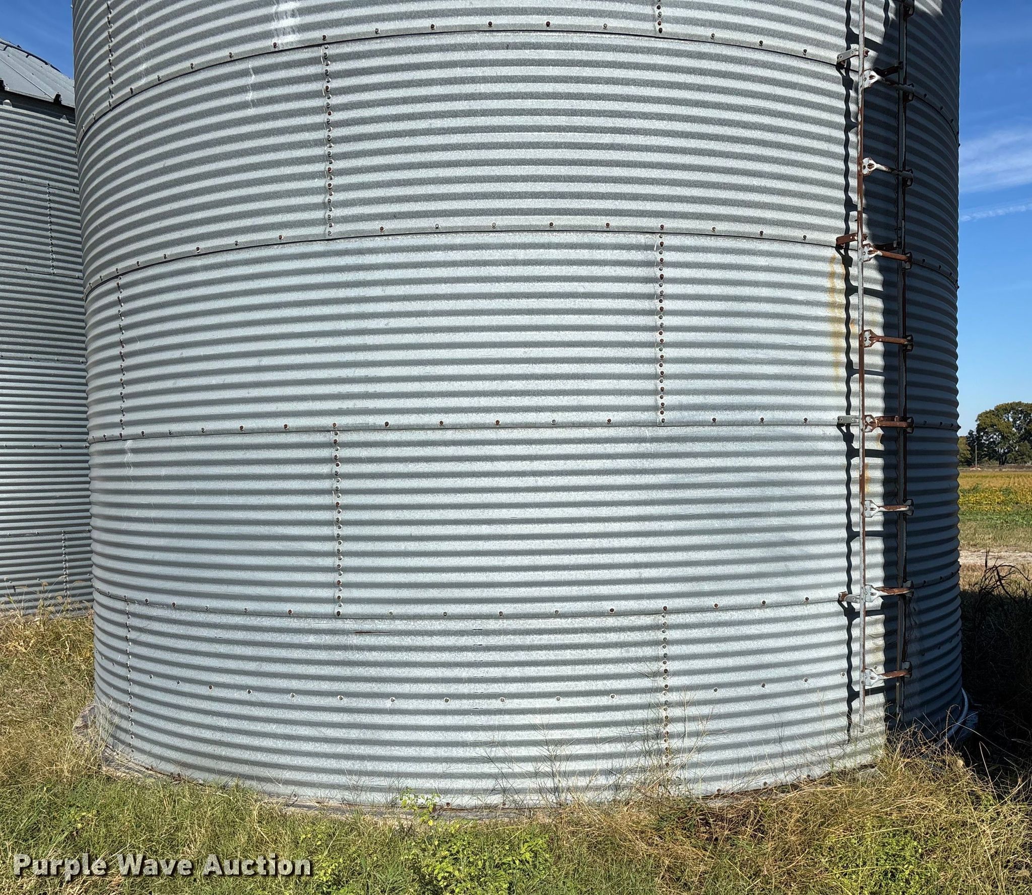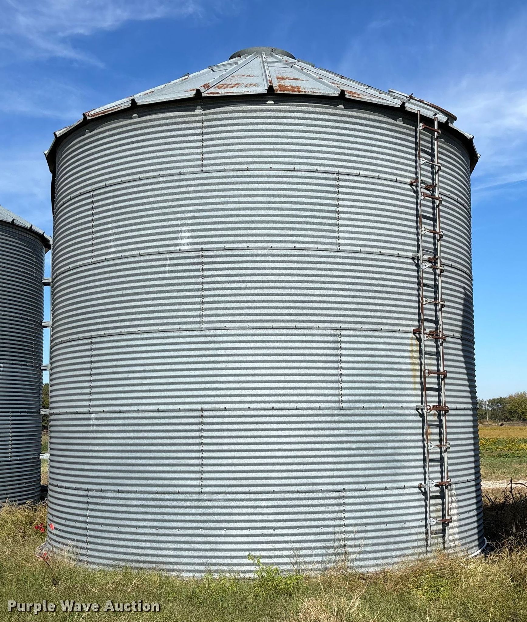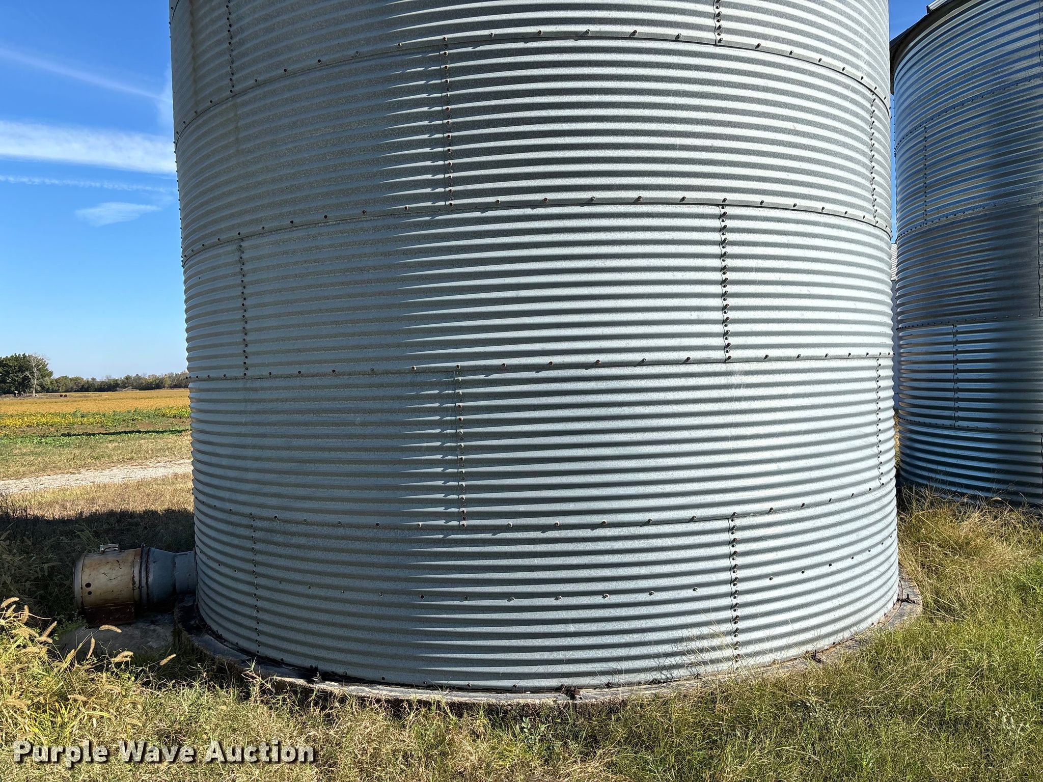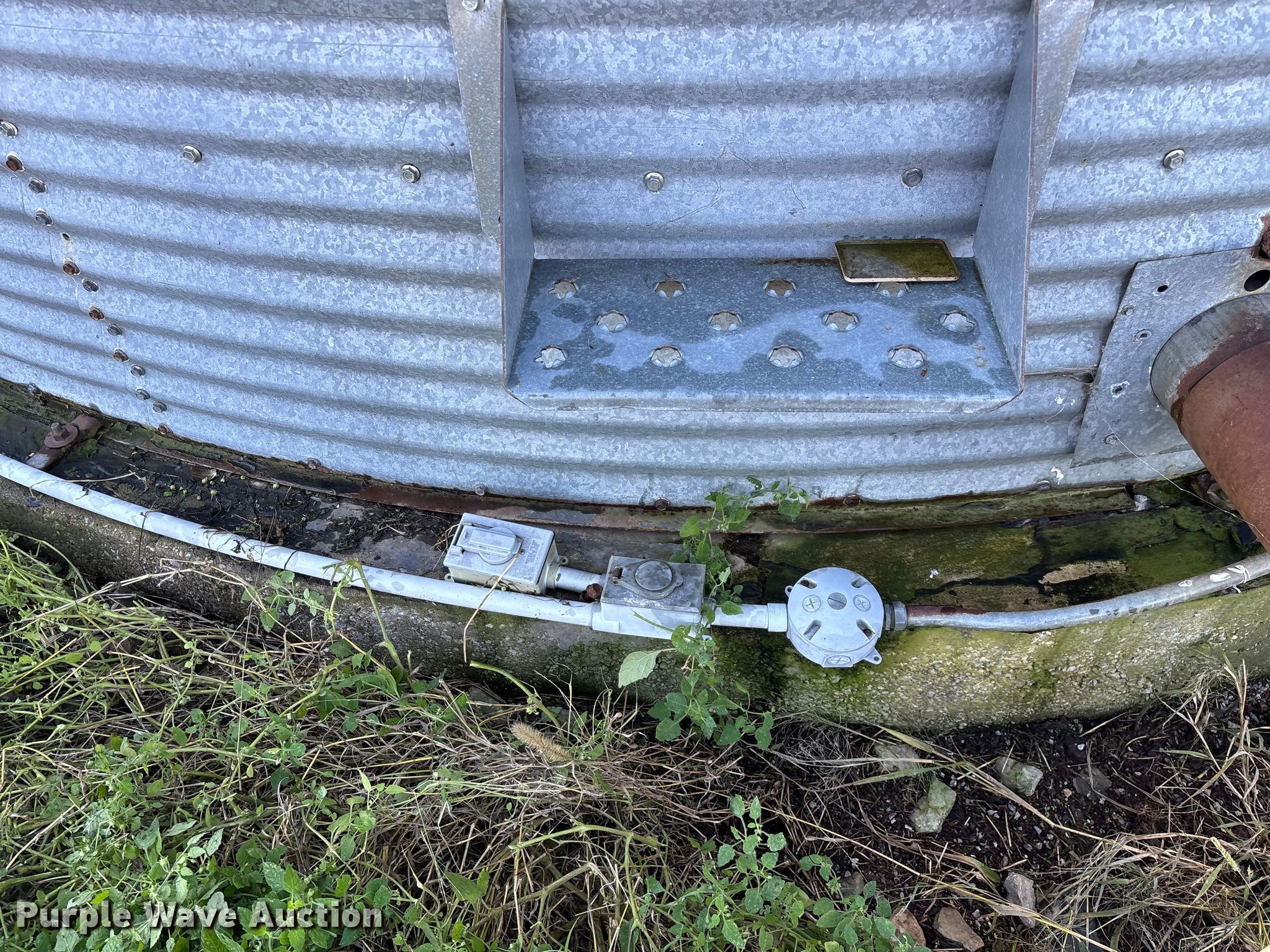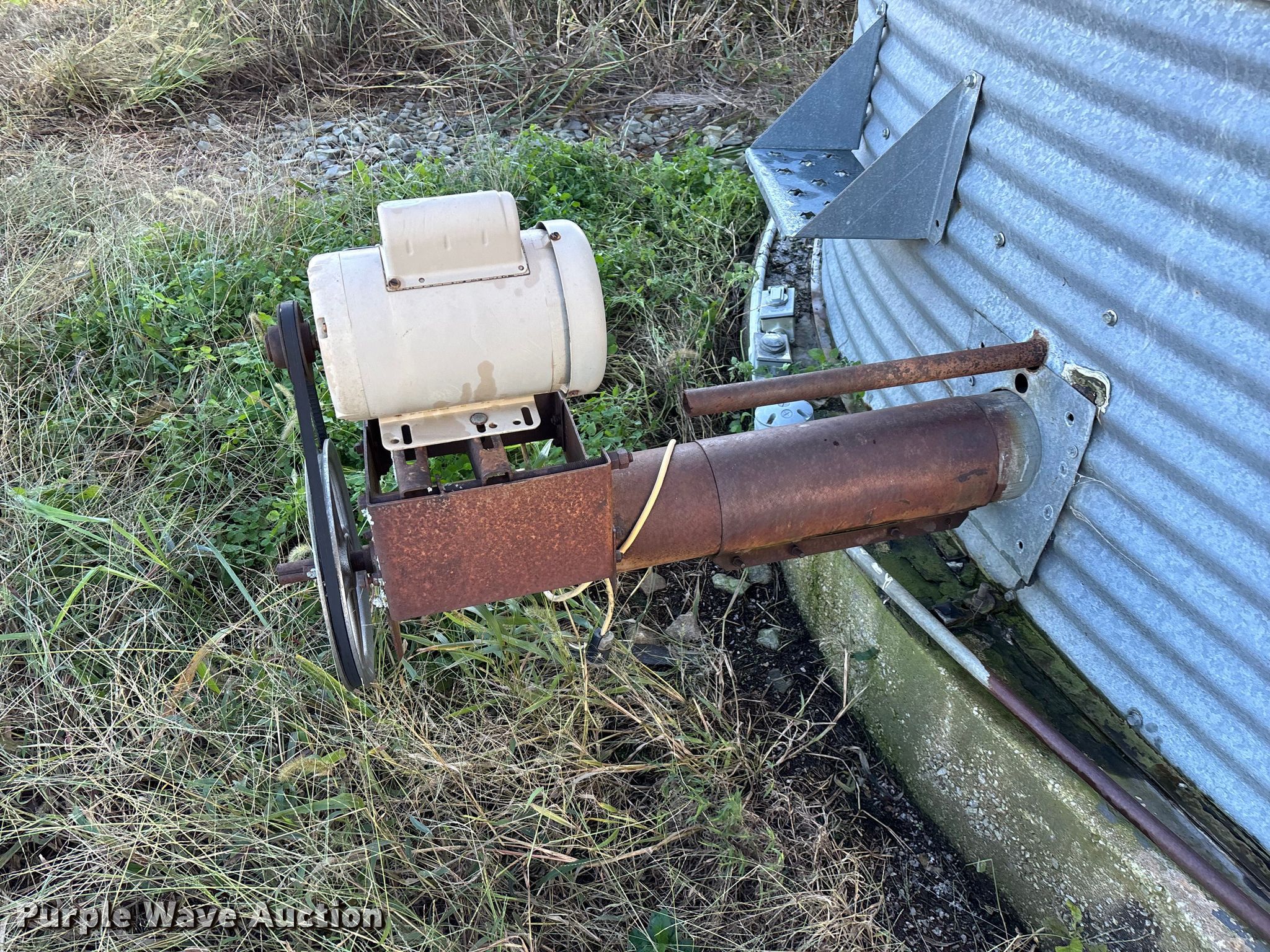 Purple Wave is selling a used Other Grain or Fertilizer Handling in Kansas. This item is a MFS grain bin with the following: Diameter: 17'10", (6) rings, Approx. 32", Unload auger, Diameter: 6", Length: 33.5", Electric motor, Baldor Reliance Farm Duty, HP: 1, Volts: 115/230, Phase: Single, Drying fan
