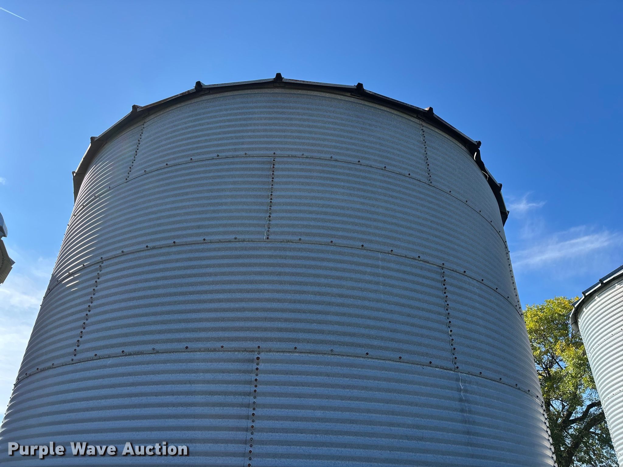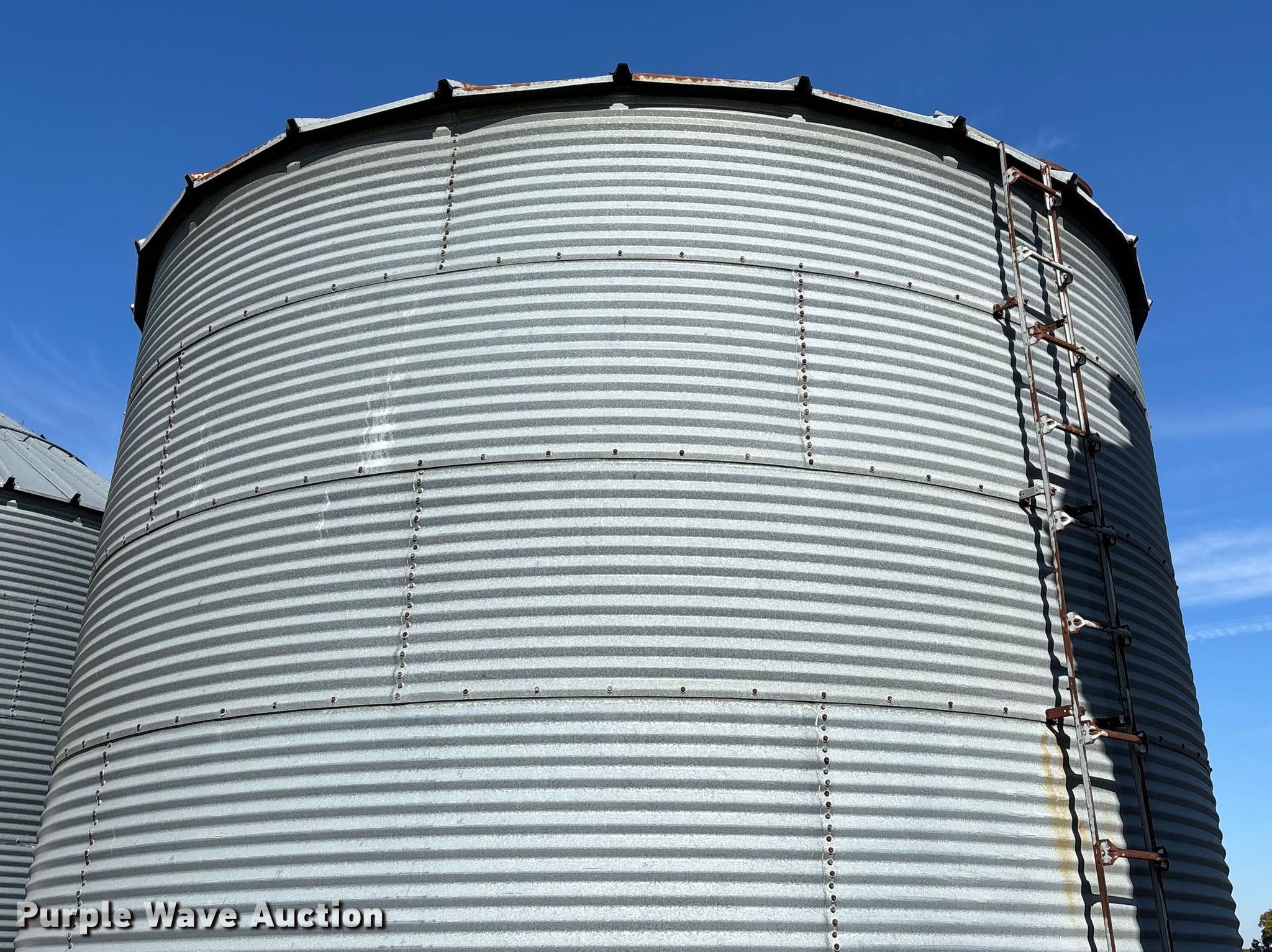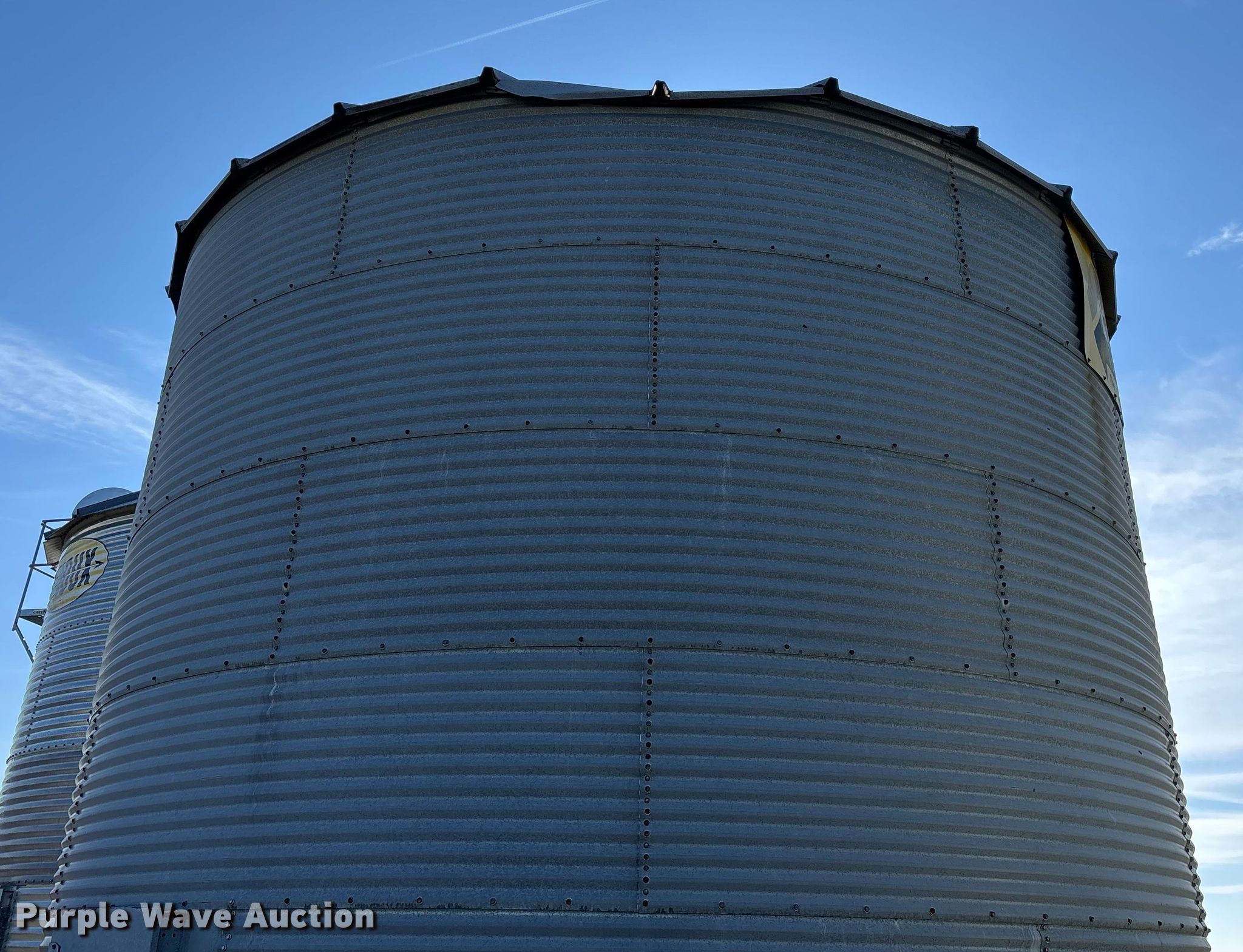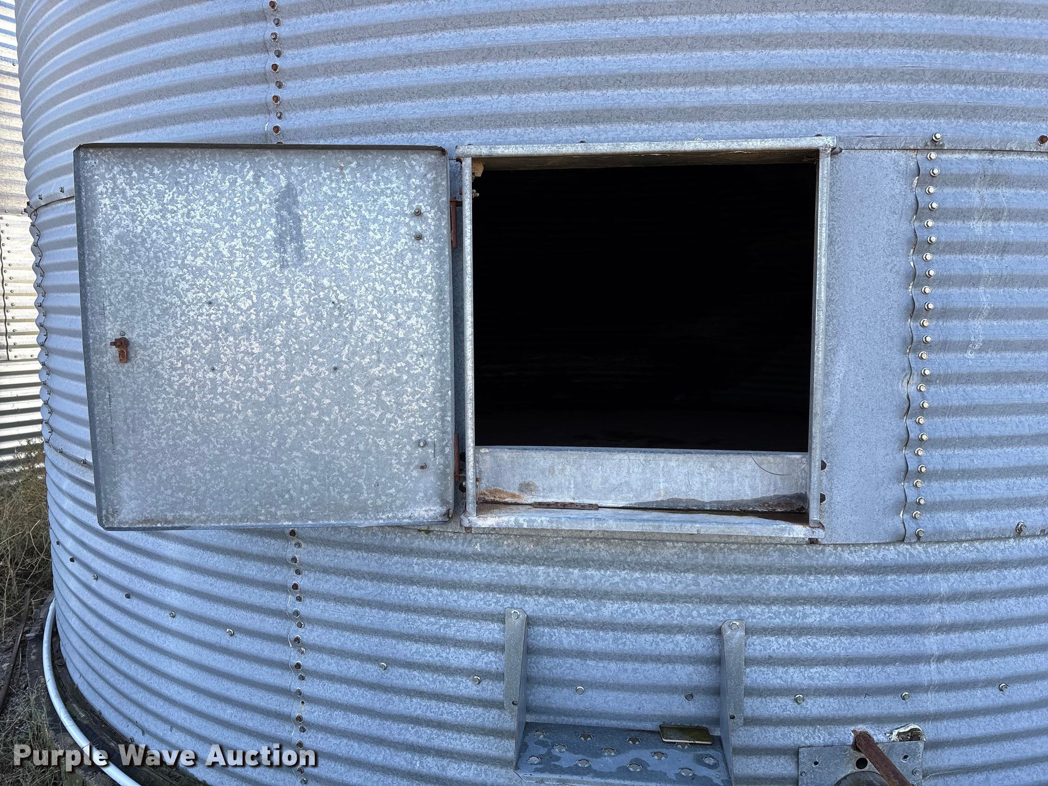 Purple Wave is selling a used Other Grain or Fertilizer Handling in Kansas. This item is a MFS grain bin with the following: Diameter: 17'10", (6) rings, Approx. 32", Unload auger, Diameter: 6", Length: 33.5", Electric motor, Baldor Reliance Farm Duty, HP: 1, Volts: 115/230, Phase: Single, Drying fan